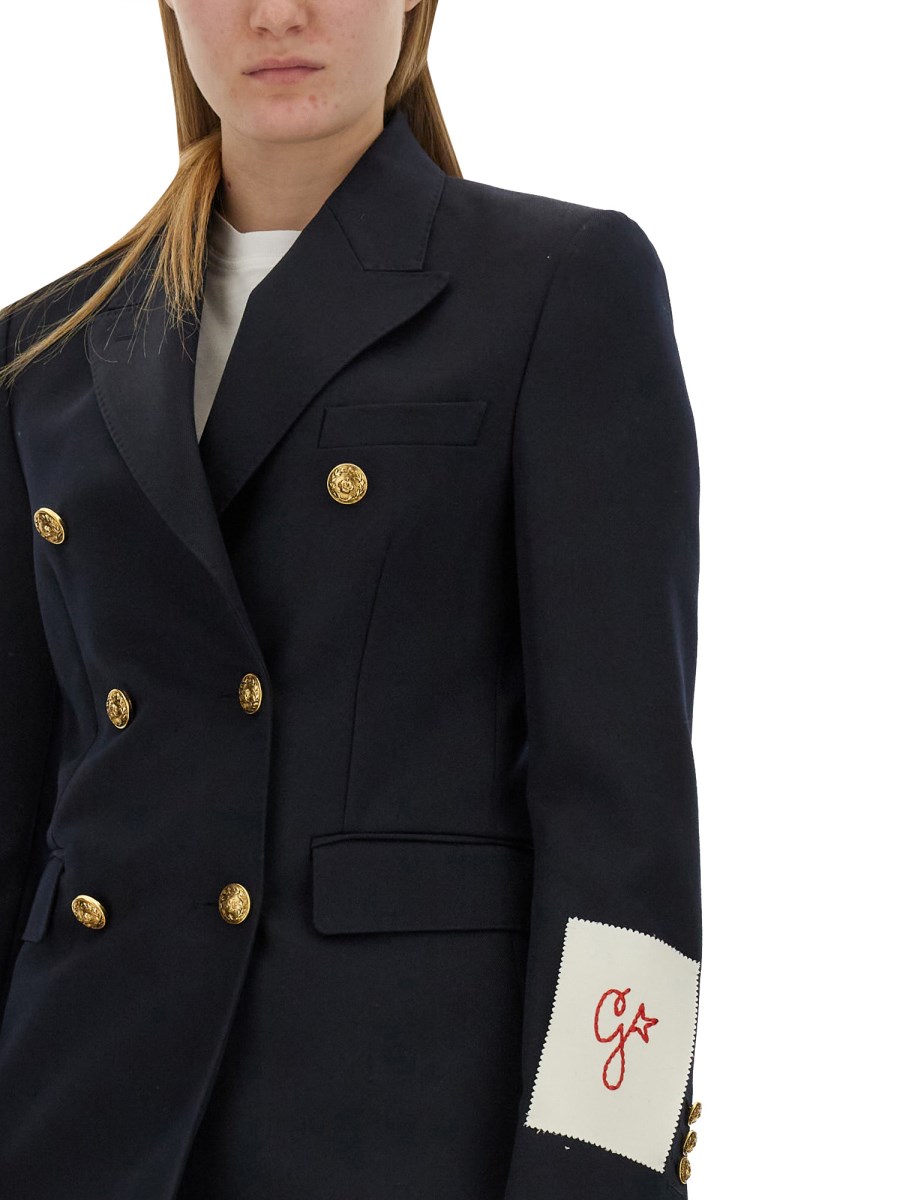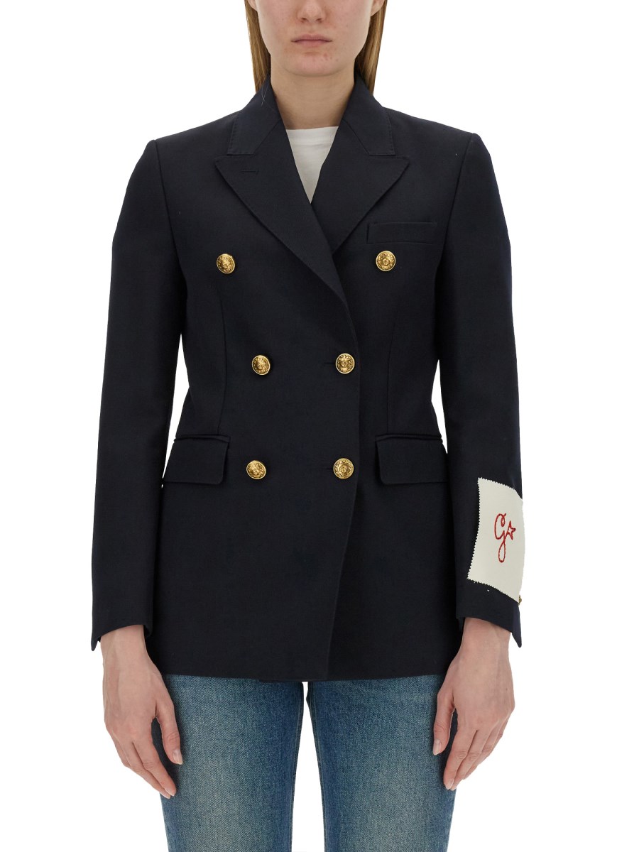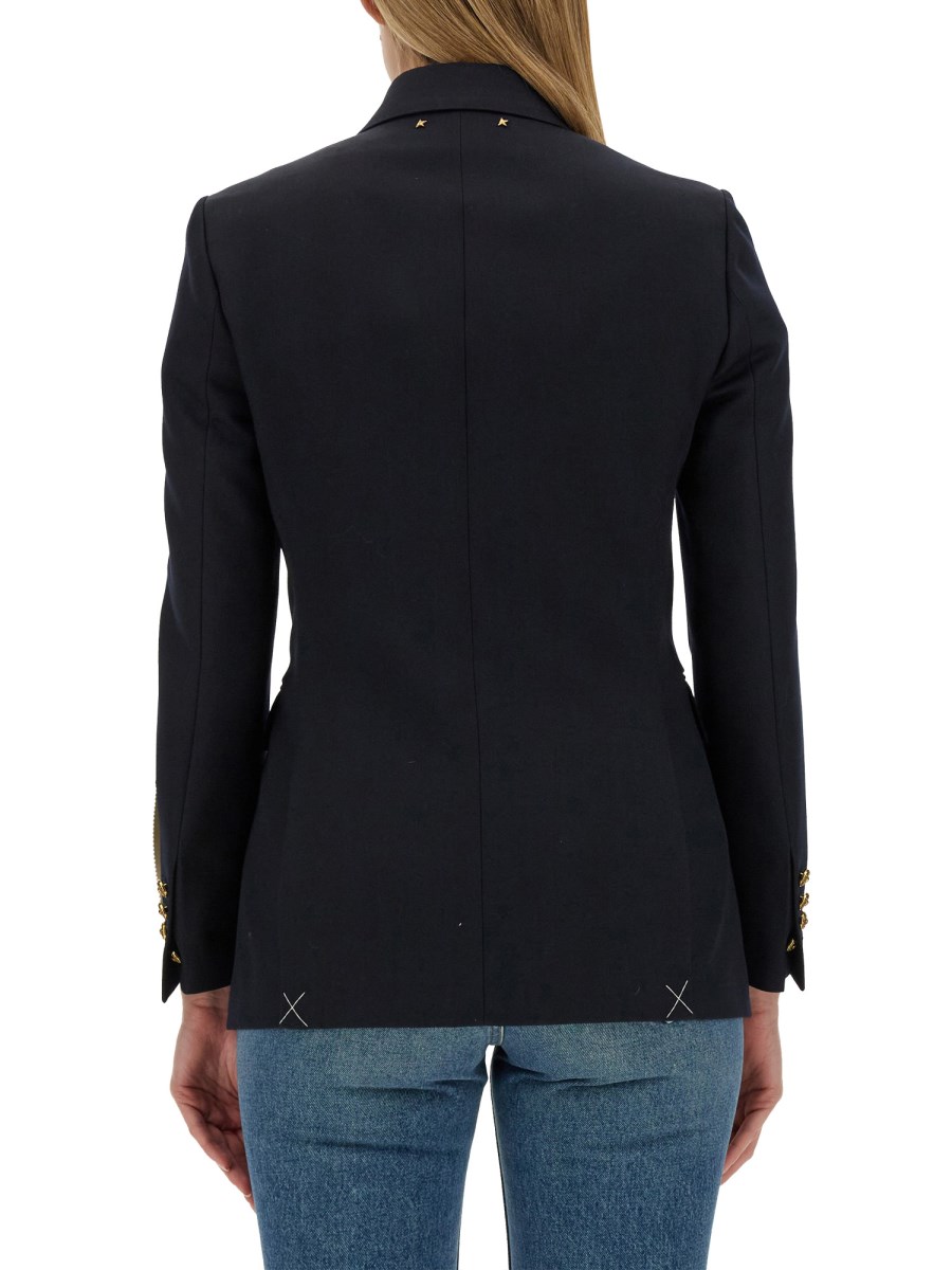 Discover the epitome of chic with our double-breasted tailored jacket for women from Golden Goose. Featuring a classic collar and impeccable tailoring, this jacket is a must-have for every fashion-forward woman. Upgrade your wardrobe today and embrace effortless style.