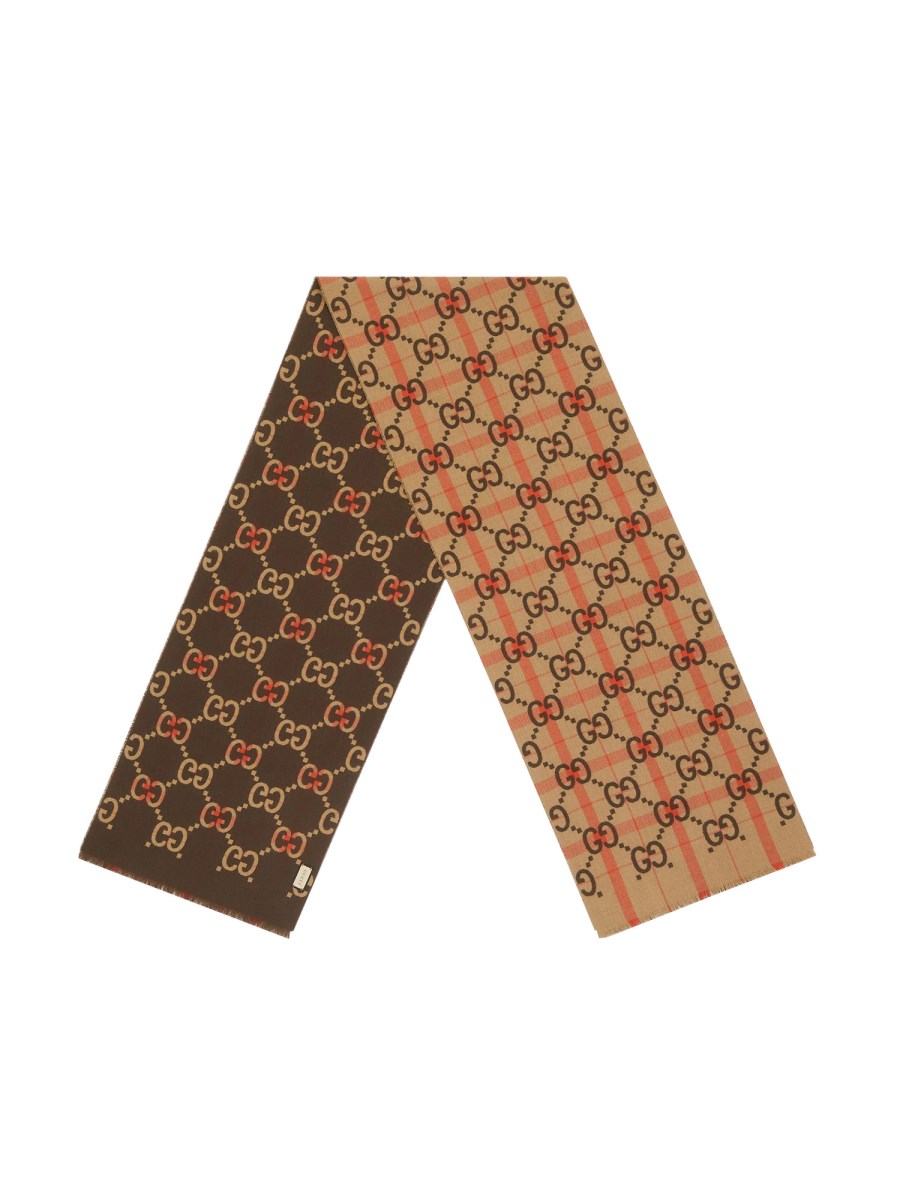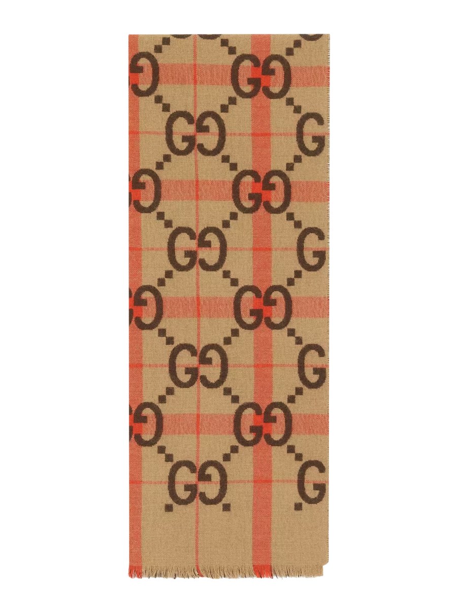 - GG AND PLAID PATTERN- FRINGED EDGES- DIMENSIONS: H 35 CM X L 205 CM- 100% WOOL- MADE IN ITALY