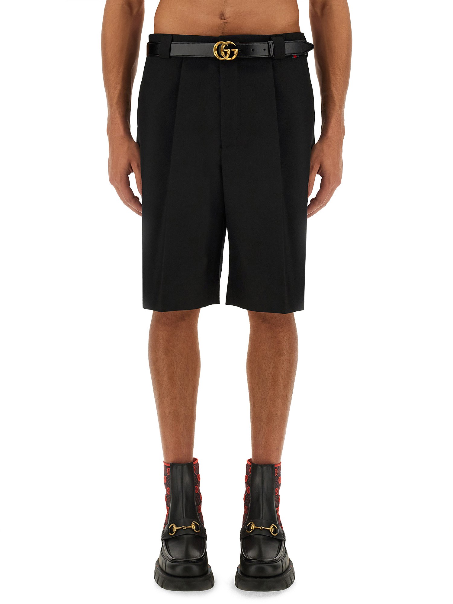 WOOL-BLEND TWILL SHORTS WITH WEB DETAIL
