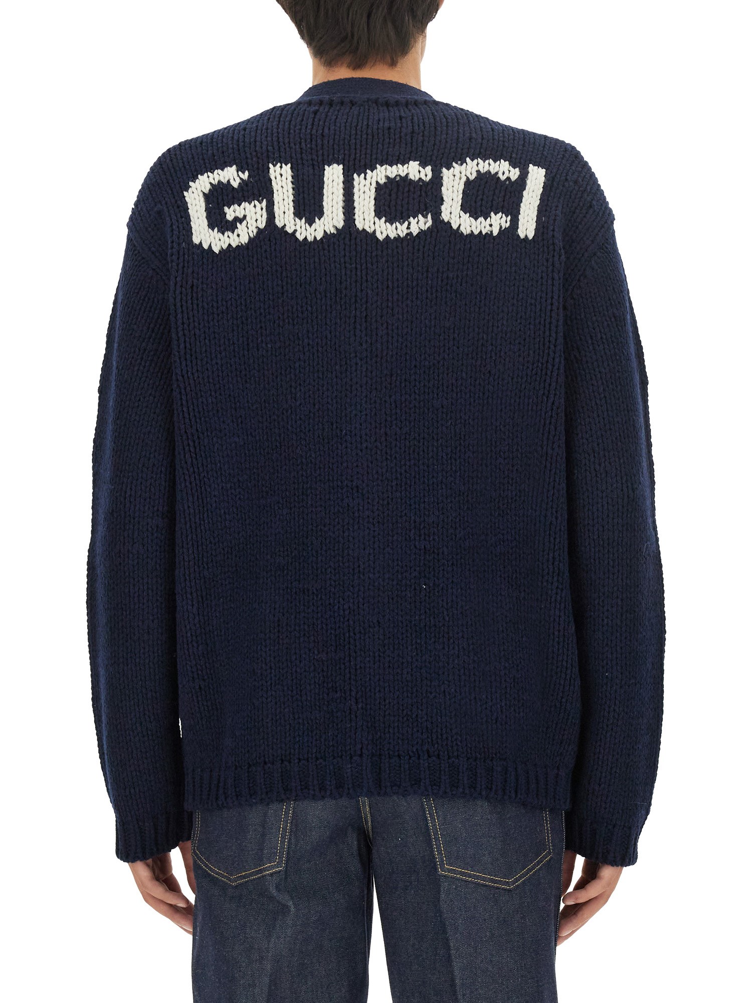 WOOL KNIT CARDIGAN WITH GUCCI INLAY