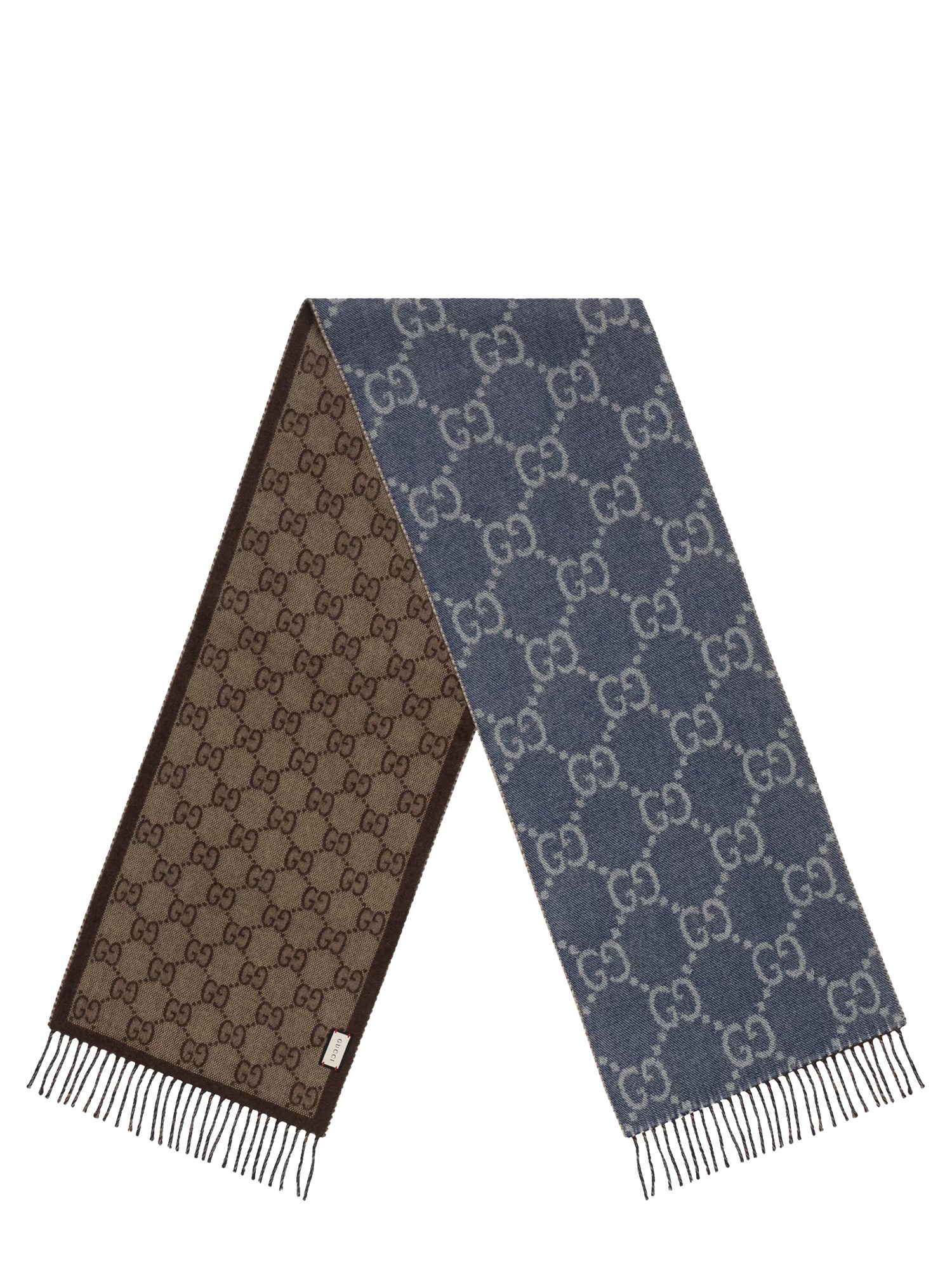 JACQUARD KNITTED SCARF WITH GG PATTERN AND TASSELS