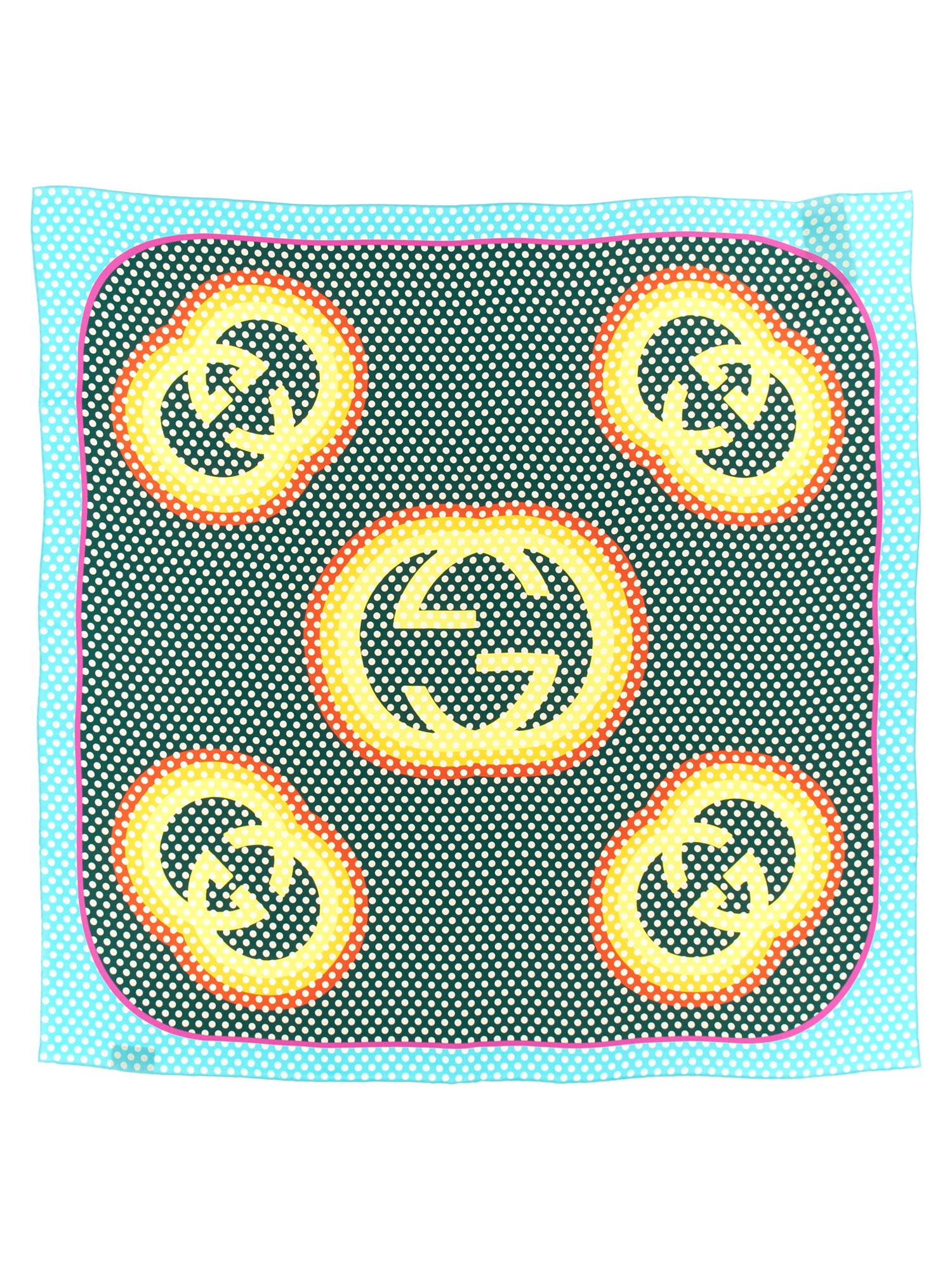 One of the most emblematic Gucci symbols, the Interlocking G logo is a link between past and present, defining here this silk scarf along with an optical polka dot motif. Classic styles meet contemporary details creating unexpected accessories.