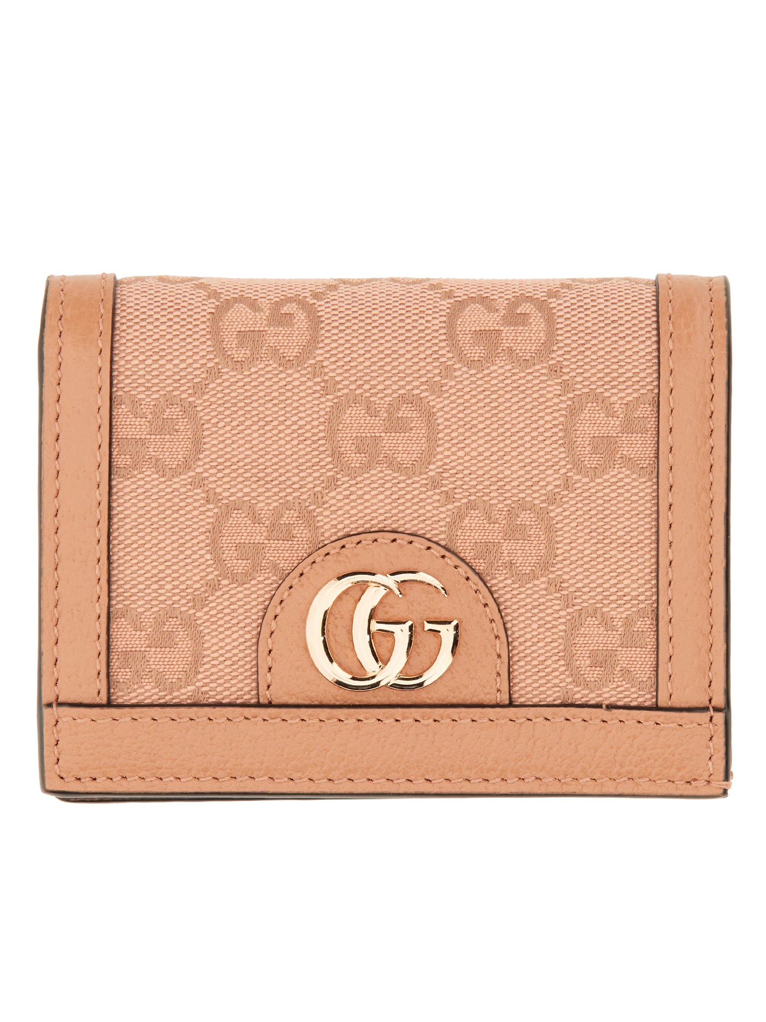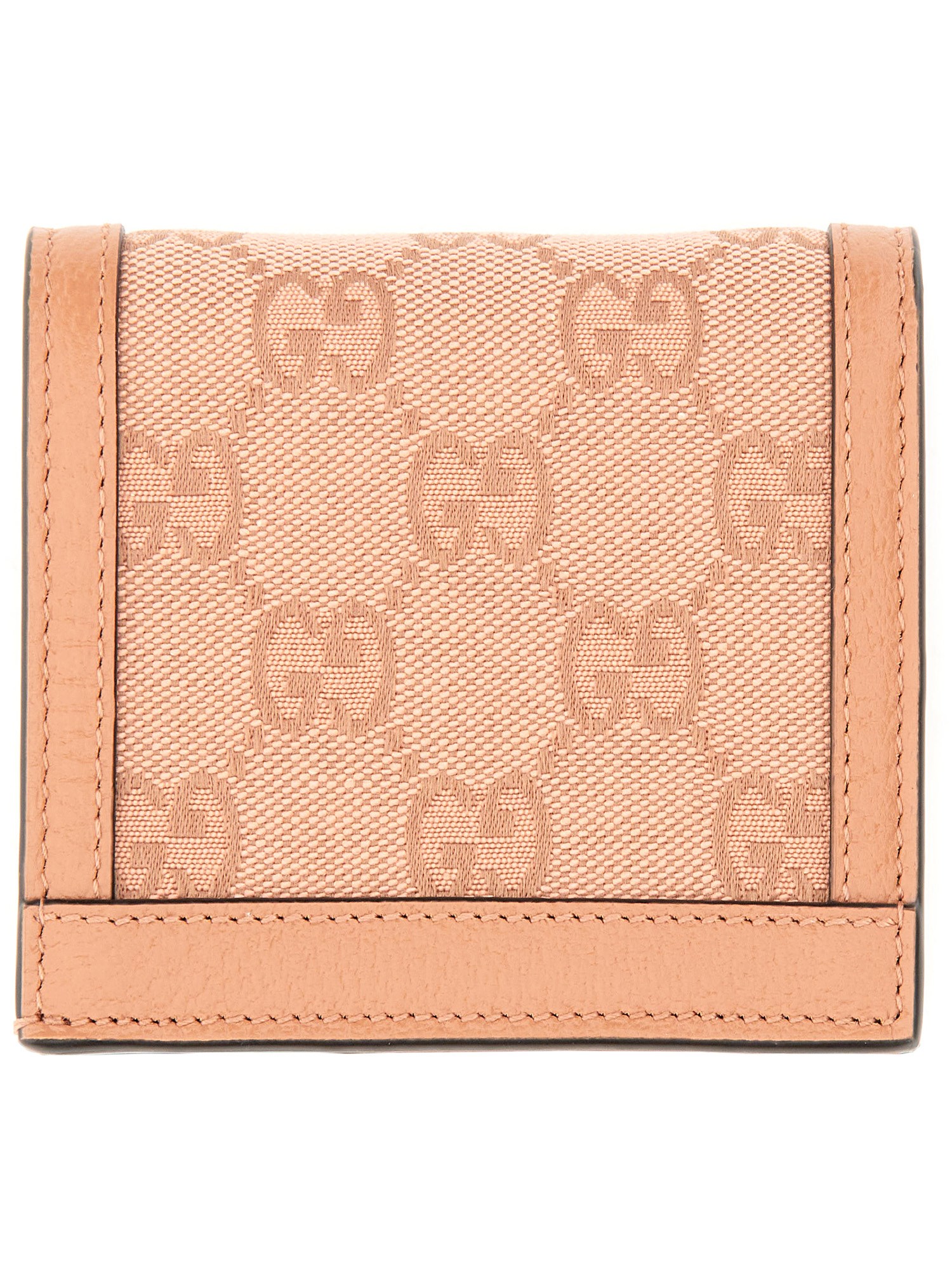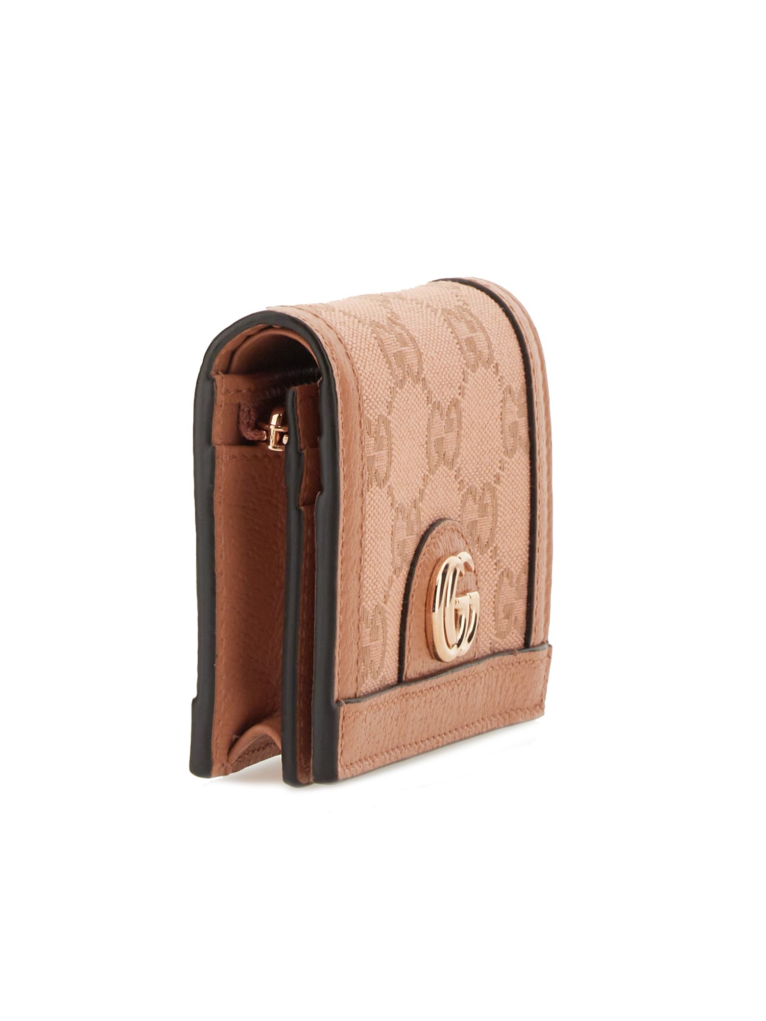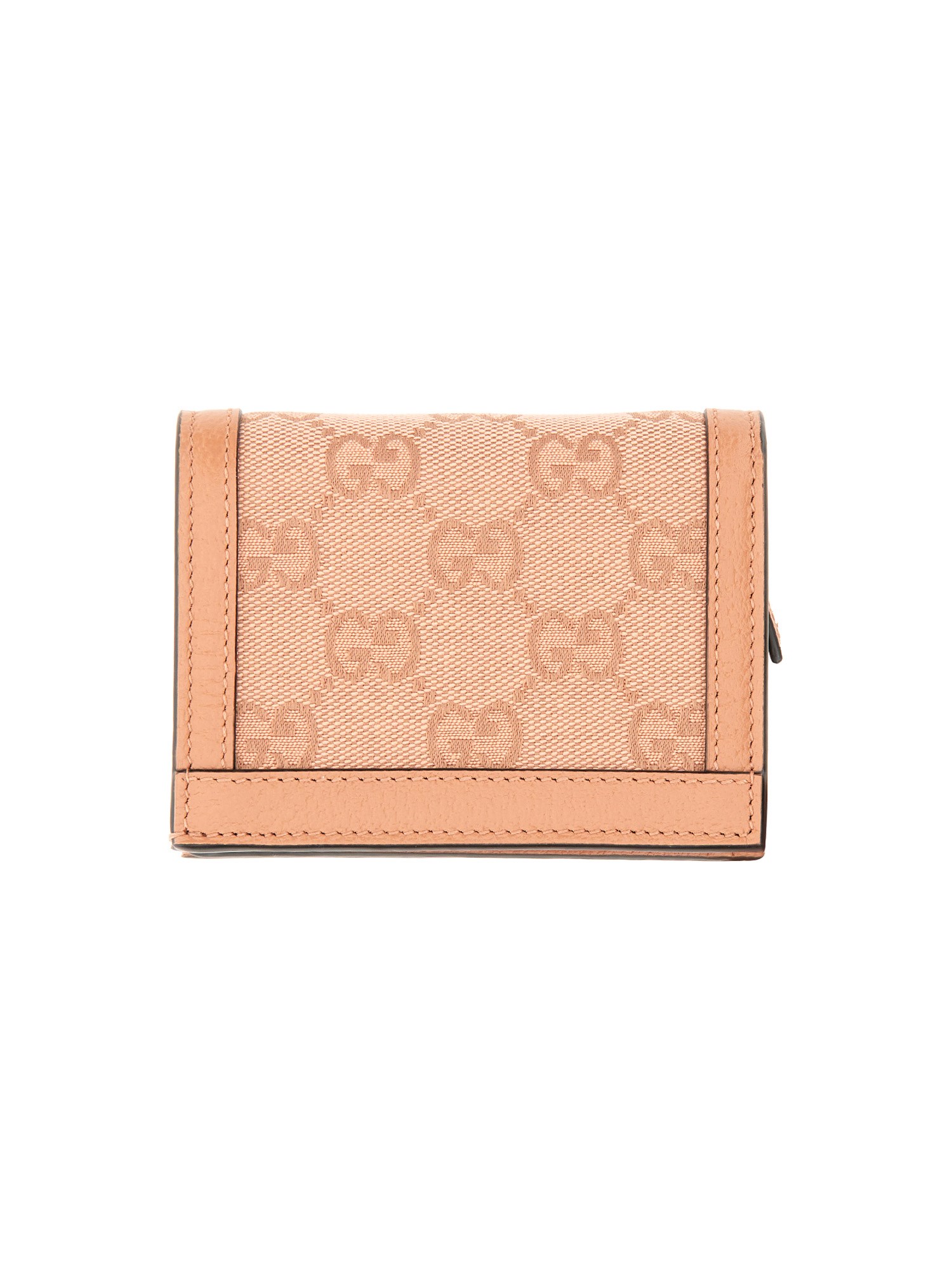 One of the House's most endearing colours, pink denotes opulence and joyfulness with its unique pigmentation. Gucci's new pink GG canvas decorates a selection of small leather pieces, like this Ophidia card case wallet, with a rose gold hardware, introduced for Pre-Fall 2023.
