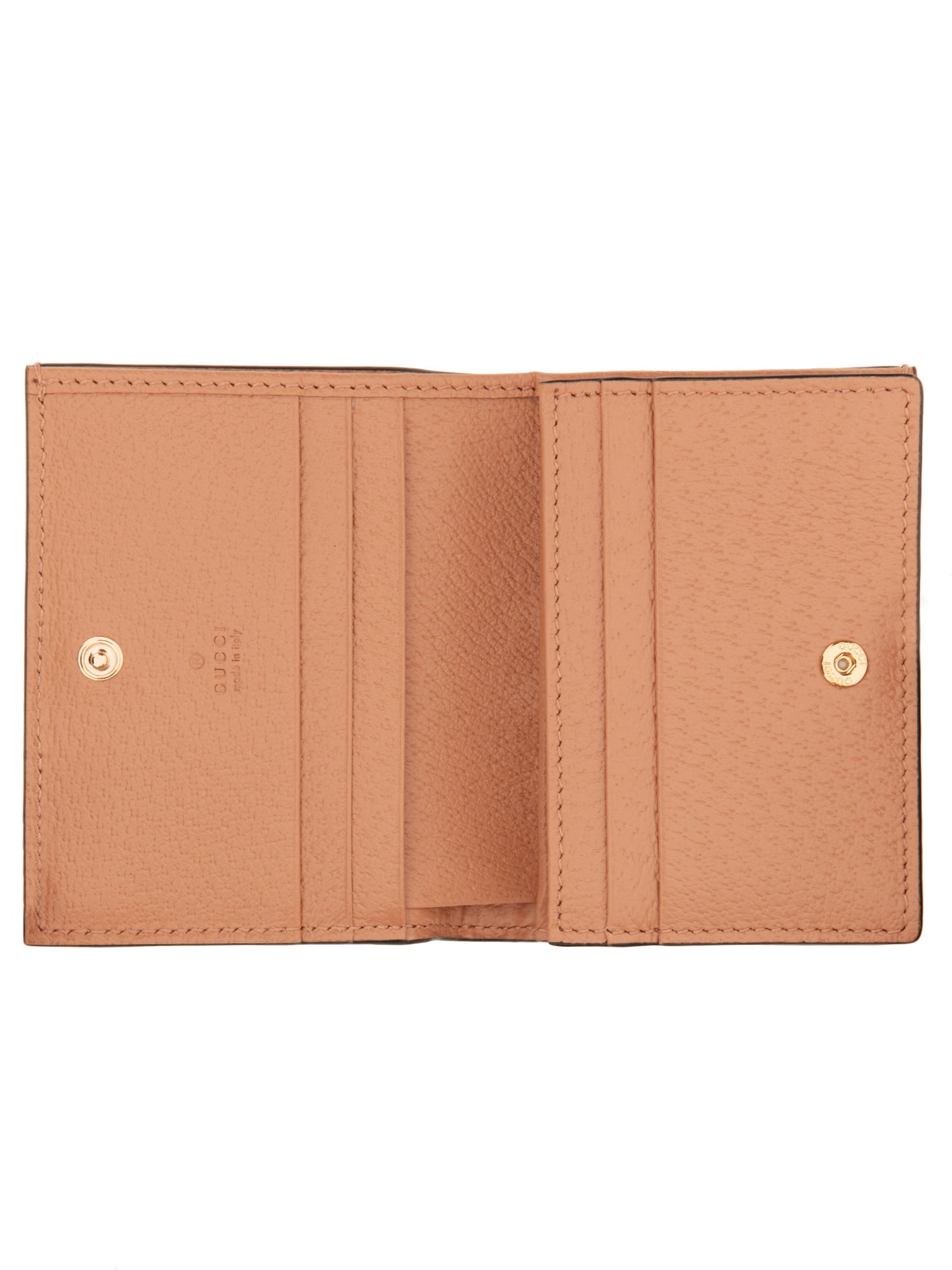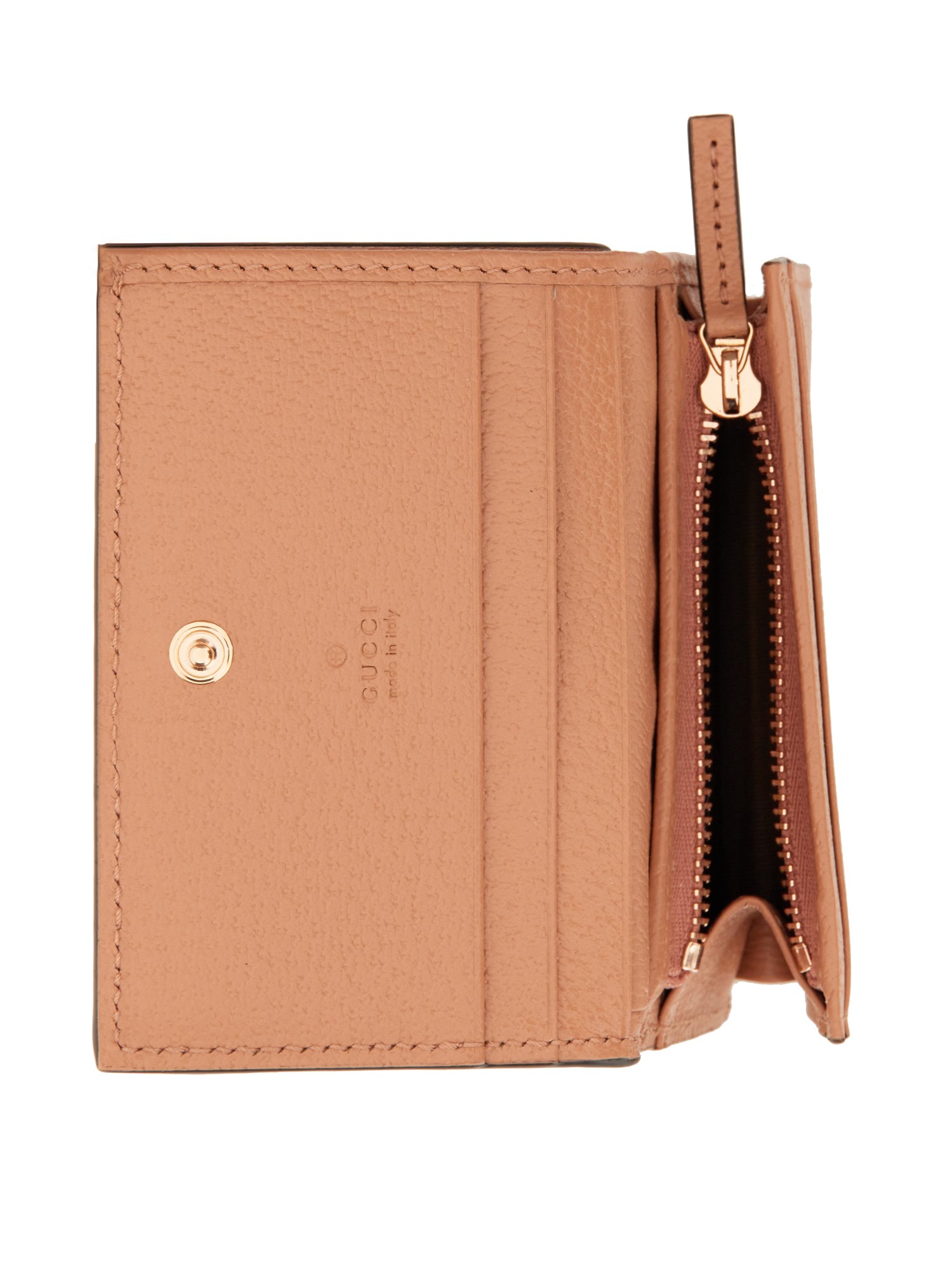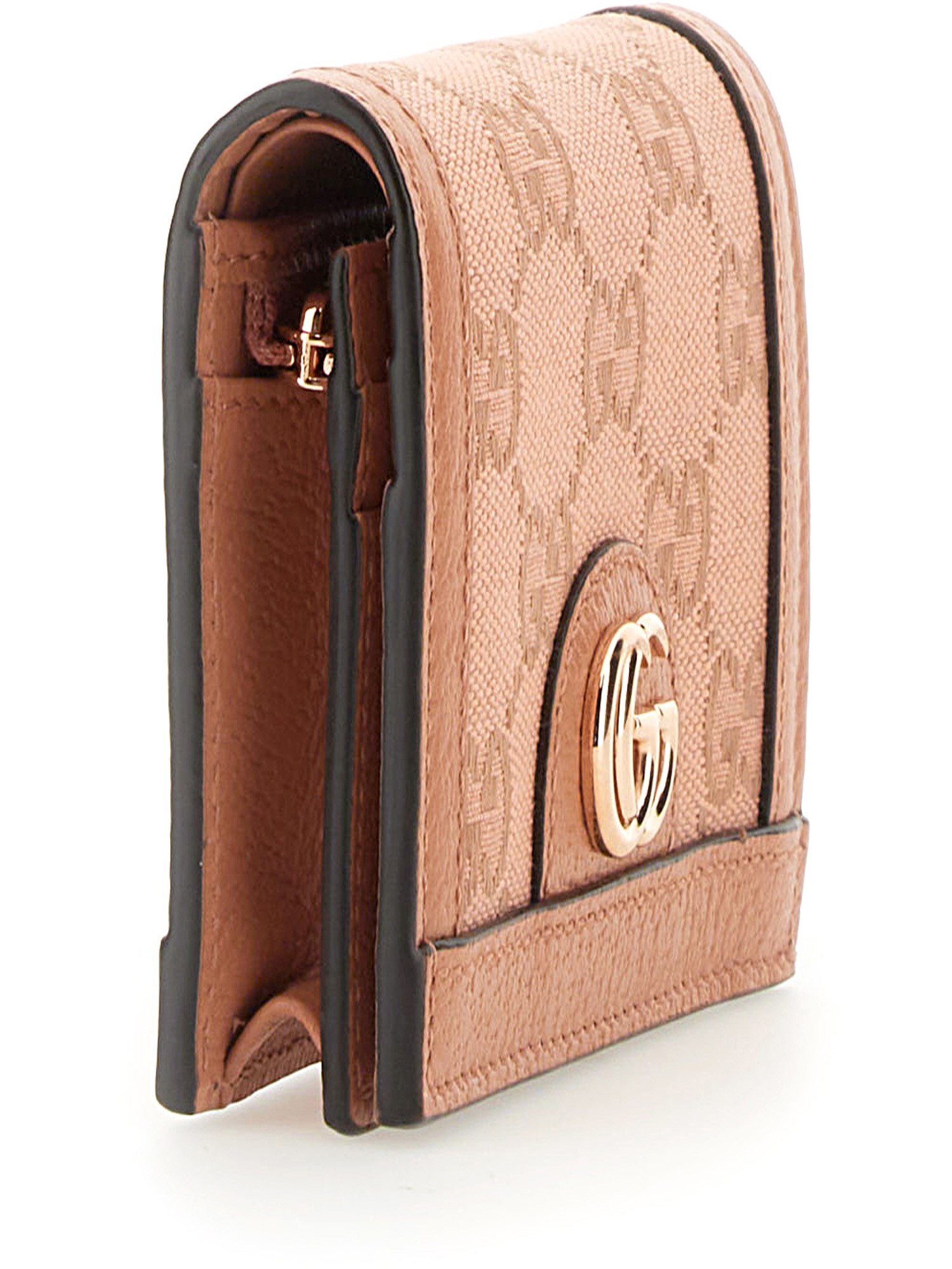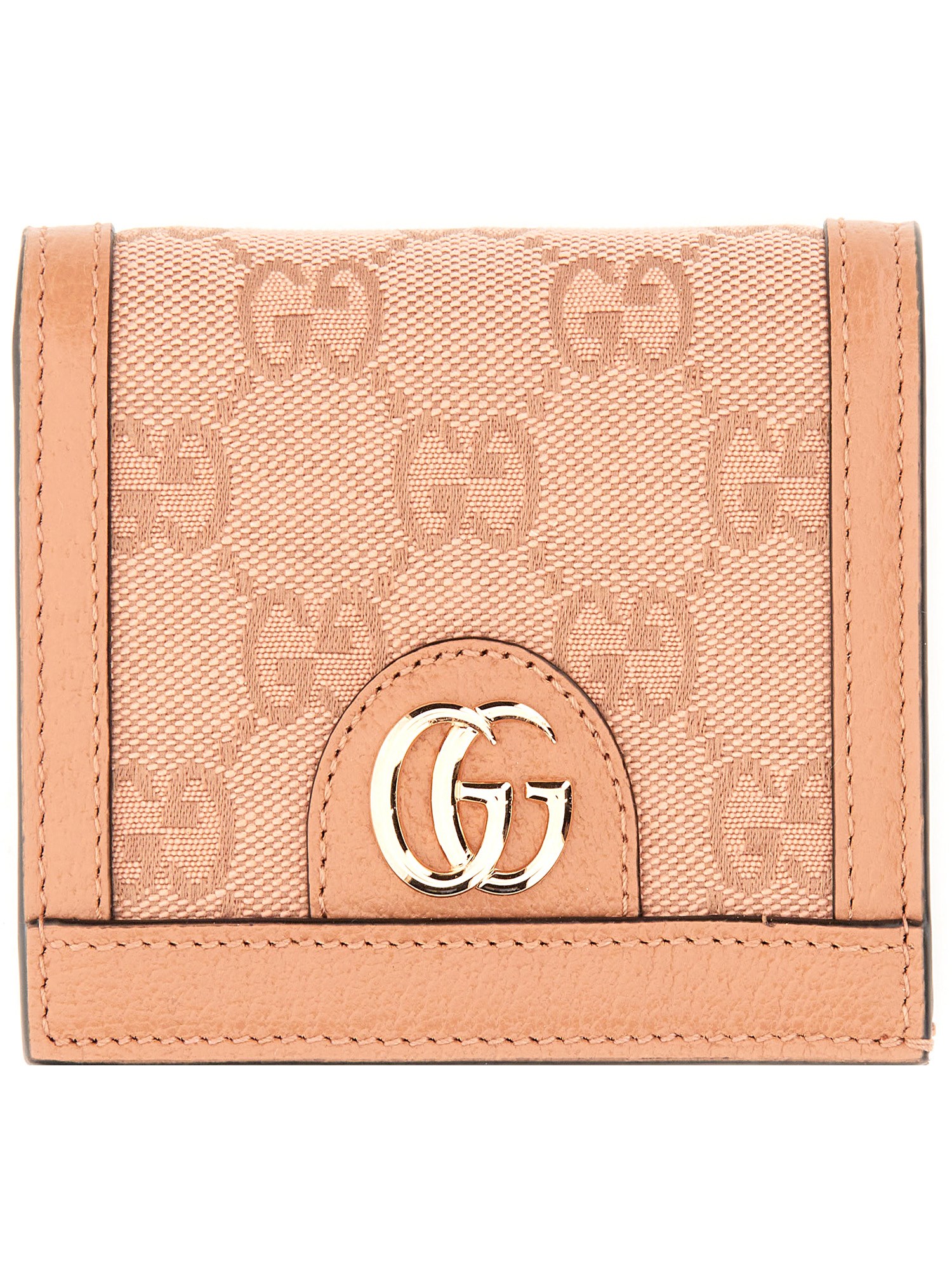One of the House's most endearing colours, pink denotes opulence and joyfulness with its unique pigmentation. Gucci's new pink GG canvas decorates a selection of small leather pieces, like this Ophidia card case wallet, with a rose gold hardware, introduced for Pre-Fall 2023.