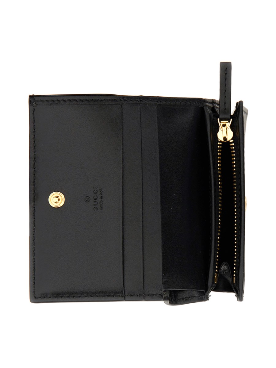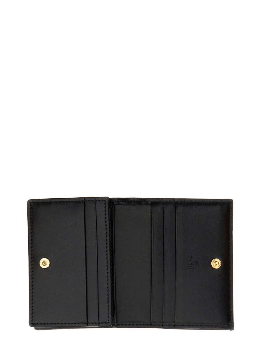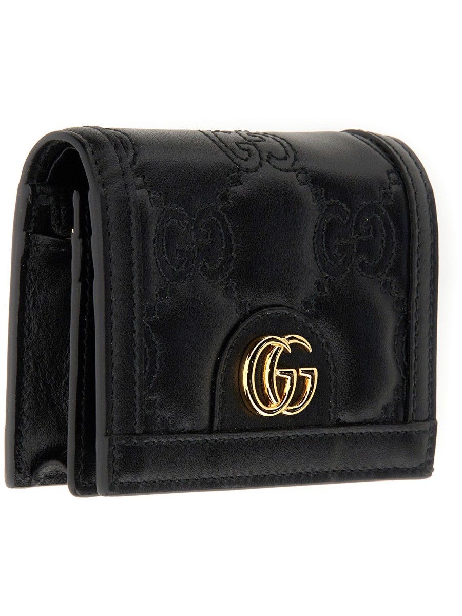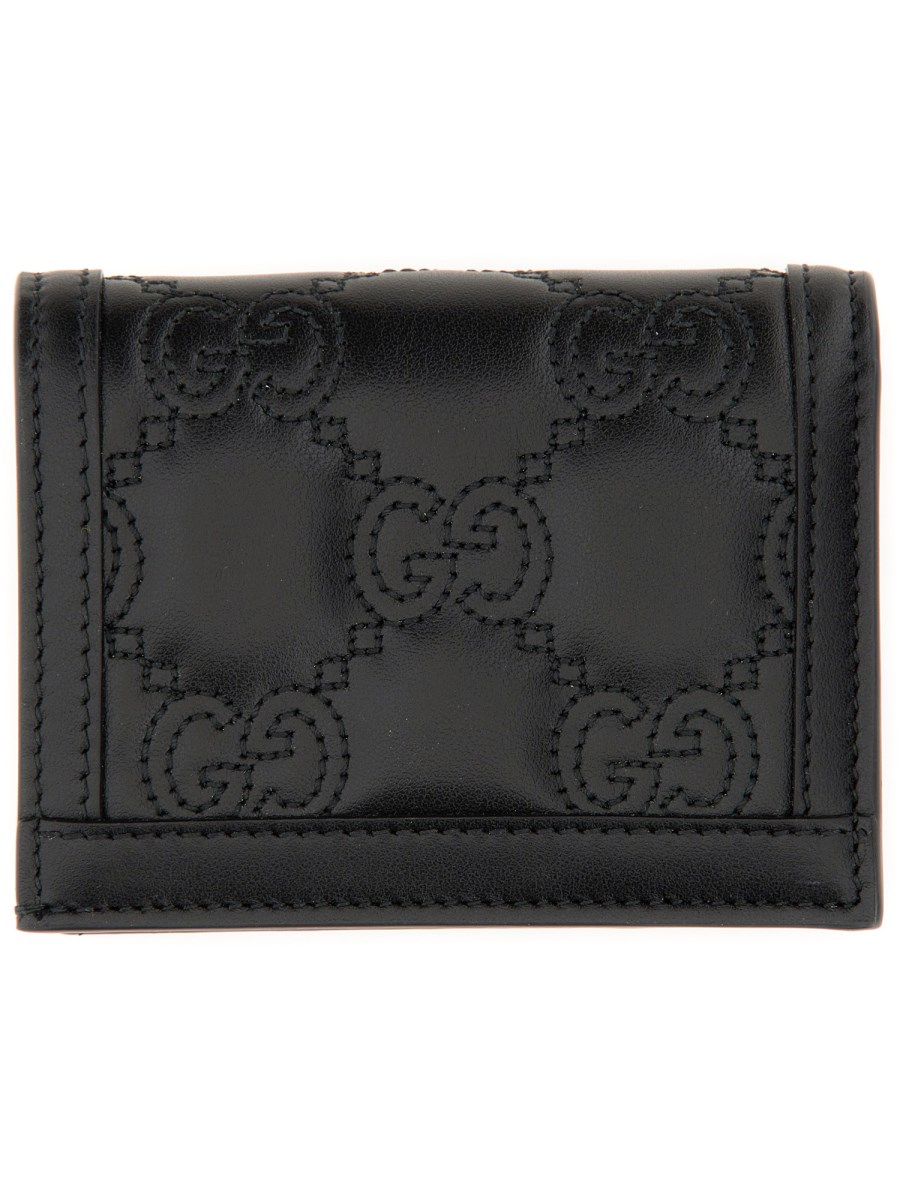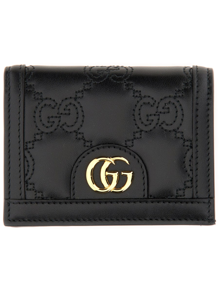 Matelassé leather continues to come to the fore of the Creative Director's designs in unique ways each season. With a super soft finish, the signature material is reimagined with a textured geometric motif as a part of the small leather accessories line. The design presents a contemporary approach to the '90s logo trend, here it defines a black card case wallet.