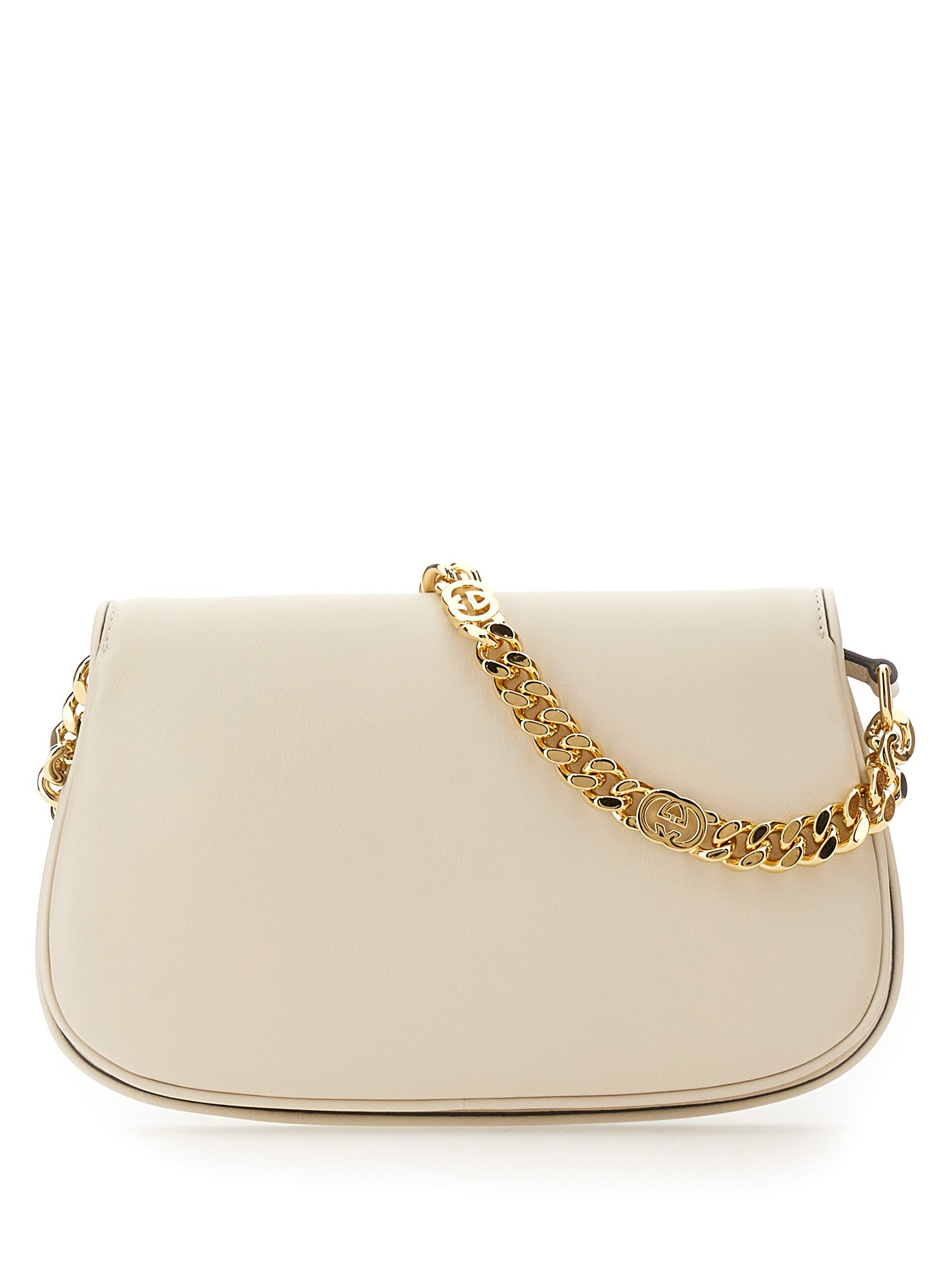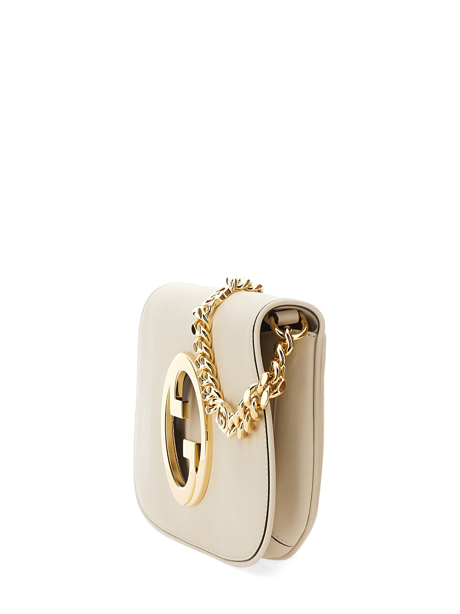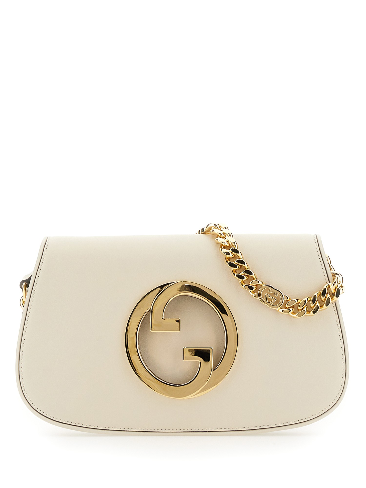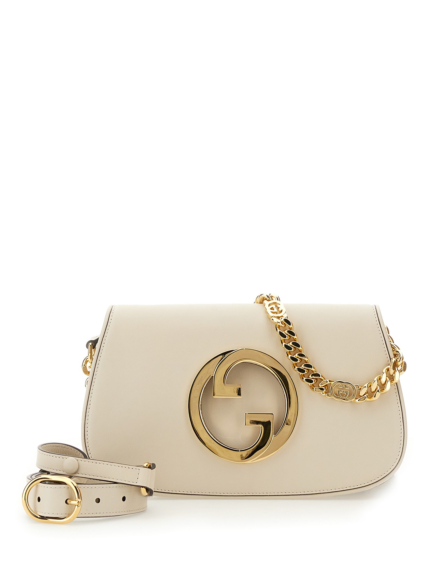 Coming from the House's archives, a round shaped version of the Interlocking G logo is reintroduced for Gucci Love Parade. Crafted from white leather, this shoulder bag is completed by a delicate chain strap, infusing this accessory with a refined feel.