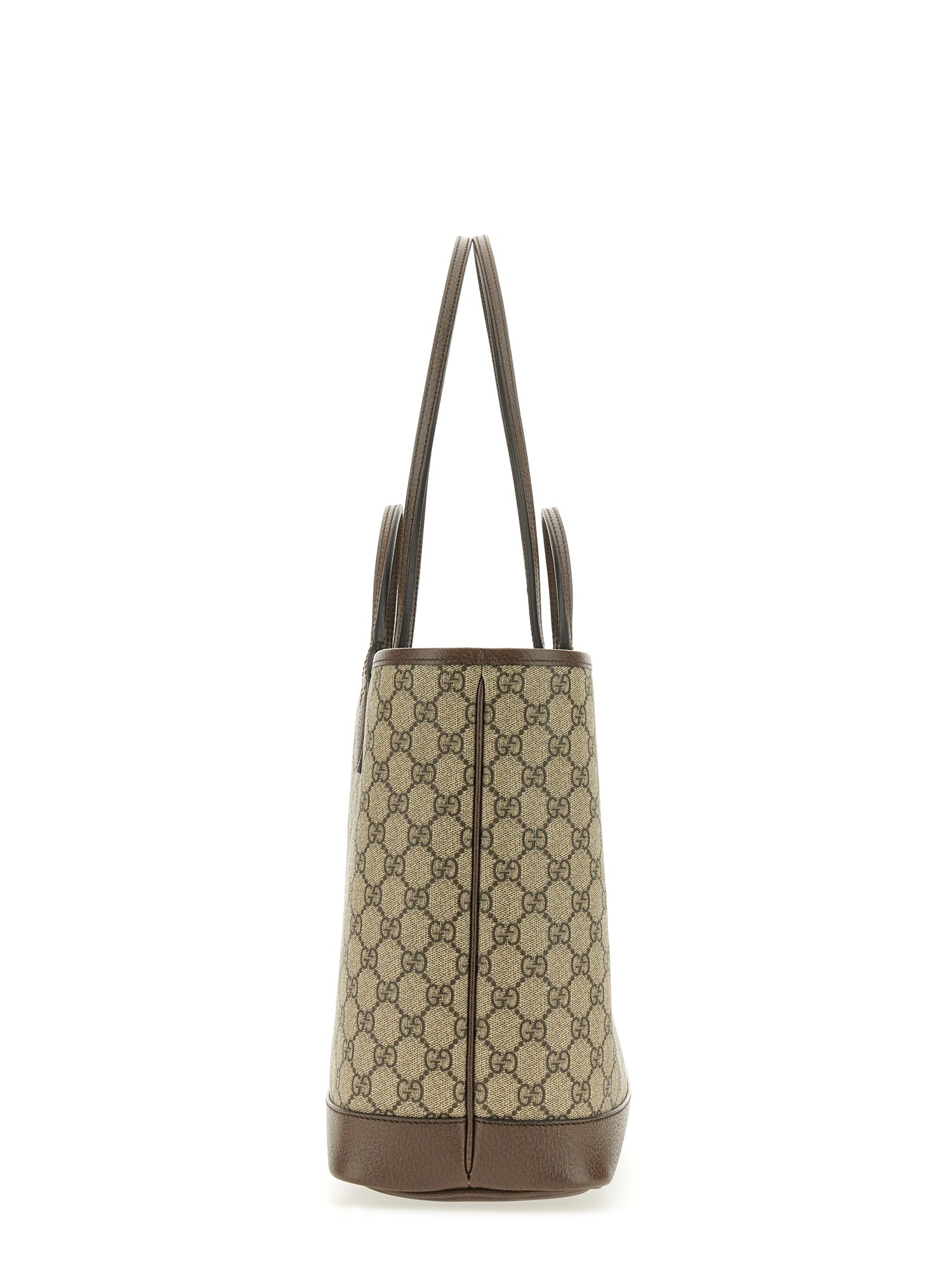 The Ophidia line continues to be one of Gucci signature handbags. New silhouettes are introduced each season, providing versatile accessories to complete any look. Two handles transform this tote bag, allowing it to be styled either as a shoulder bag or top handle. The Double G remains integral to the design, presented in GG Supreme canvas with a brown leather trim.