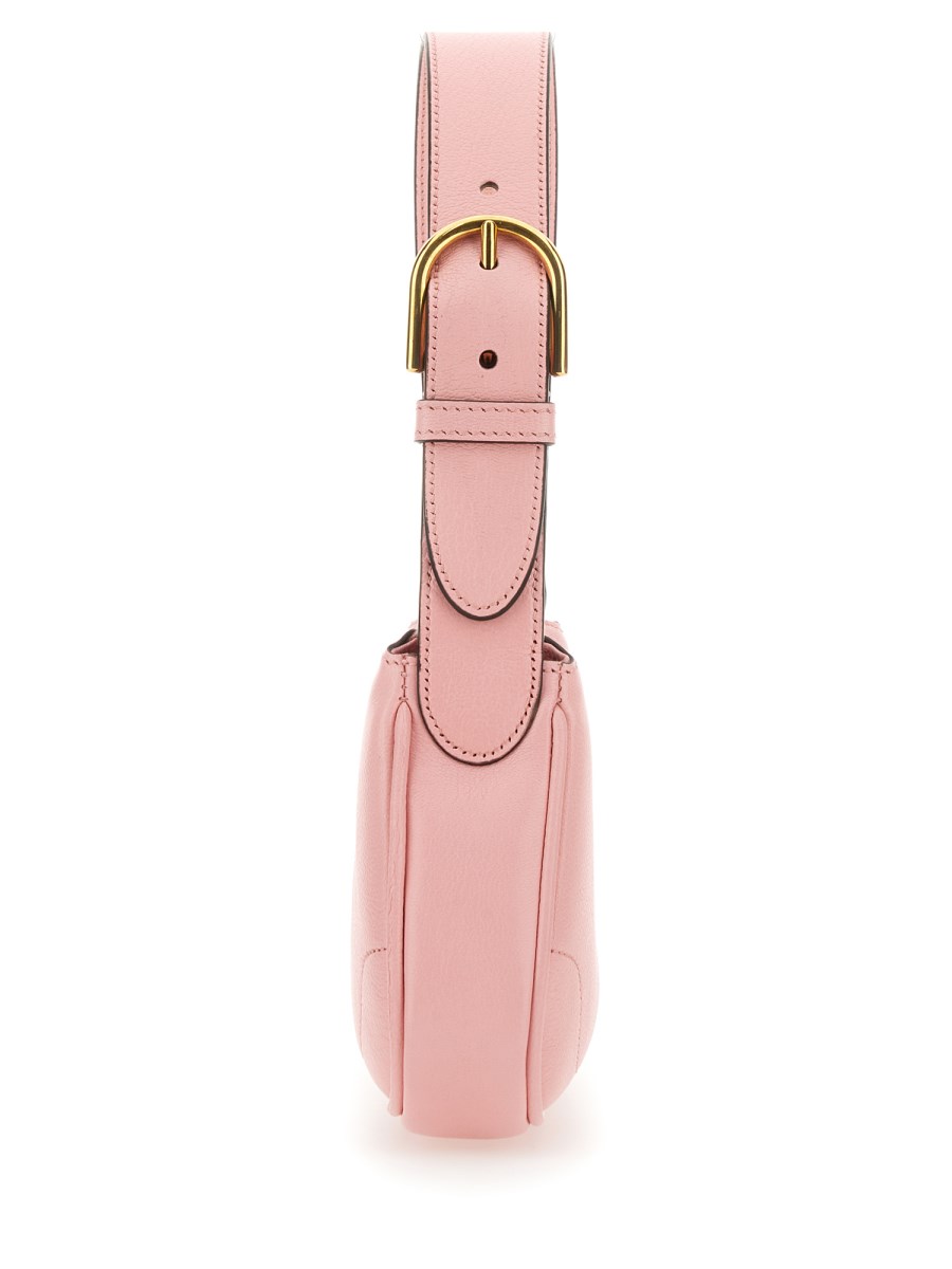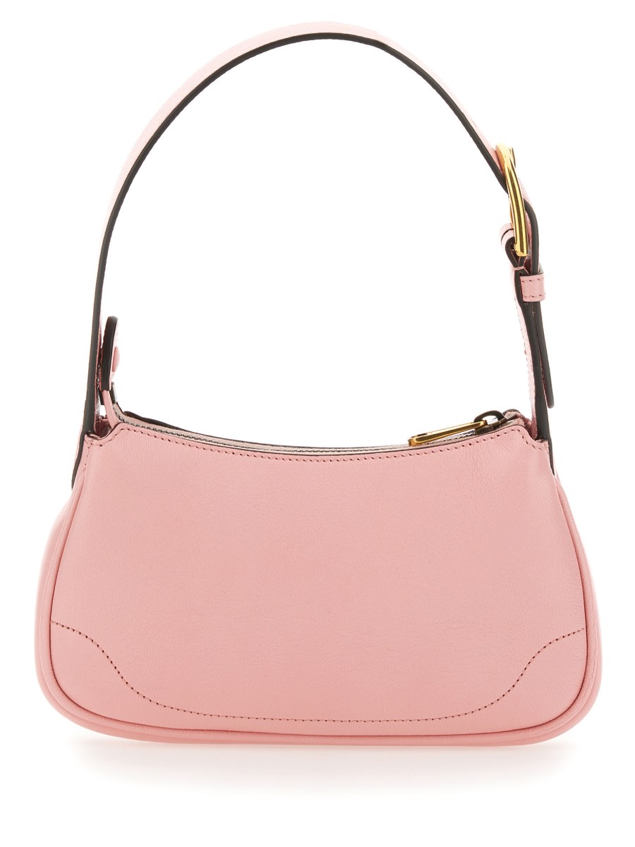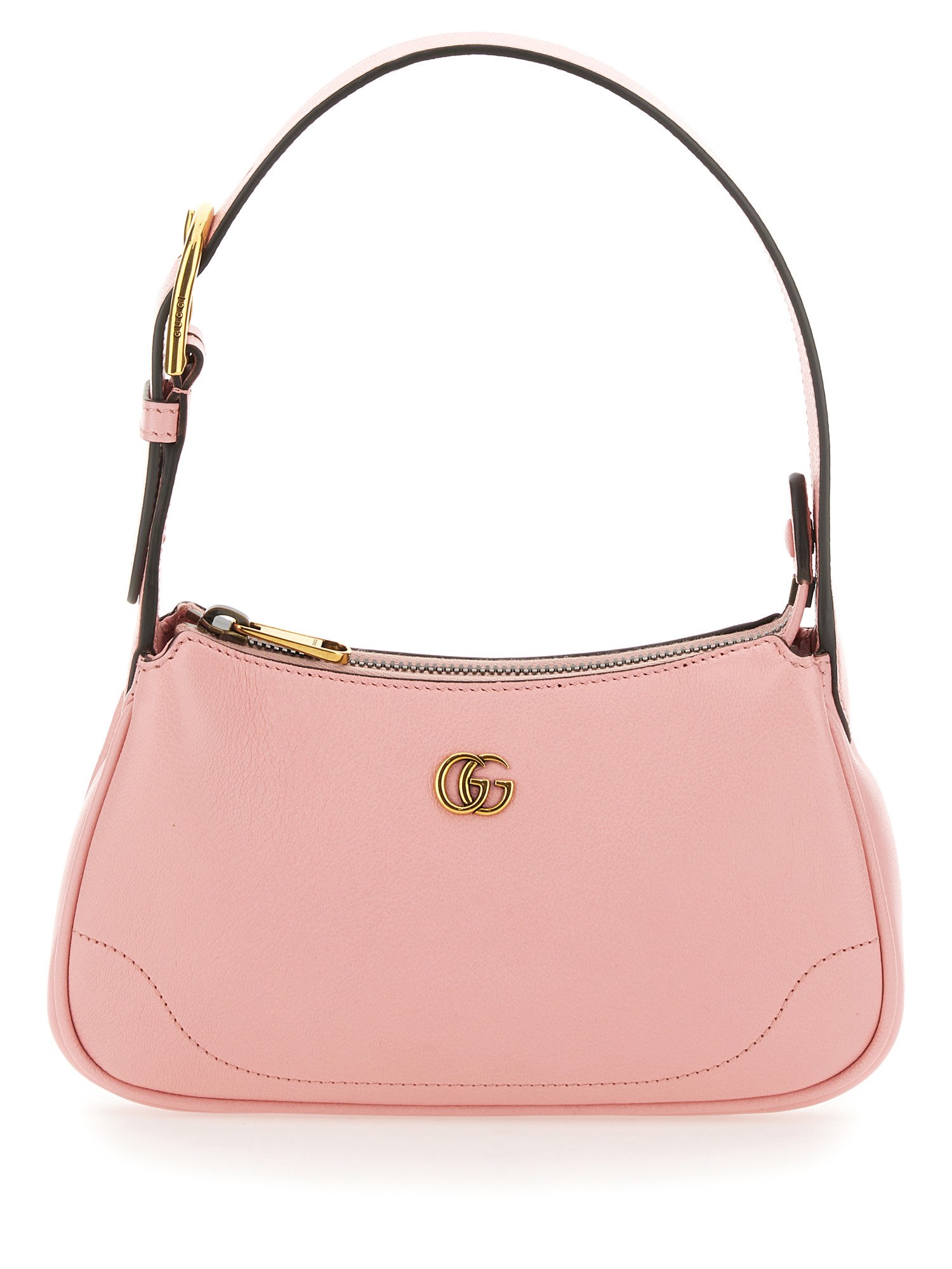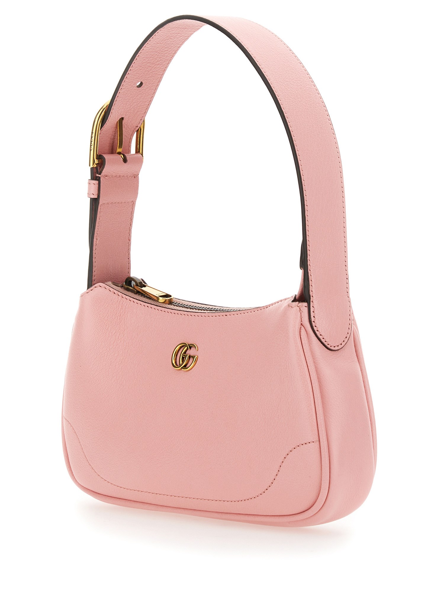 A nod to styles popular during the late 1990s and early 2000s, the Aphrodite line welcomes a new shape with this small shoulder bag, which pairs the essential design with pop colours and the unmistakable Double G hardware, for a sleek yet unexpected look. Here, it's presented in a soft light pink leather with a gold-toned zip closure.