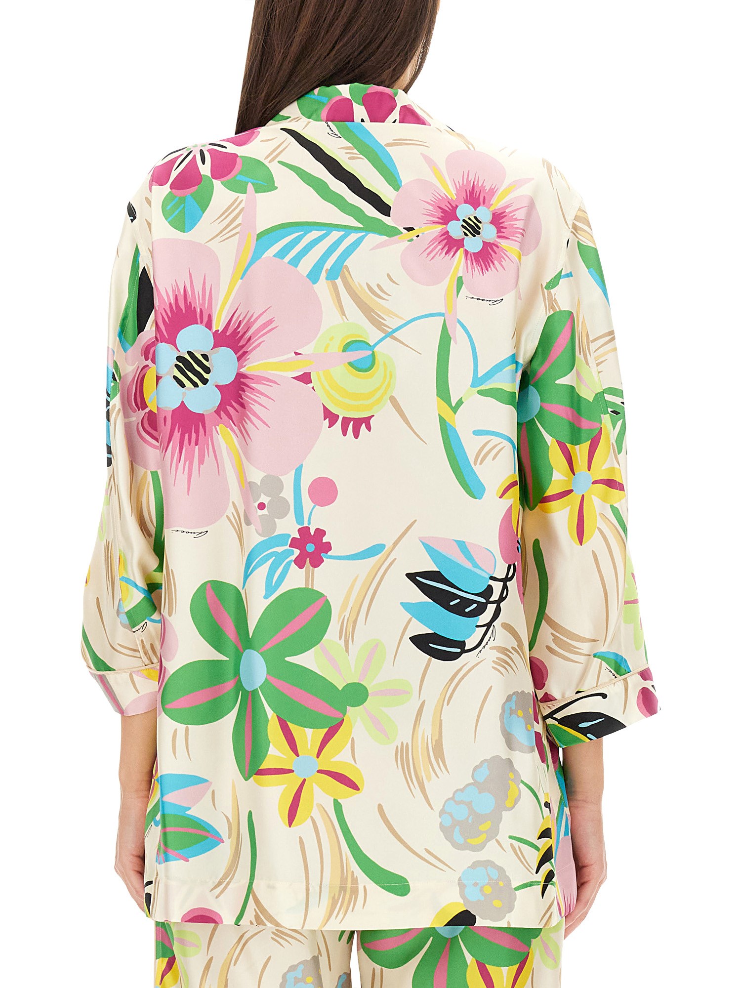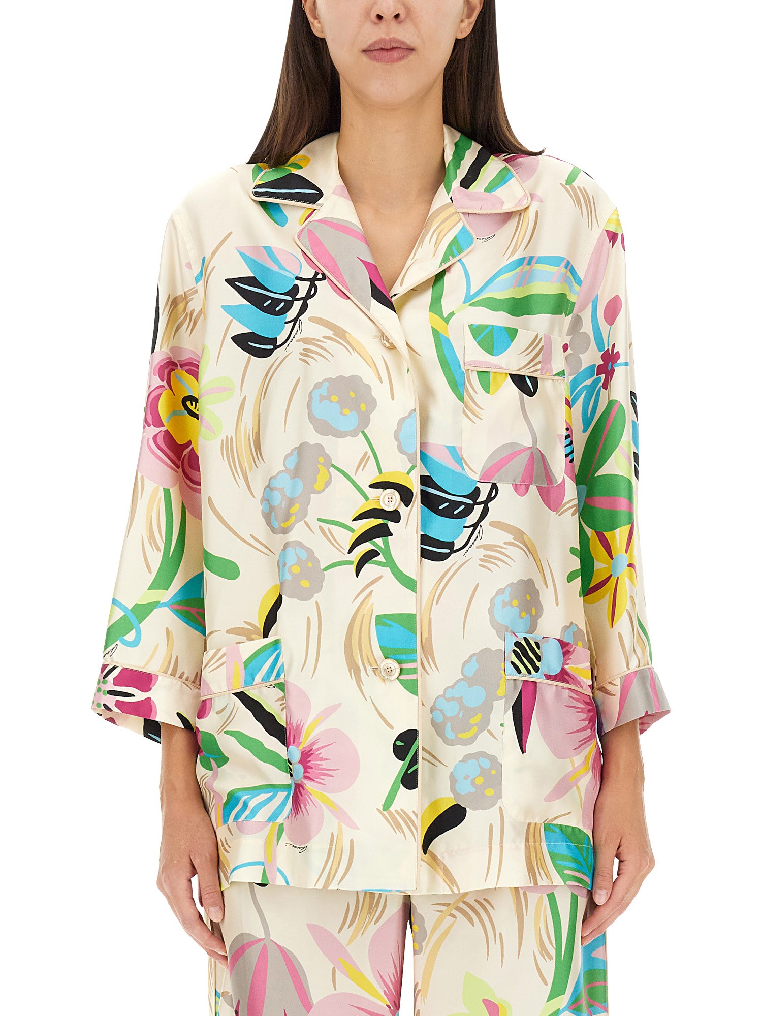 Stark contrasts have inspired a series of eye-catching motifs in the new collection. This fluid silk shirt reveals a bold floral print in an array of colourful shades, offering an ultra feminine addition to every look.