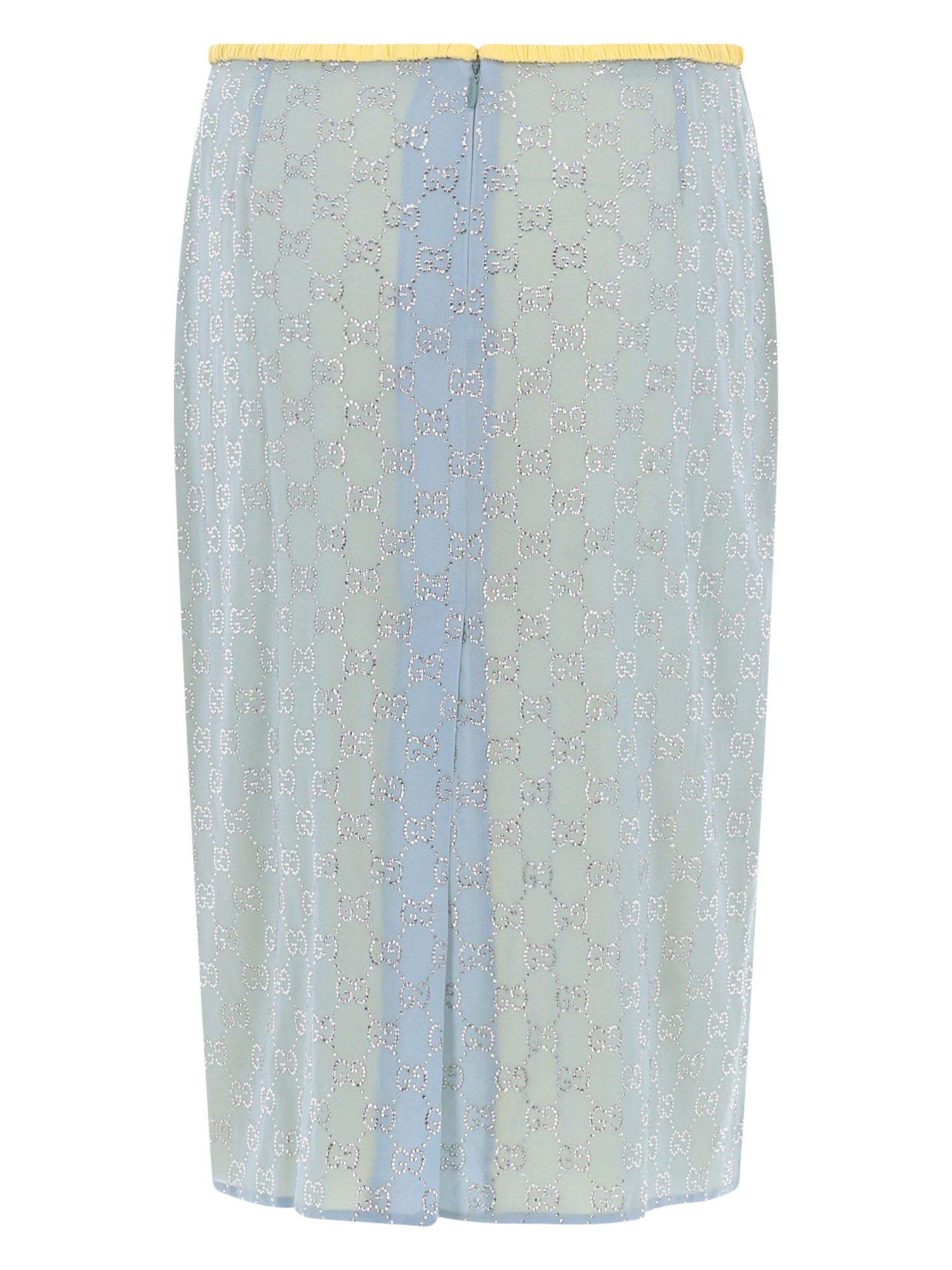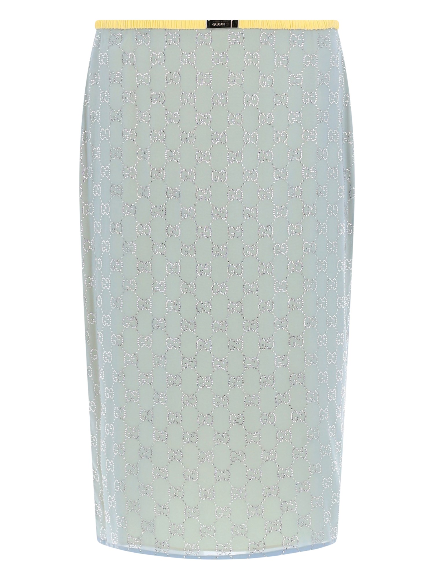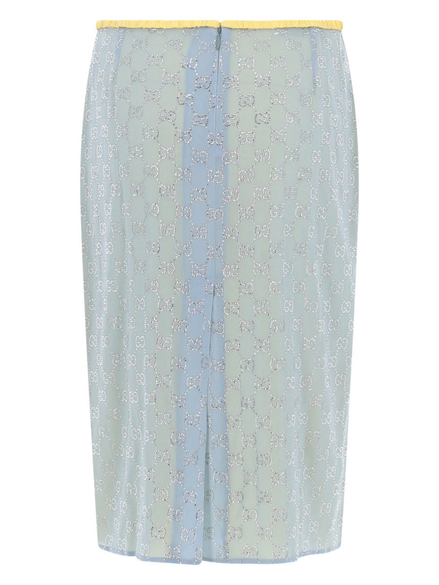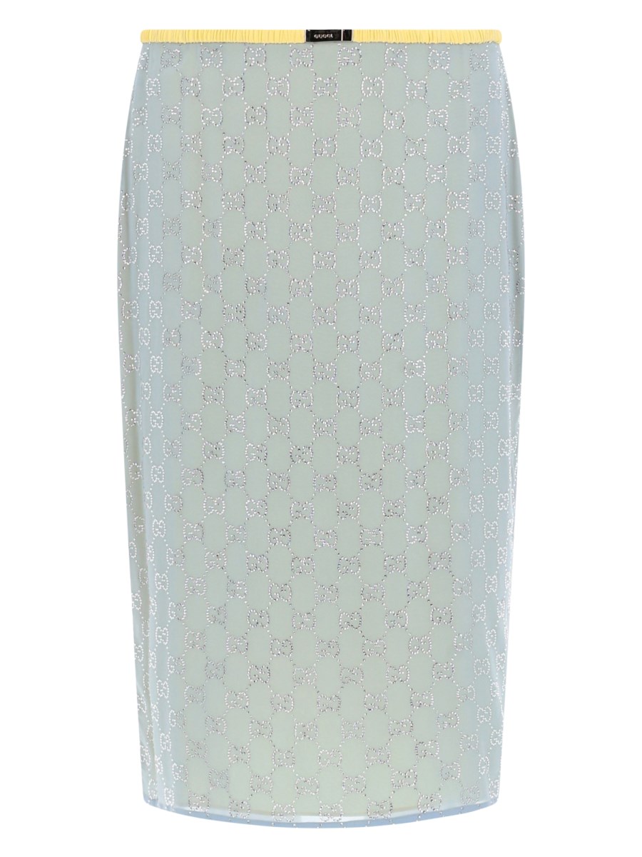 SILK MIDI SKIRT WITH RHINESTONE GG PATTERN