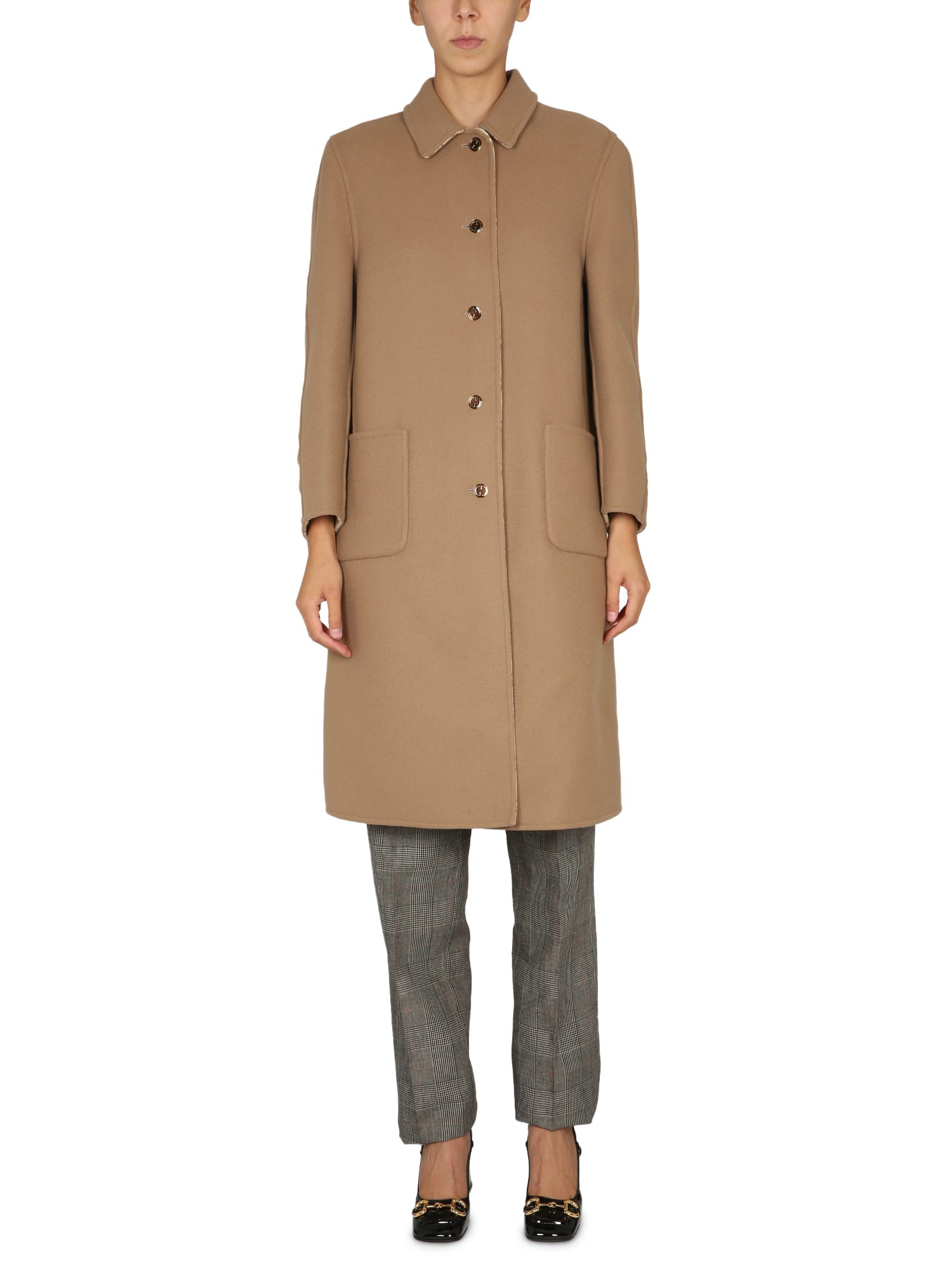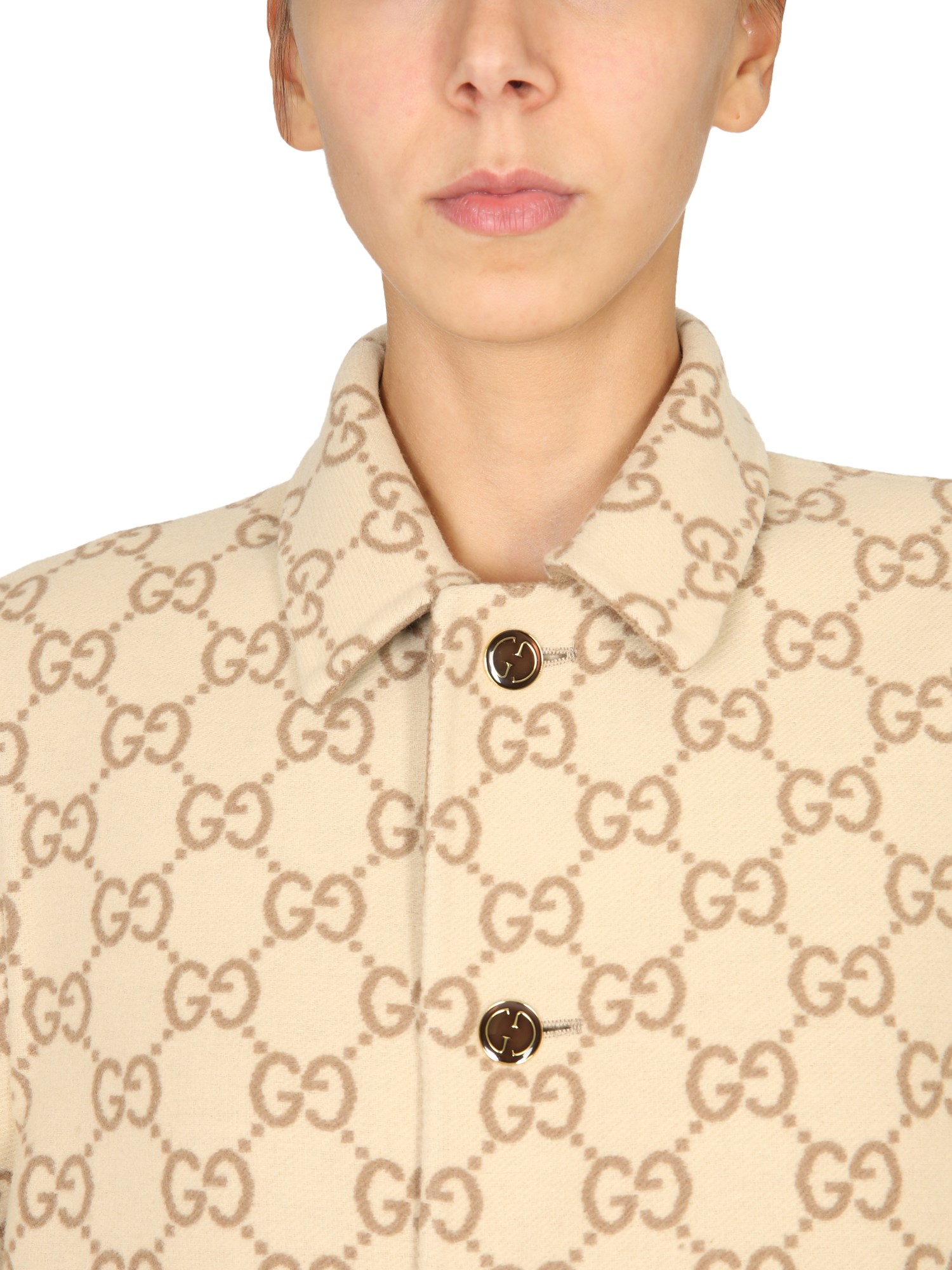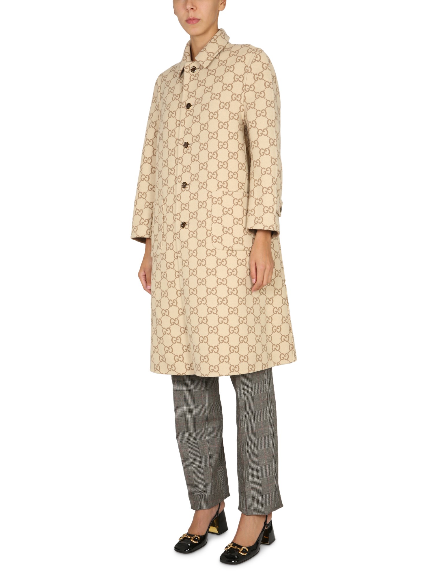 Reversible pieces play with the idea of exploration and experimentation that animates the House's narrative. Crafted from beige GG wool on one side and camel wool on the other, the coat takes on a retro feel thanks to vintage Interlocking G buttons.