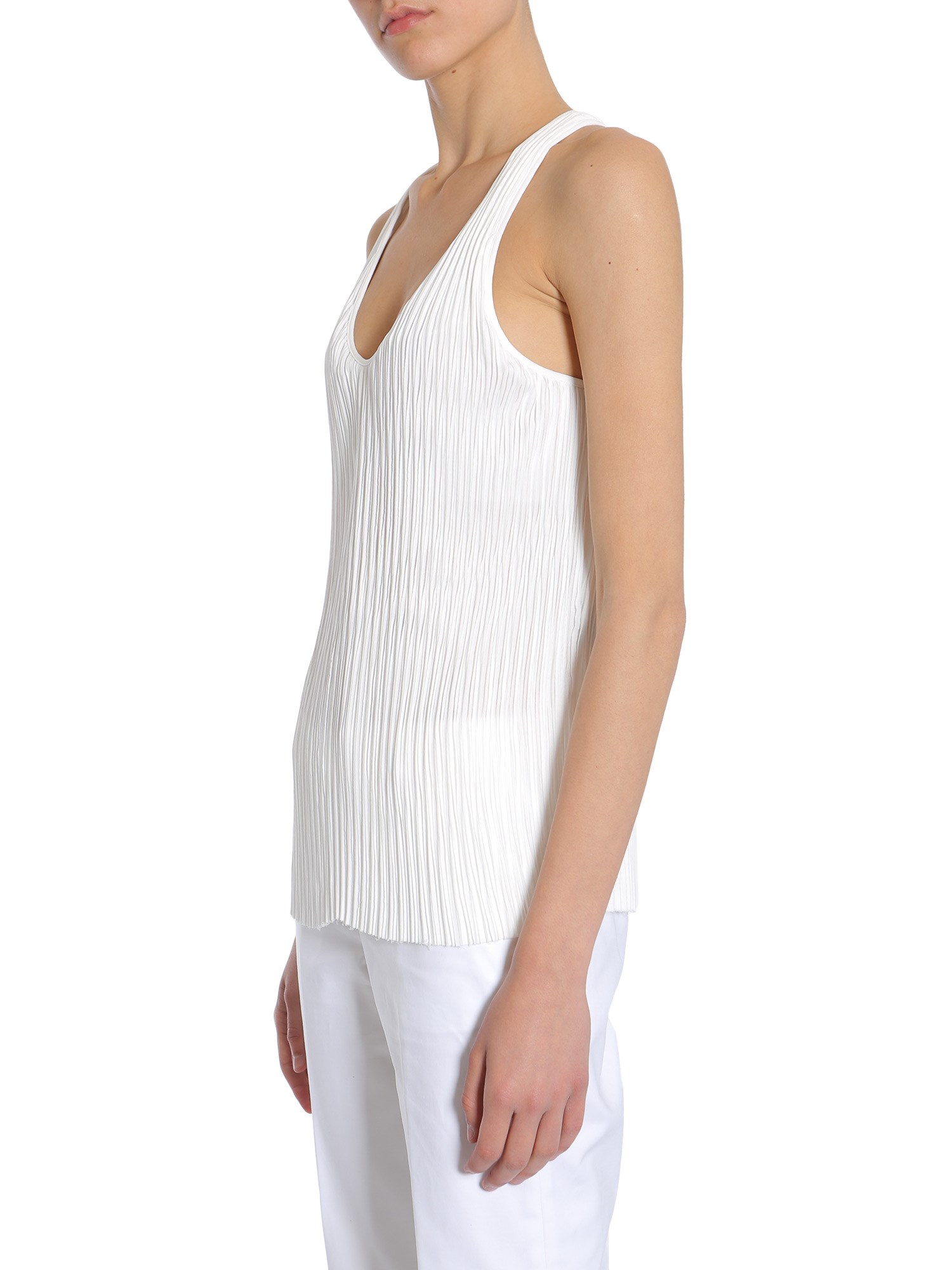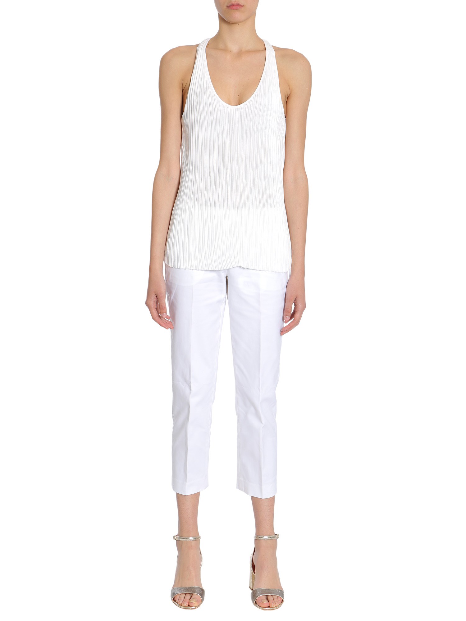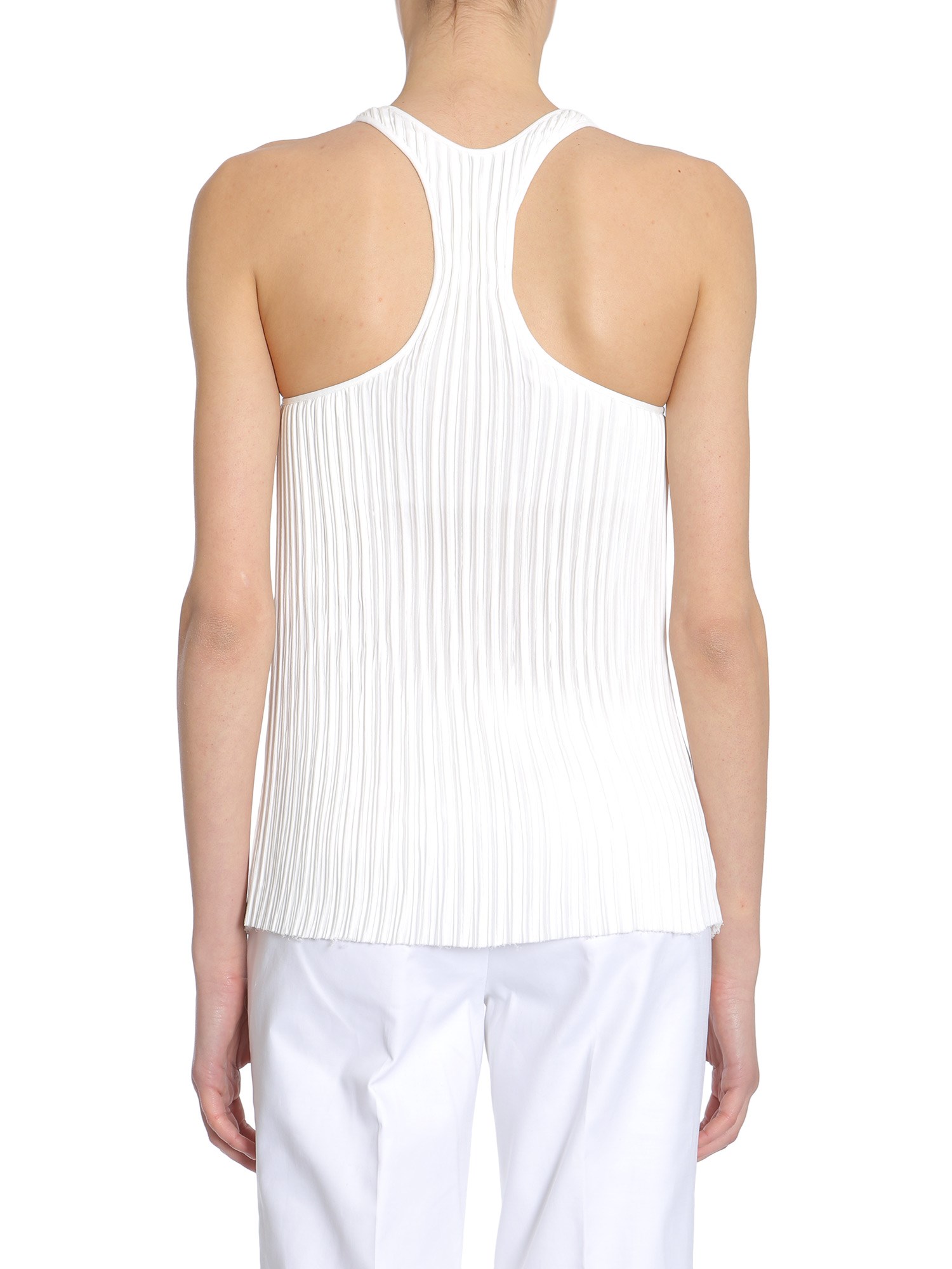 - ROUND COLLAR- WIDE STRAPS- ALL-OVER PLEATED FARBIC- 100% POLYESTER- MODEL IS WEARING SIZE 36