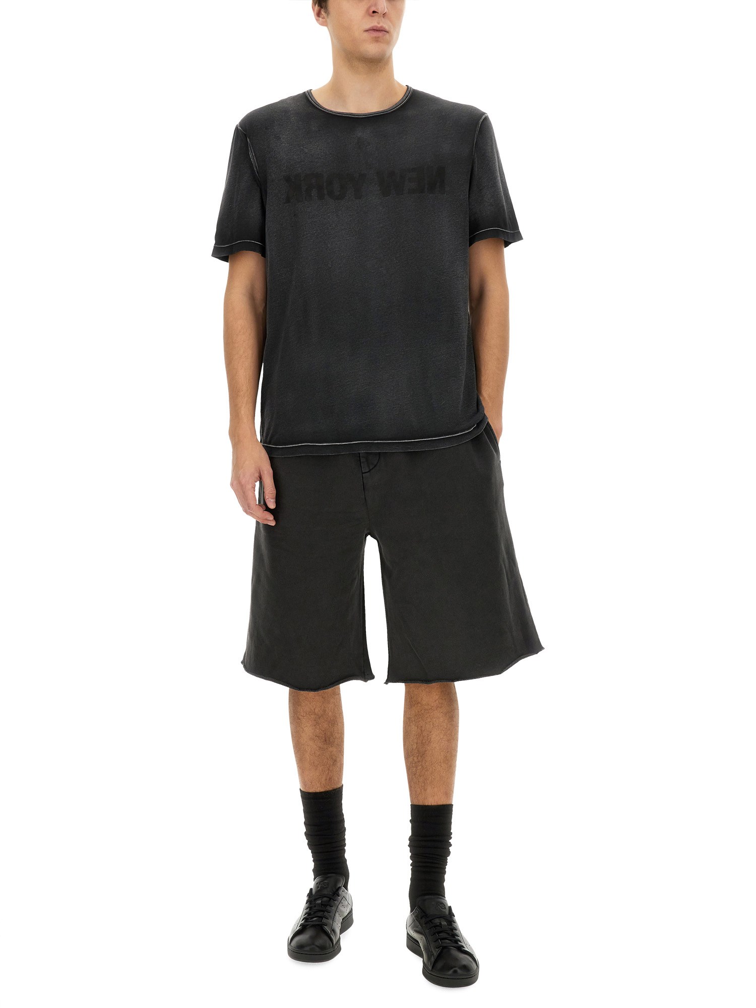 Elevate your casual wardrobe with the Garment-Dyed New York T-shirt from Helmut Lang. Crafted from premium cotton, this T-shirt features a unique garment-dyed finish that offers a rich, lived-in look while ensuring exceptional comfort. The minimalist design is accentuated by a subtle logo, making it a versatile piece that pairs effortlessly with jeans or shorts. Experience the perfect blend of style and sophistication with this essential addition to your collection.