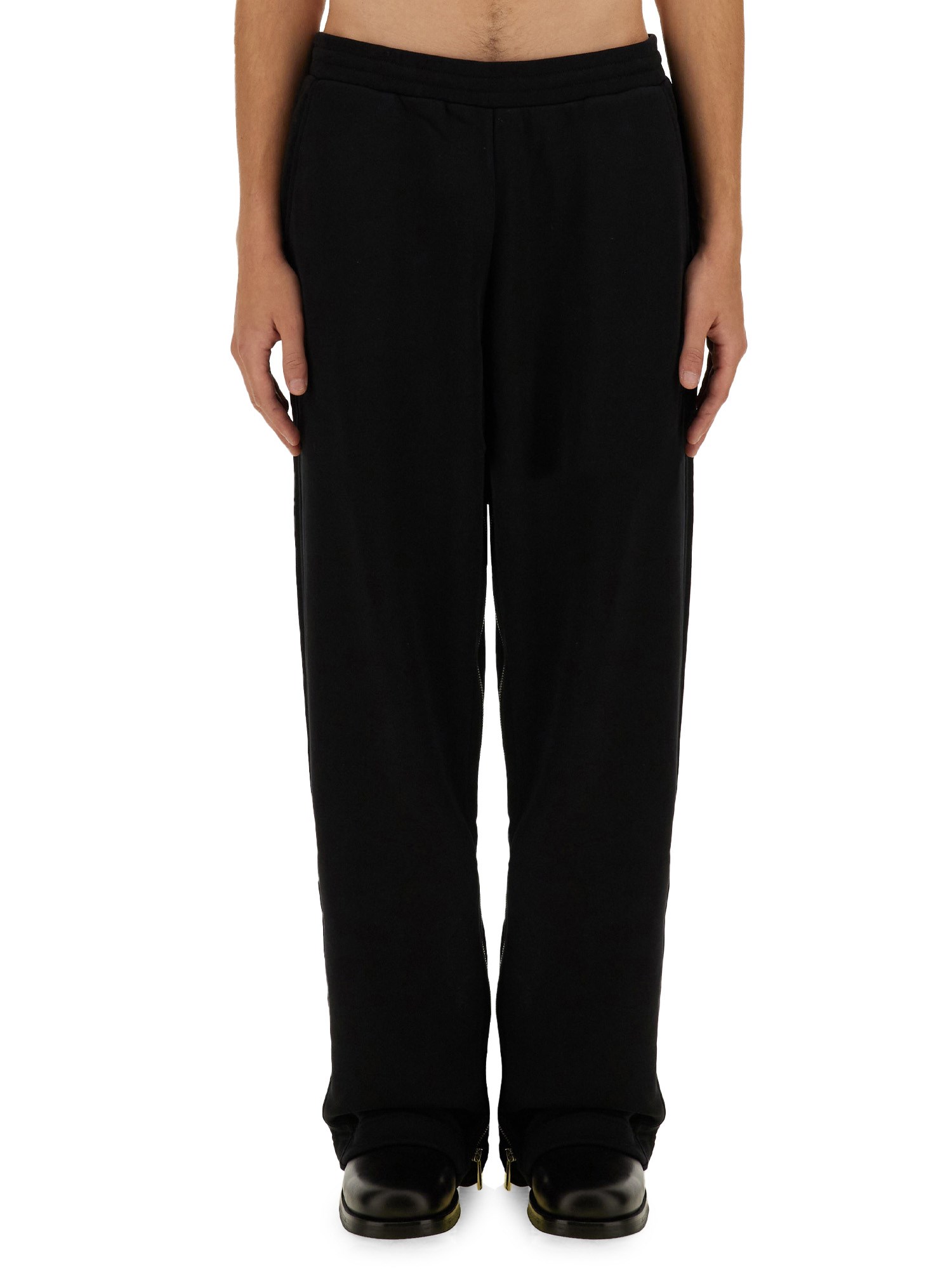 Helmut Lang presents a pair of stylish jogging pants featuring a convenient zipper, designed for both comfort and functionality. Crafted from high-quality materials, these pants offer a modern silhouette that seamlessly blends athletic wear with contemporary fashion. The zipper detail adds a unique touch, making them suitable for various occasions, whether for casual outings or relaxed workouts. Experience the perfect combination of style and practicality with these essential jogging pants.