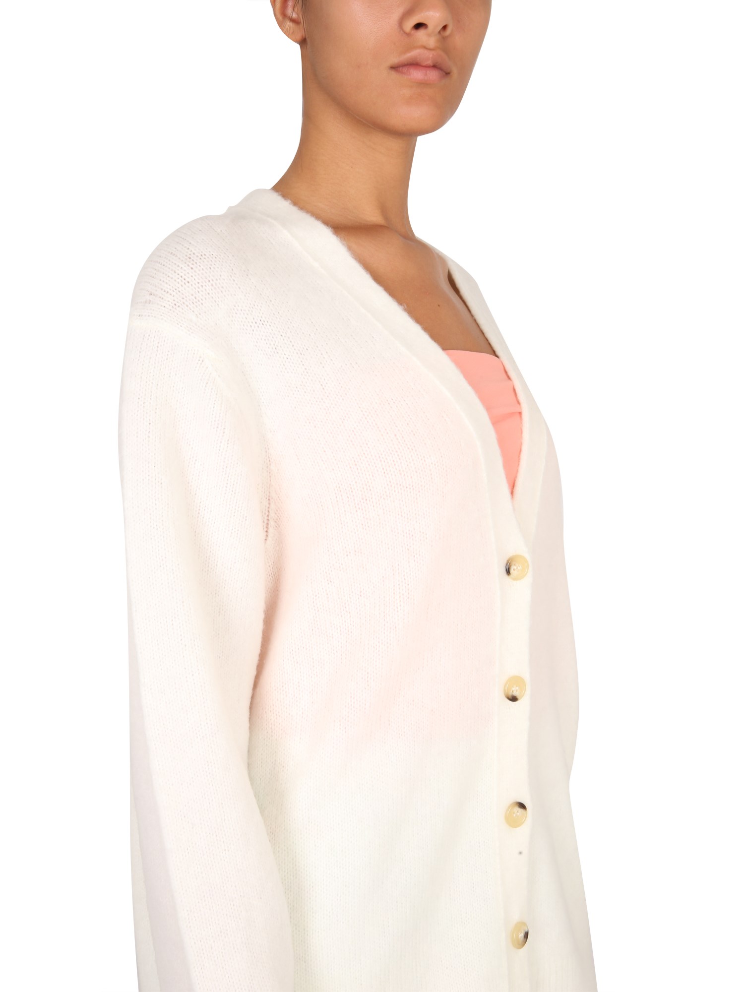 - V-NECK- FRONT BUTTON CLOSURE- 75% MERINO WOOL, 25% POLYAMIDE- THE MODEL IS 180 CM TALL AND WEARS SIZE S