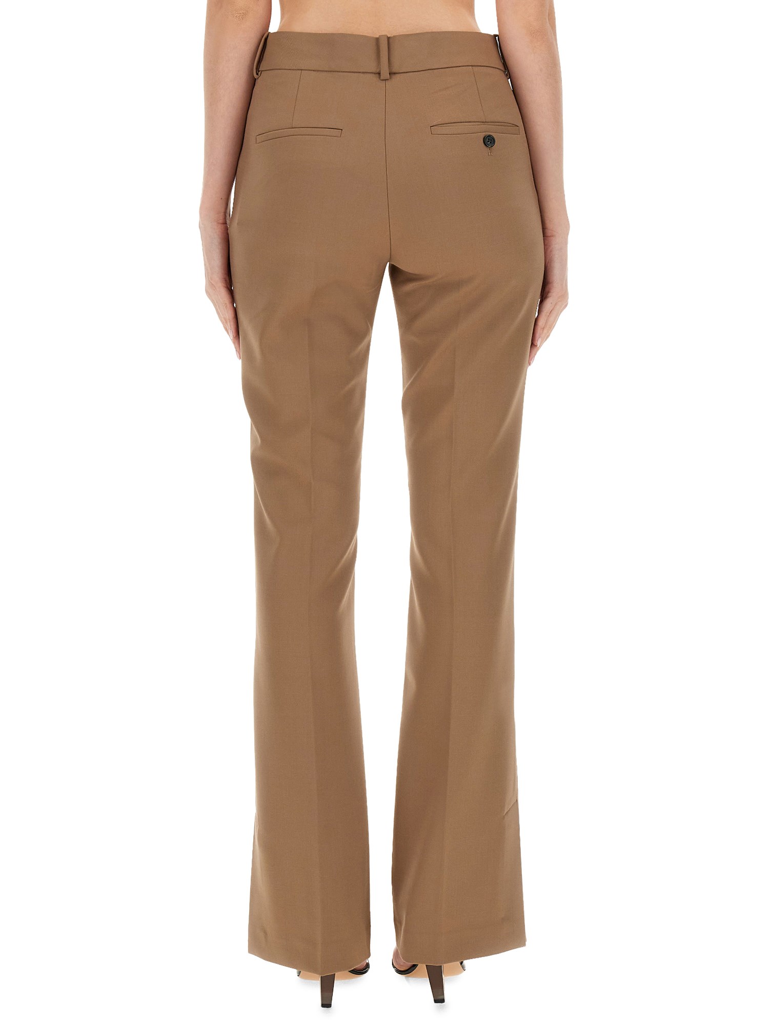 Discover ultimate comfort and style with our slim fit wool blend twill pants by Helmut Lang. Crafted from a premium blend of wool and polyester, these pants provide a lightweight and breathable feel, allowing you to move with ease throughout the day. The clean and straight-leg silhouette offers a timeless appeal, making them suitable for any occasion.