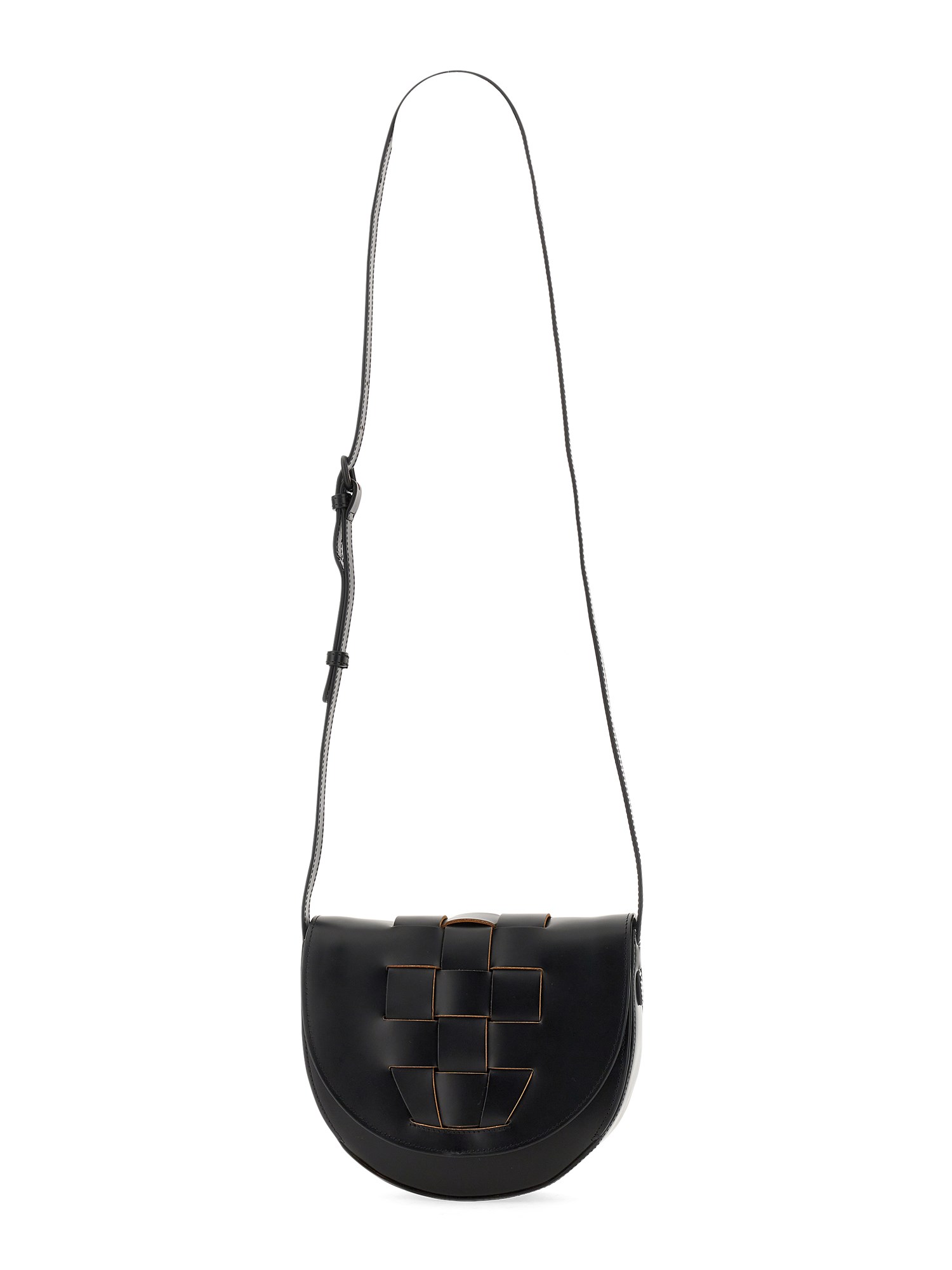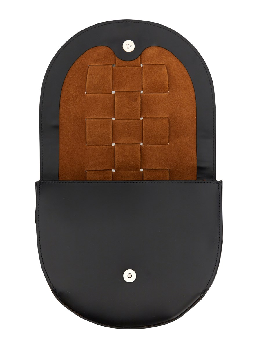 - ADJUSTABLE LEATHER SHOULDER STRAP- MAGNETIC CLOSURE- MAIN COMPARTMENT- WOVEN PATTERN- DIMENSIONS: H 18 CM X W 21 CM X D 6 CM- 100% LEATHER