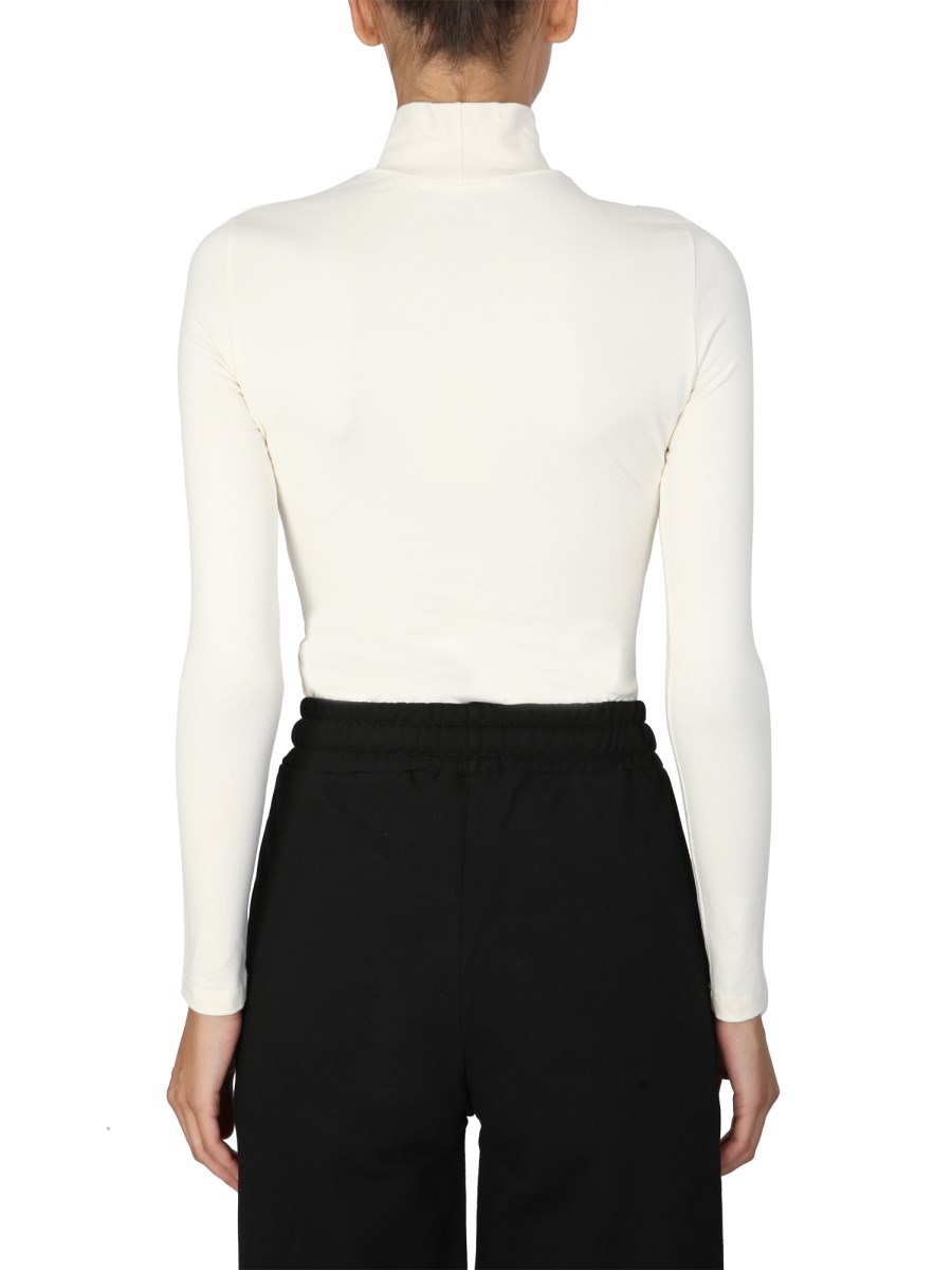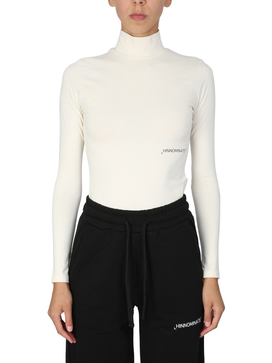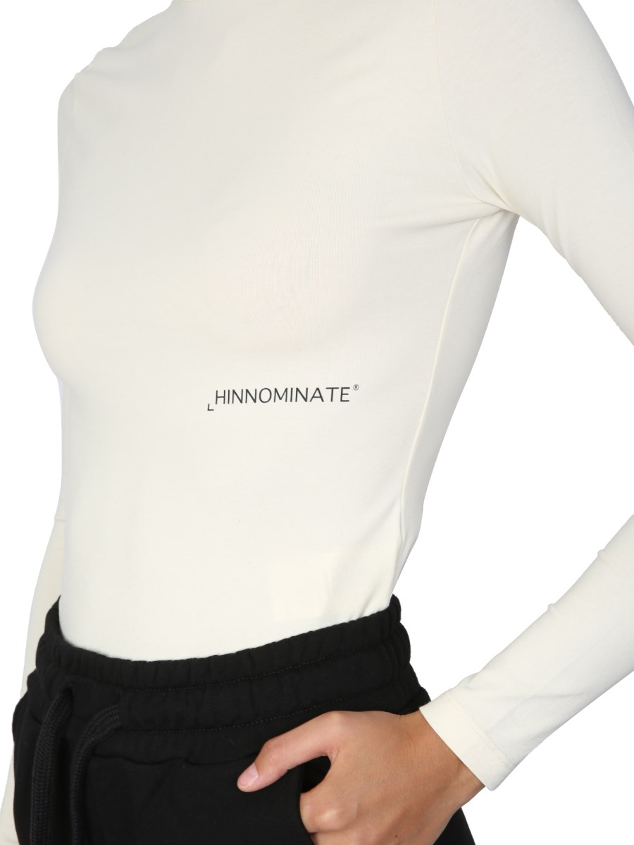 This cotton jersey T-shirt by Hinnominate features a high neck and a front logo print. The print is reminiscent of the clean lines of the female form. It has a slim fit that will make you look fit. It is made from 100% cotton that is soft and comfortable and perfect for any occasion.