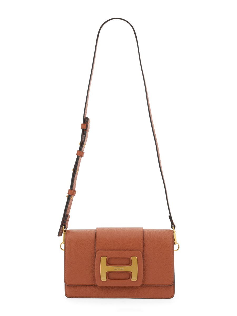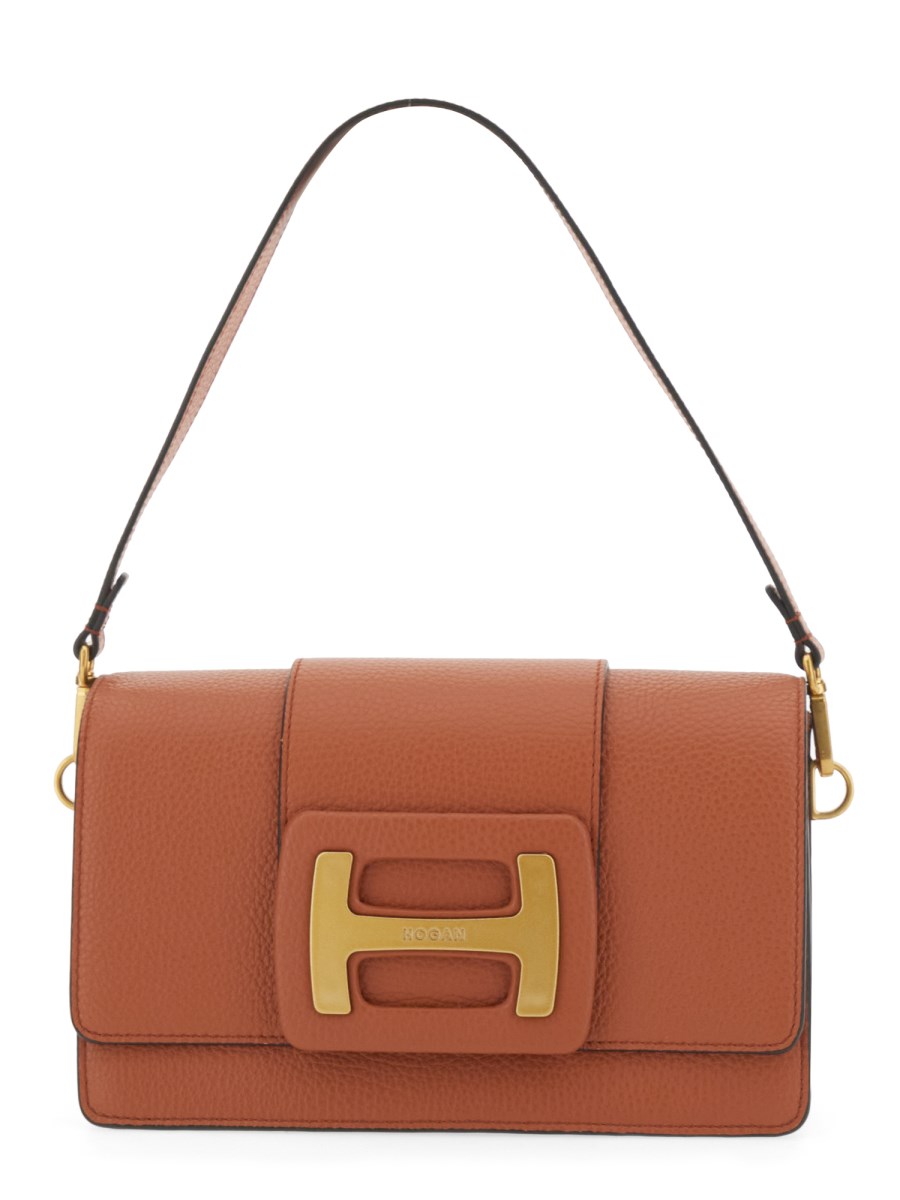 This classic leather bag from Hogan is made from durable and high-quality leather and has been hammered on both sides for a rugged look. The bag has an adjustable and removable shoulder strap with a removable single handle. The bag also has a flap closure with a snap button and an inner with one pocket and two compartments. It is ideal for carrying your everyday essentials.