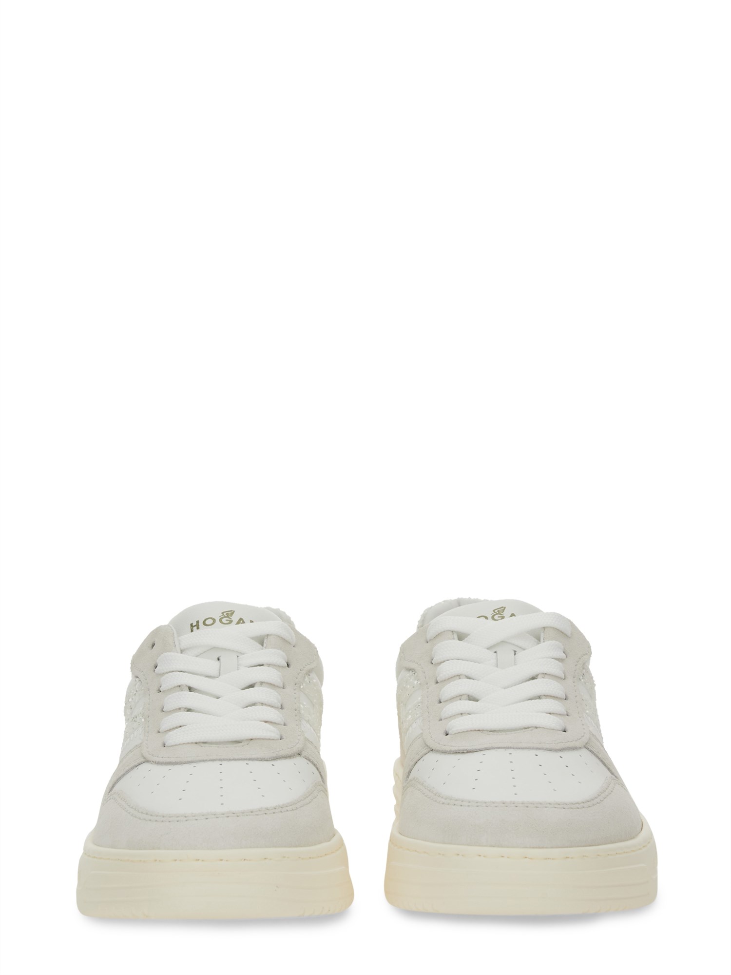 Elevate your footwear collection with the exquisite leather sneakers from Hogan, designed for those who appreciate both style and comfort. Crafted from premium materials, these sneakers offer a sleek silhouette that seamlessly blends with any outfit, making them perfect for both casual outings and sophisticated events. The cushioned insole ensures all-day comfort, while the durable rubber sole provides excellent traction and support. Experience the perfect fusion of luxury and practicality with Hogan's leather sneakers, a must-have addition to your wardrobe.