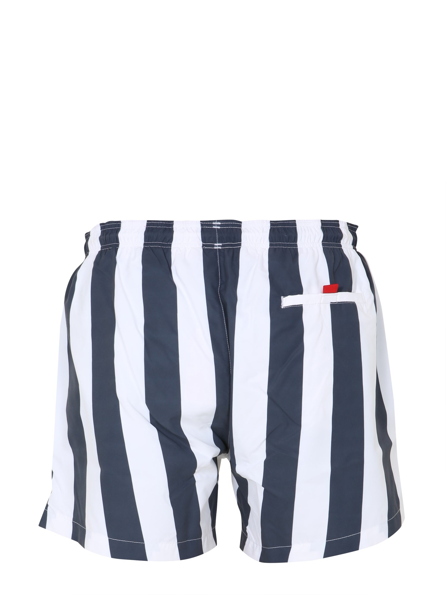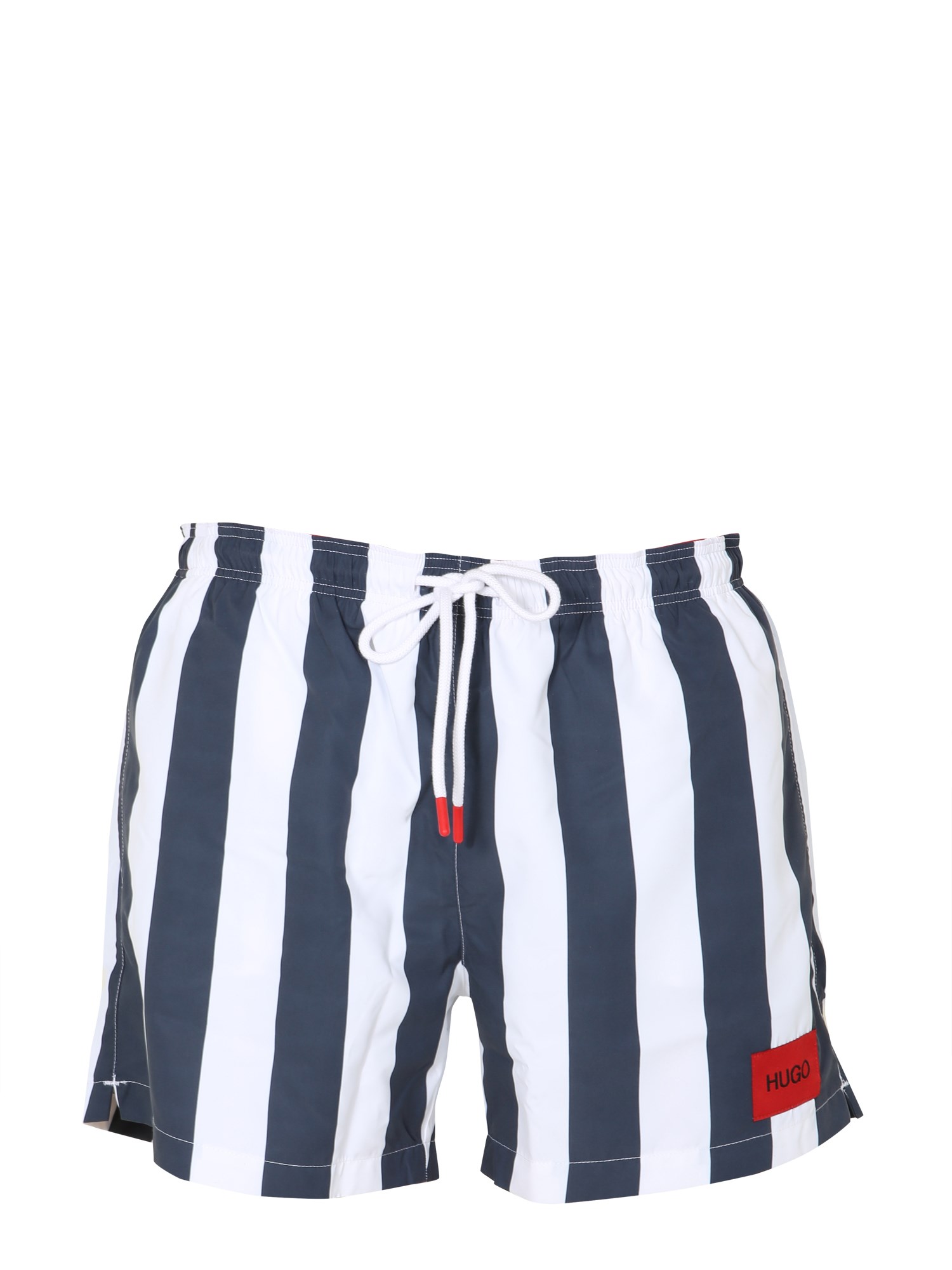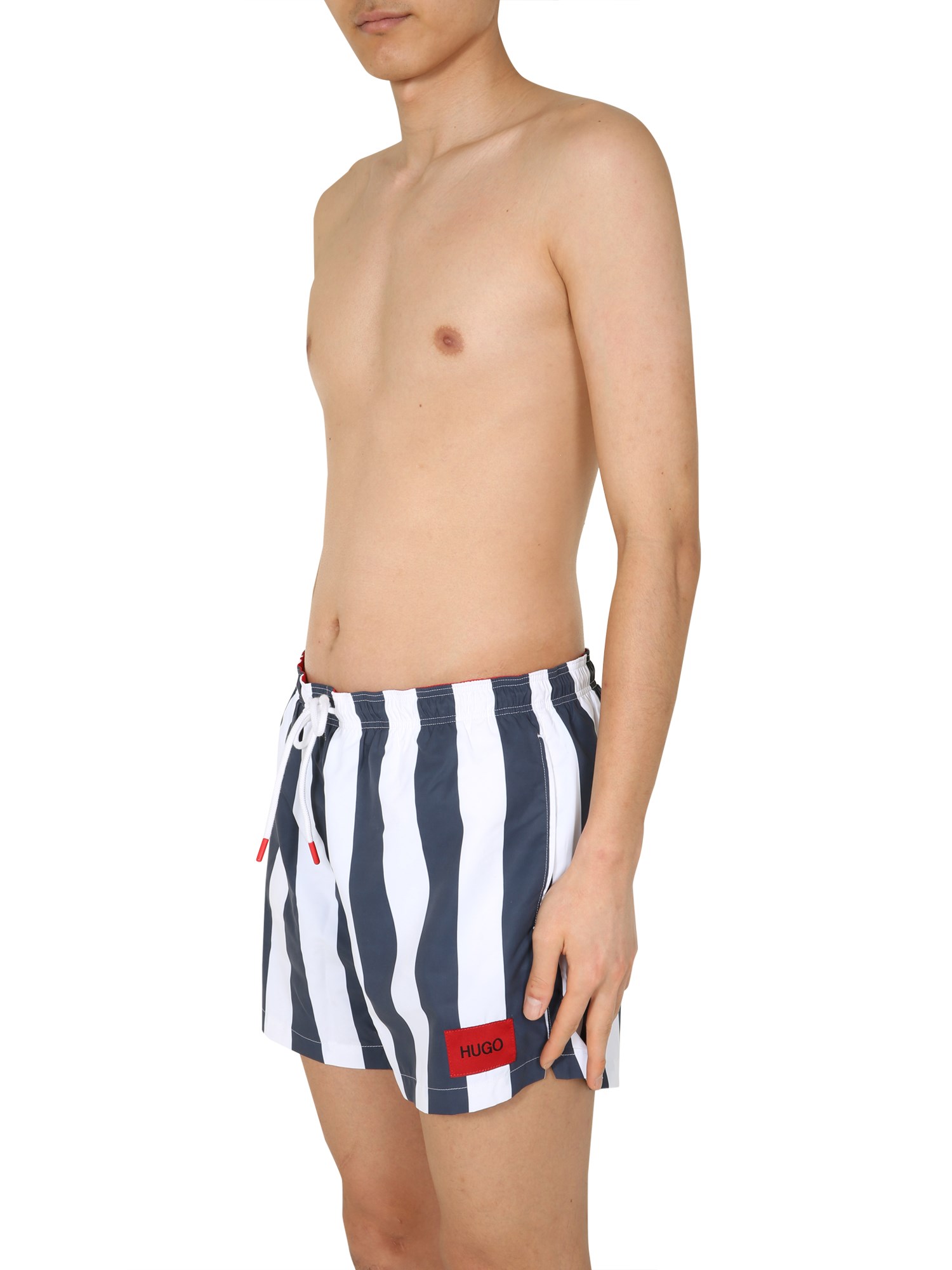 The Hugo Medium Swimsuit features an exquisite striped pattern in a vibrant colour combination. With an elastic coulisse waist, this swimsuit provides a secure fit. It has two side and one back pocket. The patch logo at the bottom looks attractive. This polyester swimsuit has an inner slip.