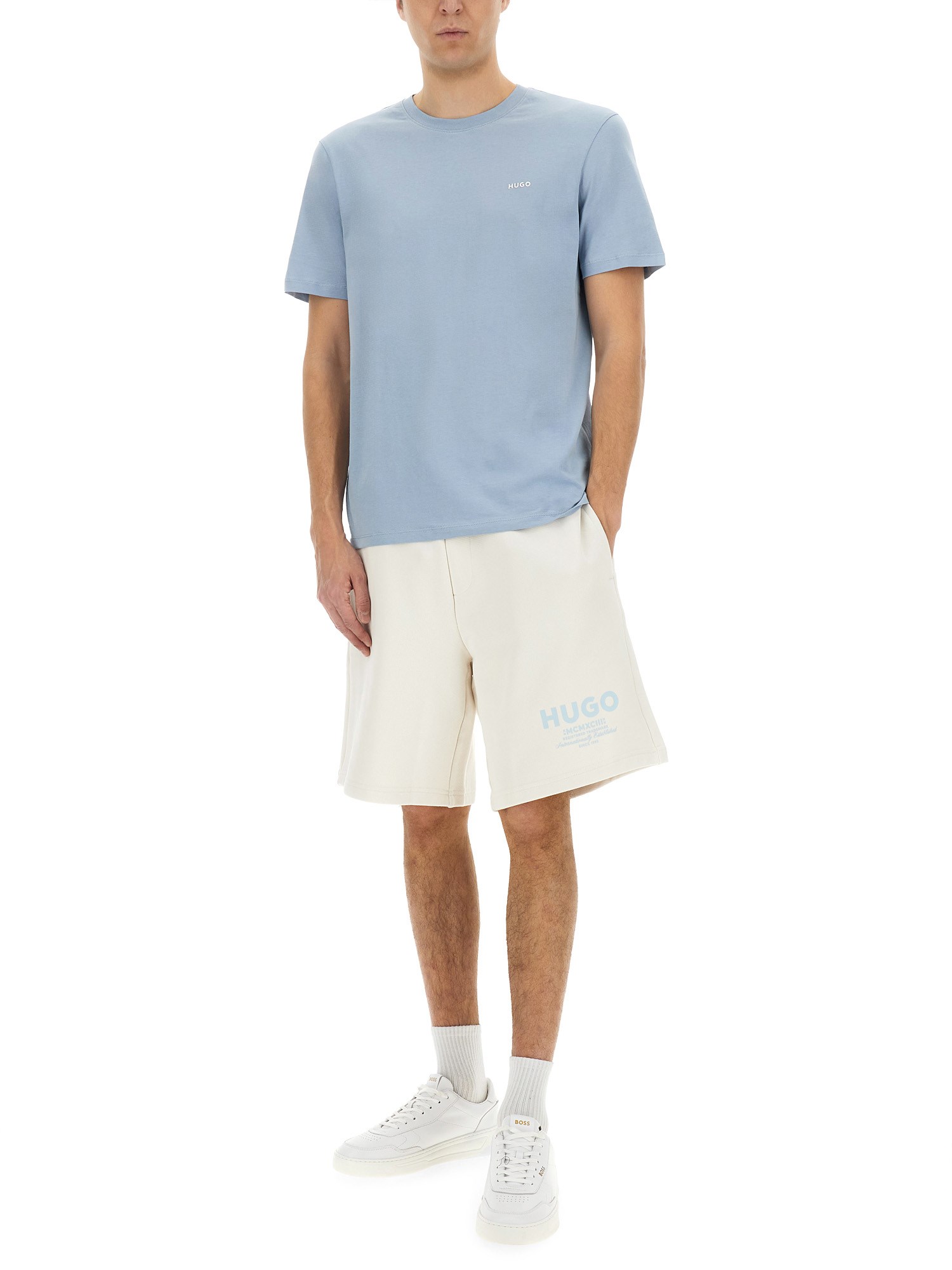Elevate your casual wardrobe with the Hugo Logo T-Shirt, a perfect blend of style and comfort. Crafted from high-quality cotton, this t-shirt features a striking logo that showcases your fashion-forward sensibility. Its classic fit ensures all-day wearability, making it an ideal choice for both relaxed outings and laid-back gatherings. Pair it effortlessly with jeans or shorts for a polished yet casual look that speaks volumes about your taste. Make a statement with this essential piece from Hugo.