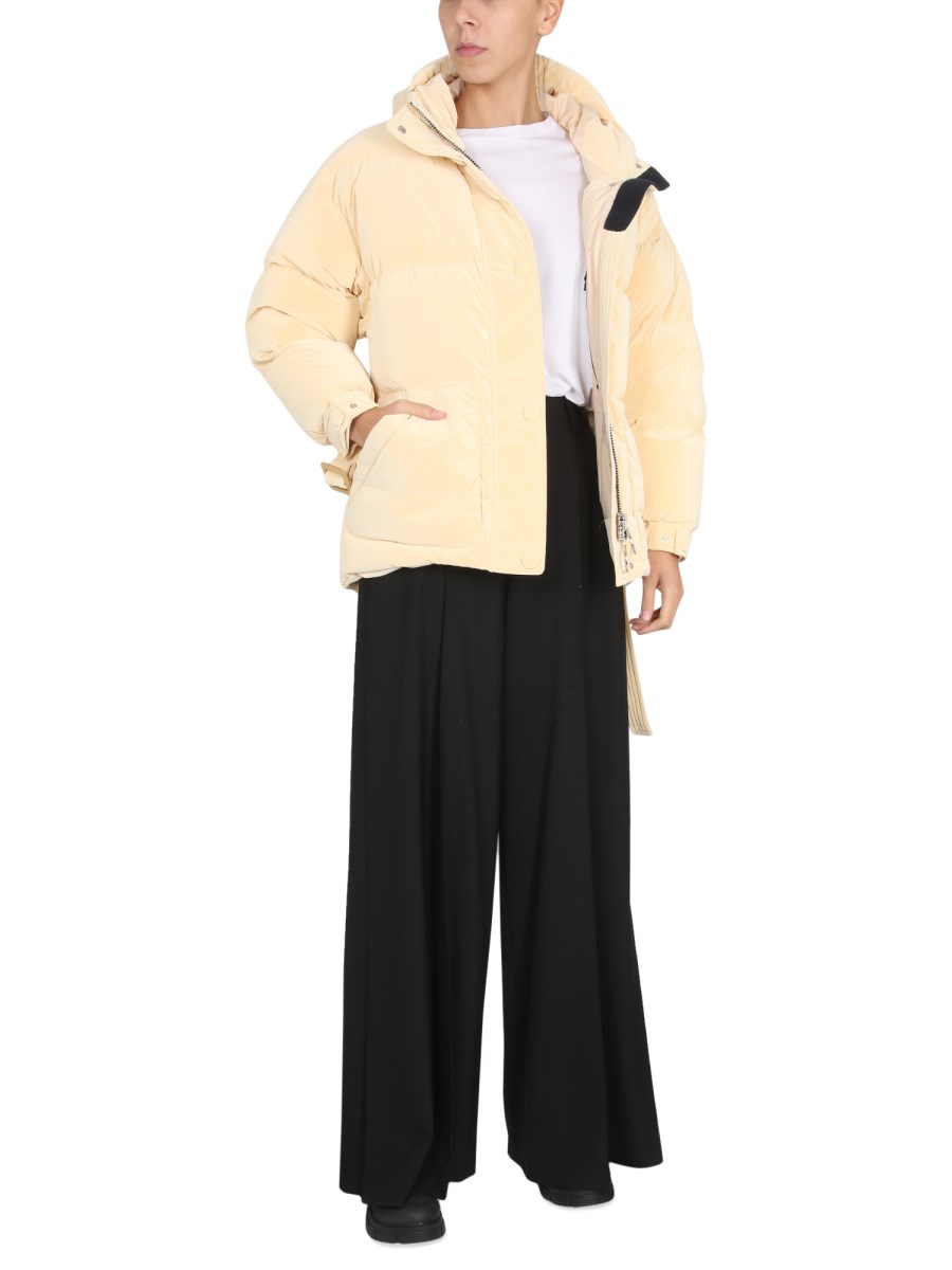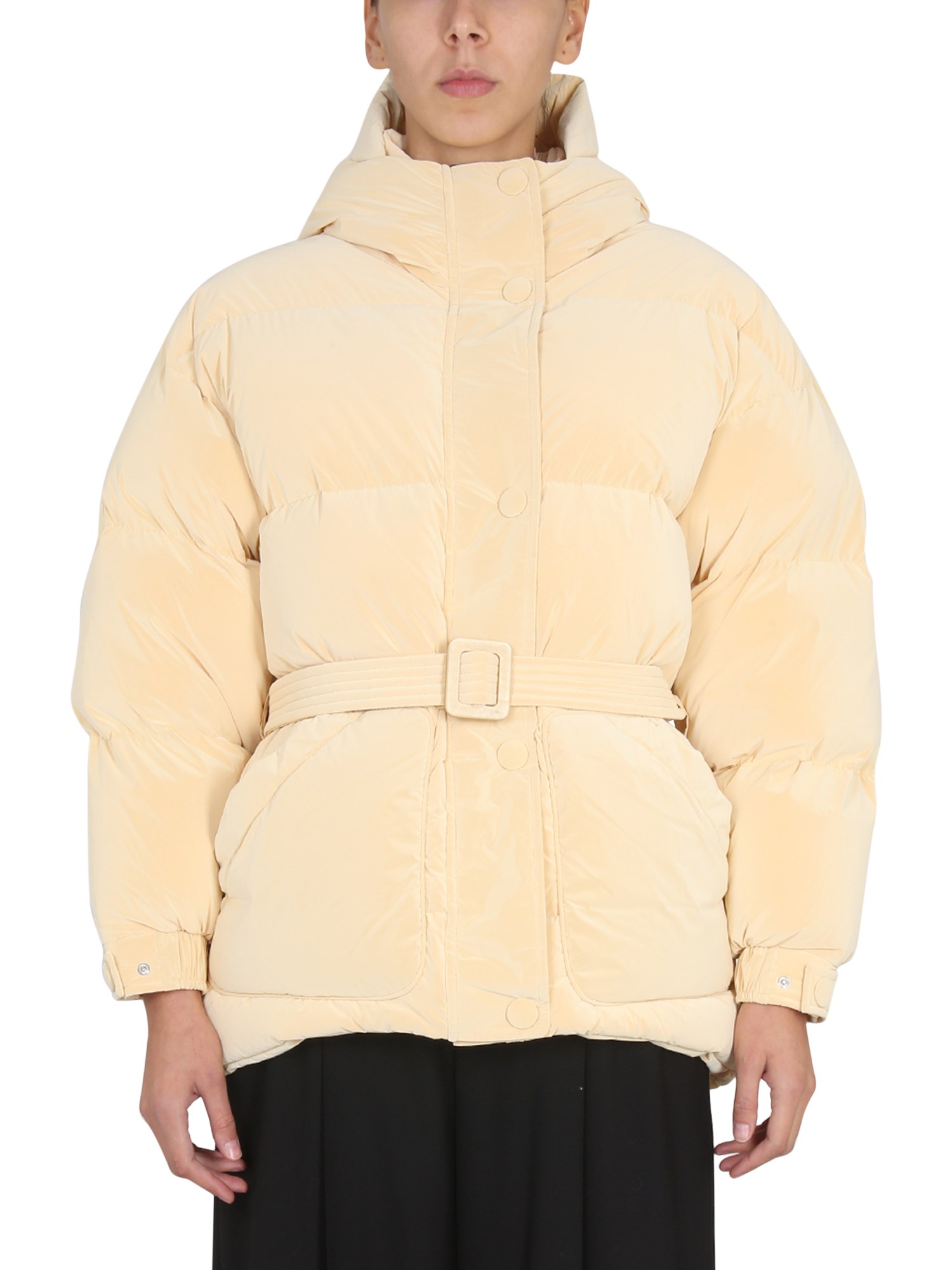 This jacket from Ienki Ienki is perfect for any occasion and will keep you warm. It has a hood, snap button closure, and Michlin down jacket. A classic jacket, with a sleek and chic silhouette. The soft michlin down insulation is warm and soft, perfect for colder weather.