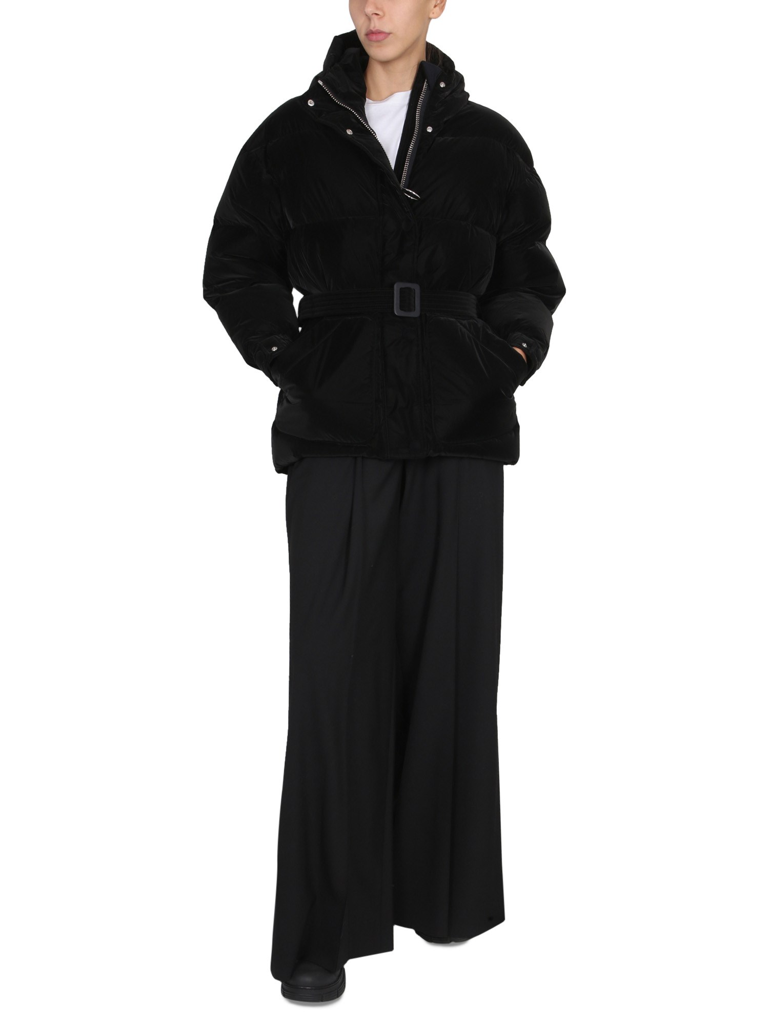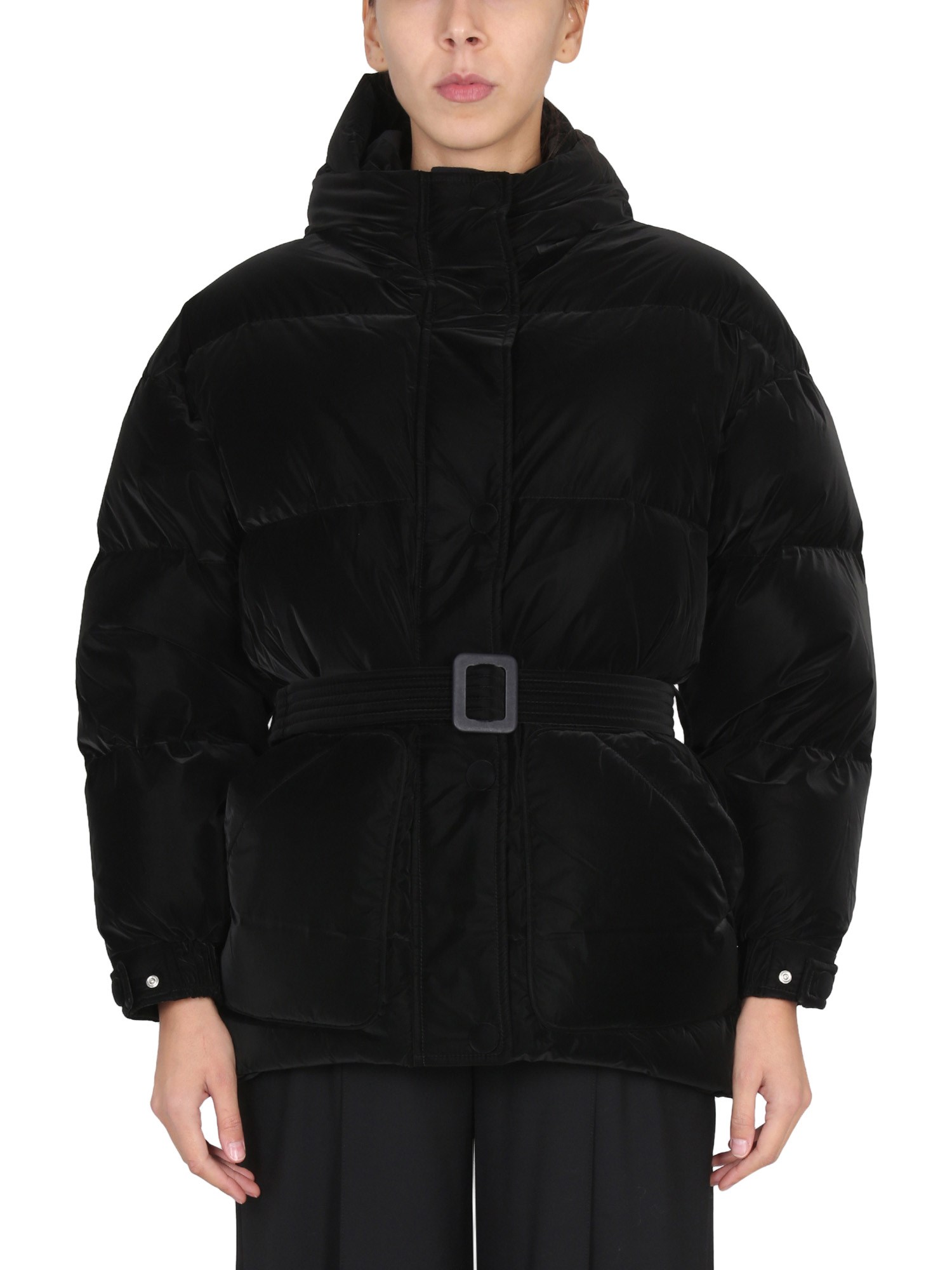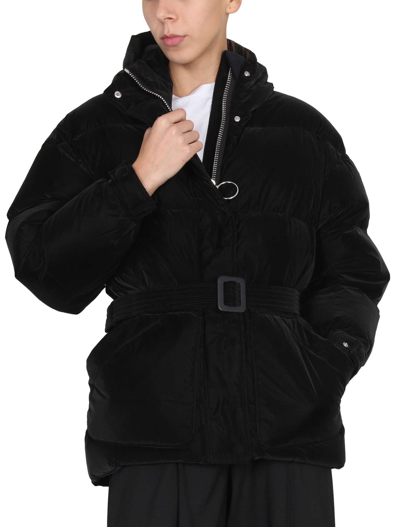 The down jacket from Ienki Ienki is a classic piece that never goes out of style. This zipper down coat is an easy to wear and comfortable piece. The coat features a hood and front zipper. It also has an adjustable and removable belt and two front pockets to keep your hands warm.