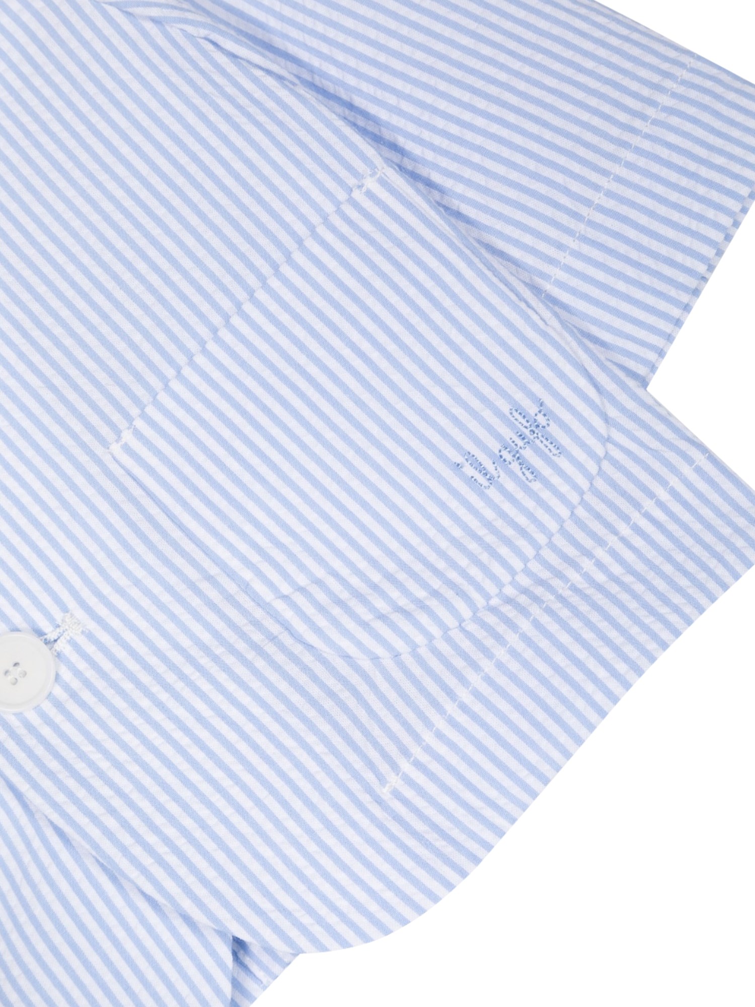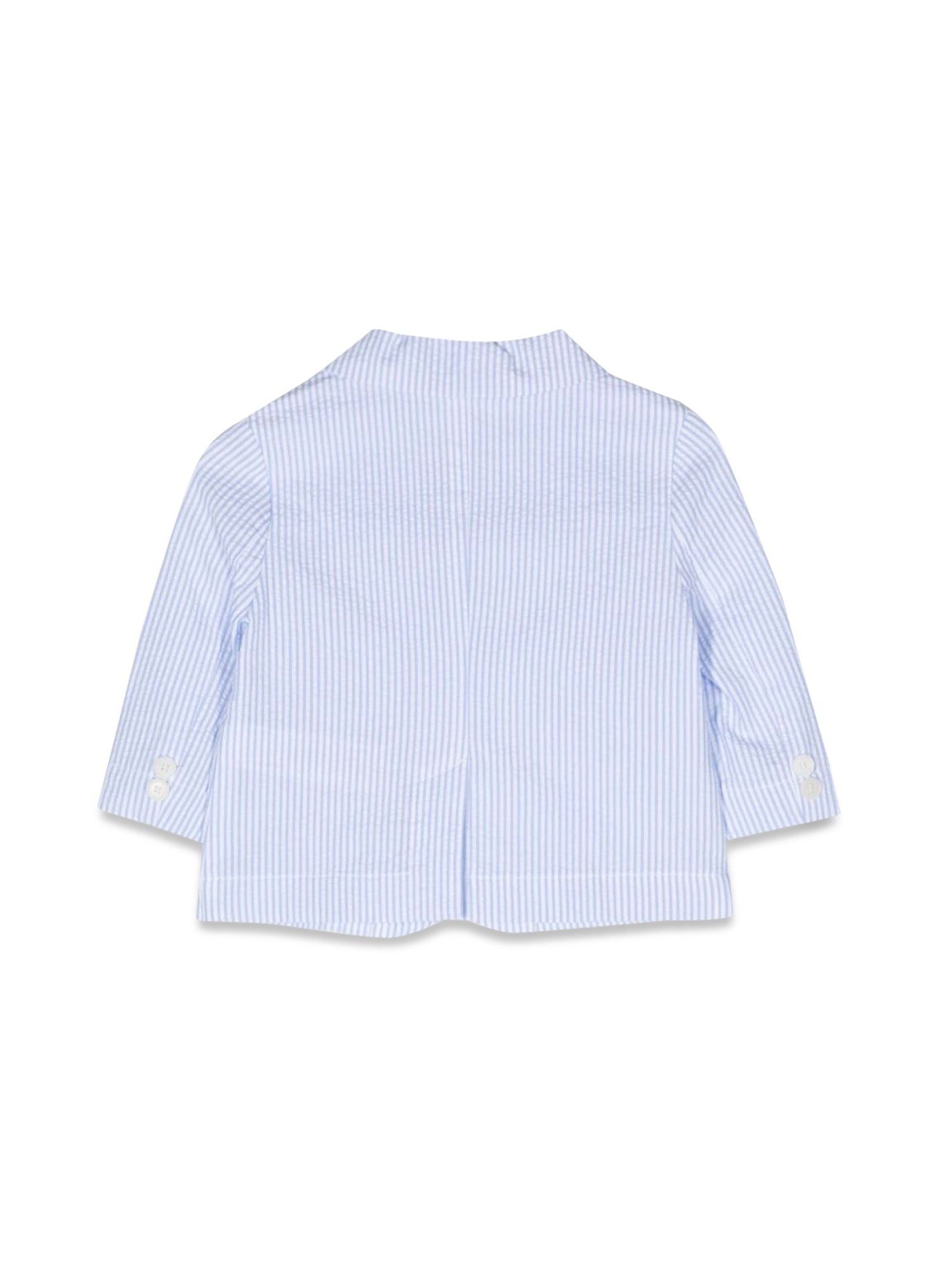 This blazer from Il Gufo is a perfect example of quality clothing. It is made of cotton, making it soft and comfortable, and has a V-neck front button closure. The sleeves are half-sleeves and the jacket has a light blue colour. Its classic style and casual look is perfect for everyday wear.