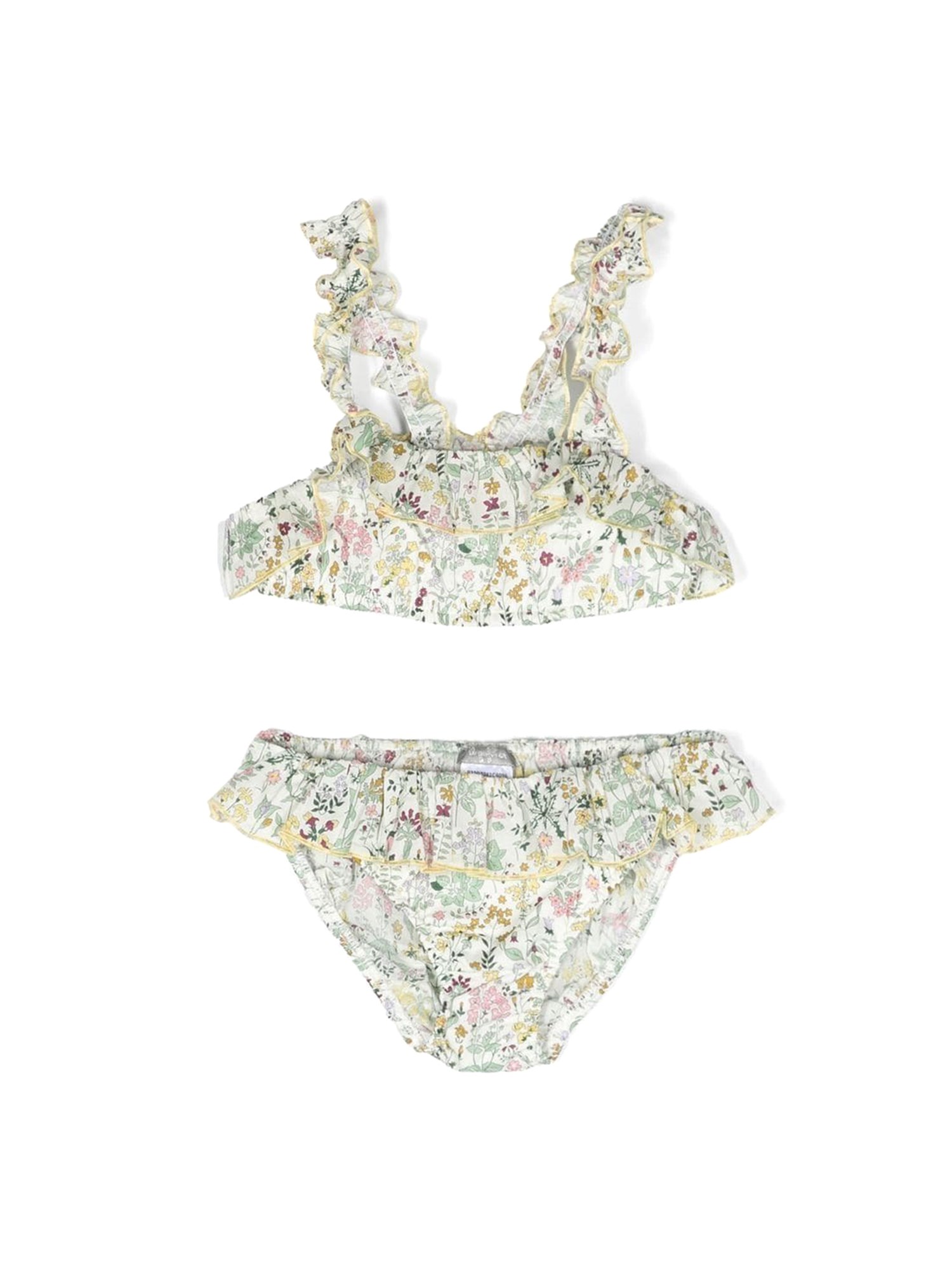 Swimsuit from Il Gufo that is light, quick-drying, and provides a flattering fit. The two-piece swimsuit is a bright, eye-catching piece that will make a splash in the pool or on the beach. With an all over print and lots of colourful embellishments, it is perfect for sunny days.