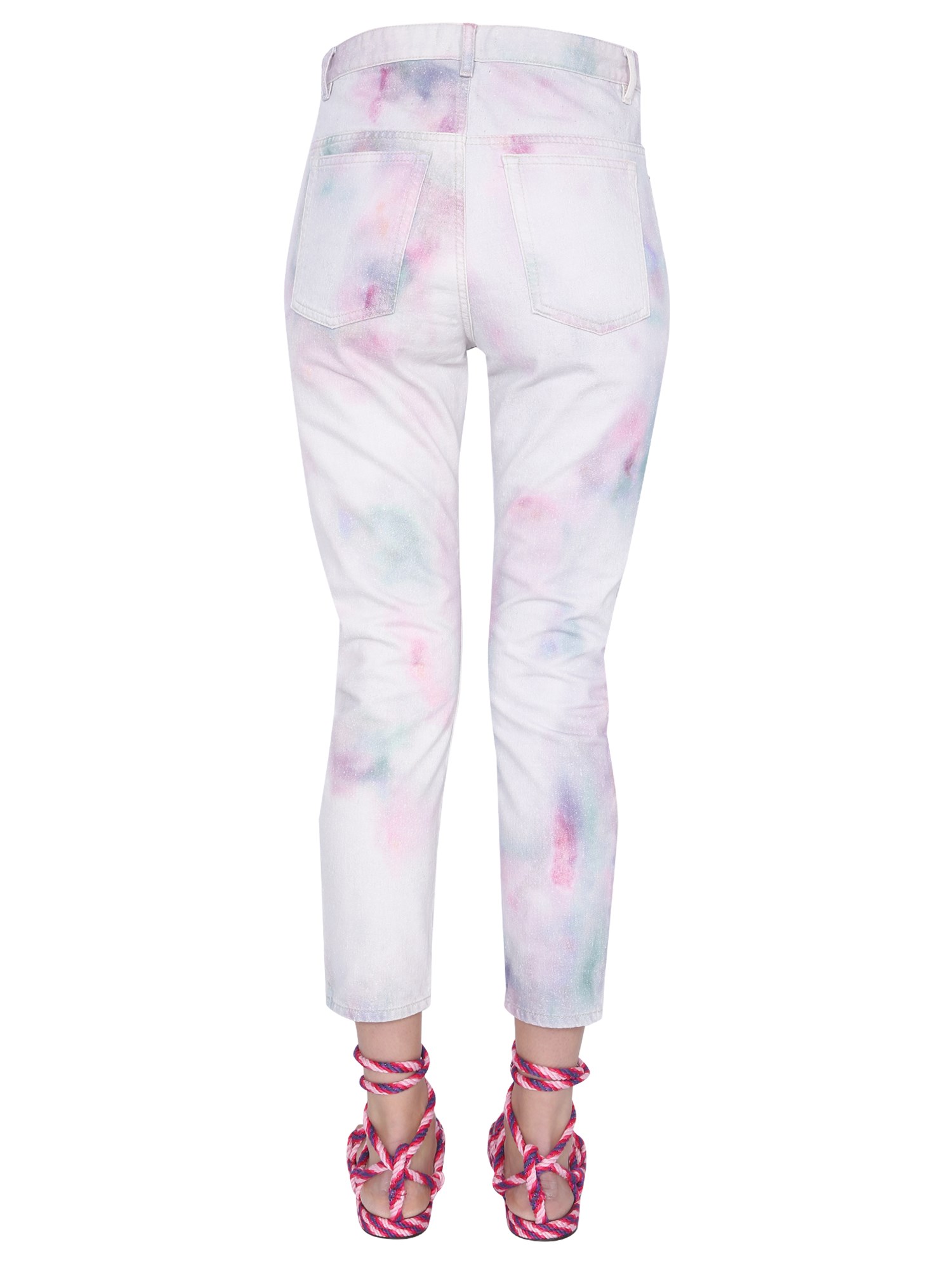 Elevate your denim styles with the "Lanea" cotton jeans from the house of Isabel Marant Étoile. These cotton-blend jeans have zip and button closure. It has a 16 cm bottom and two front & two back pockets. Perfect for showcasing your favourite shoes the slim-fit jeans have a tie-dye print.