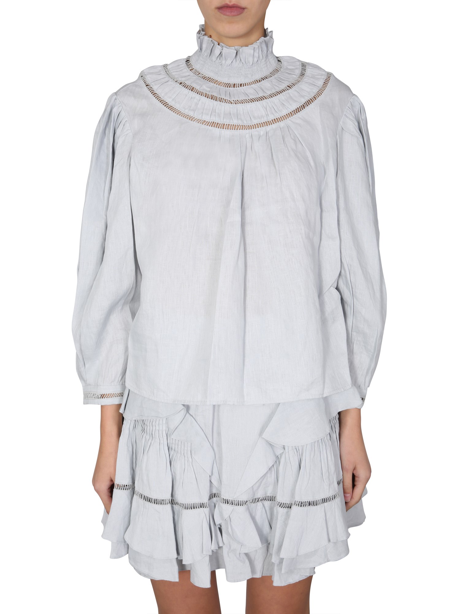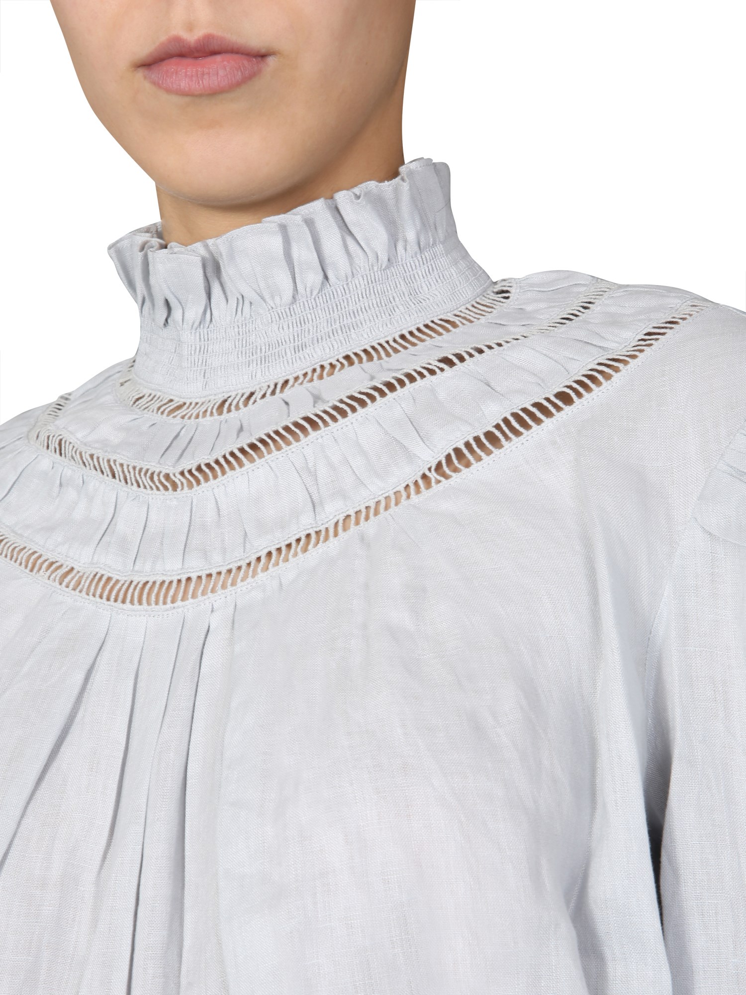 The "Amalia" shirt from Isabel Marant Etoile is a dress that takes you from ‘office’ to ‘on the party’ just in minutes. This dress has a unique but attractive front panel which loaded with ruch and frill details. It is made of linen fabric which is known to feel on the skin.