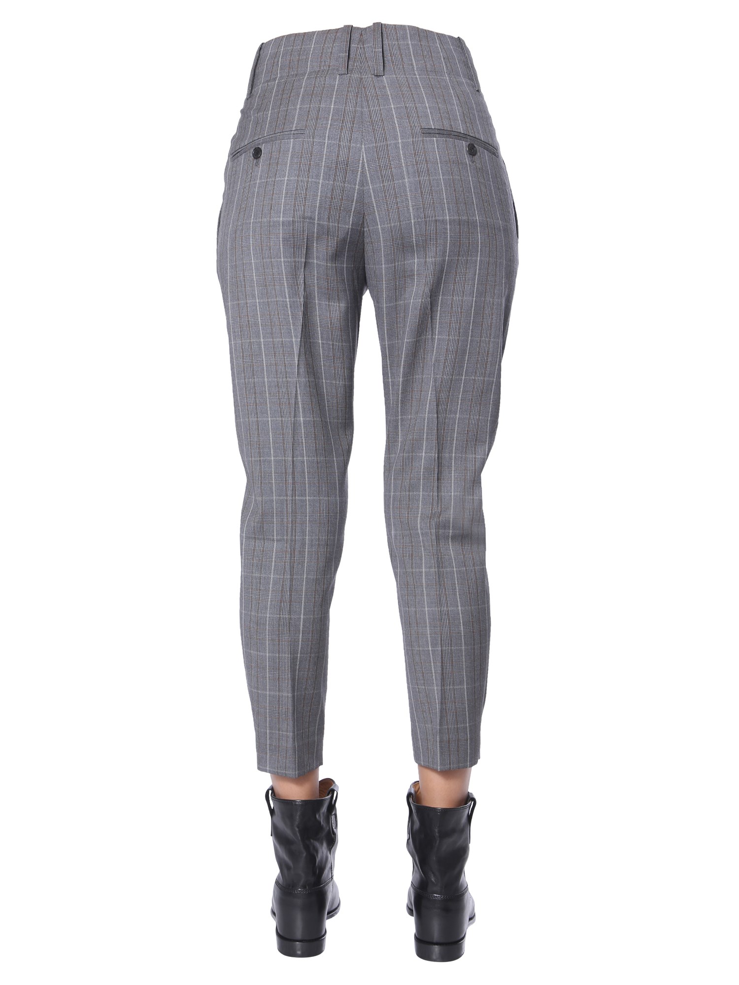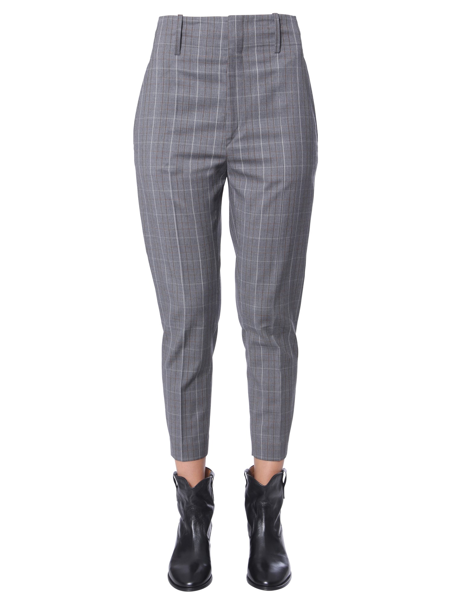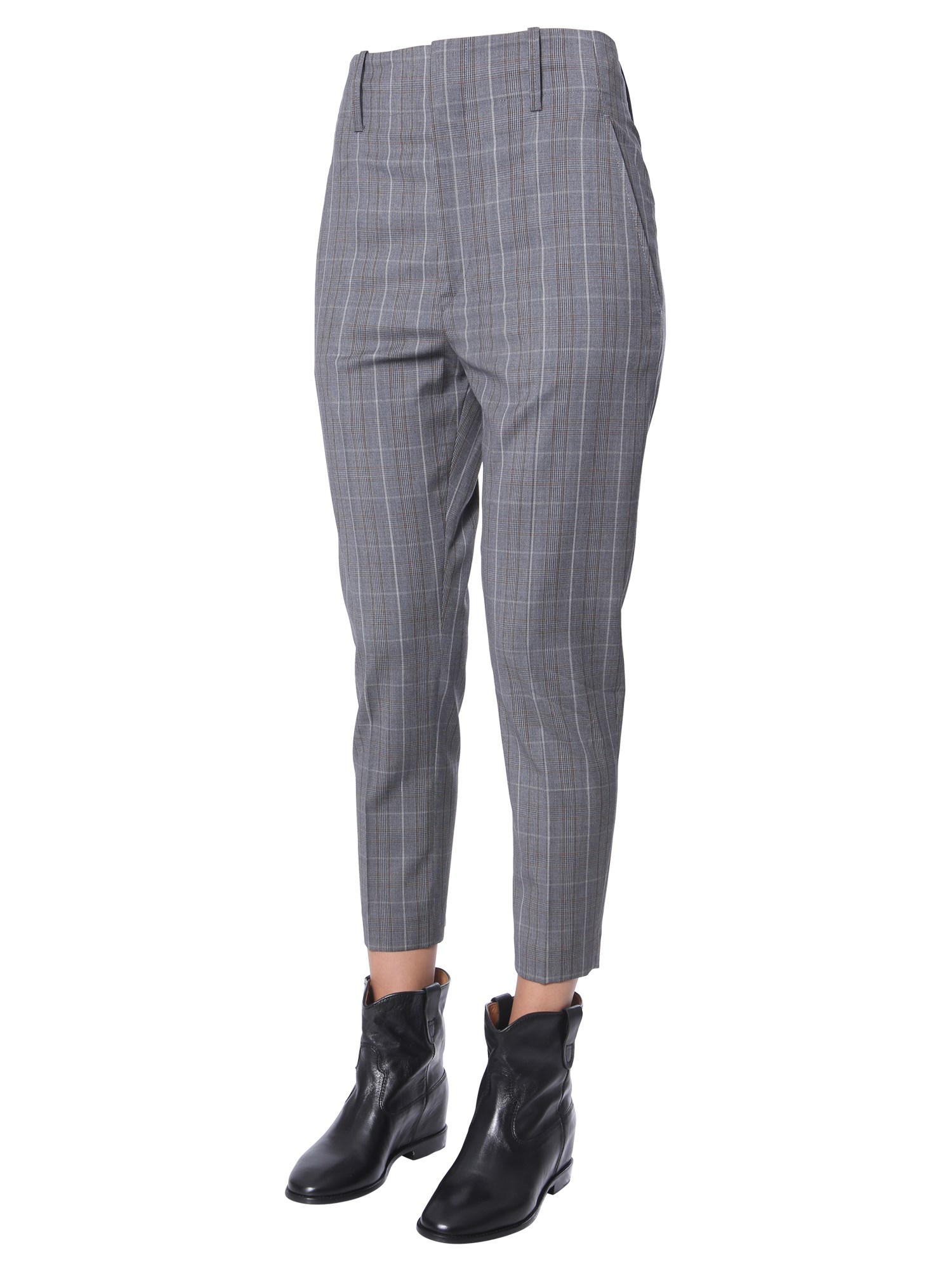 Bring the old world charm back in style with these "noah" pants from Isabel MarantEtoile. The pants are made of 100% virgin wool that feels soft on the skin. They have an all over plaid pattern that makes them a perfect classic addition to your closet. These slim fit pants have a front zip and hook closure and four pockets for functionality.