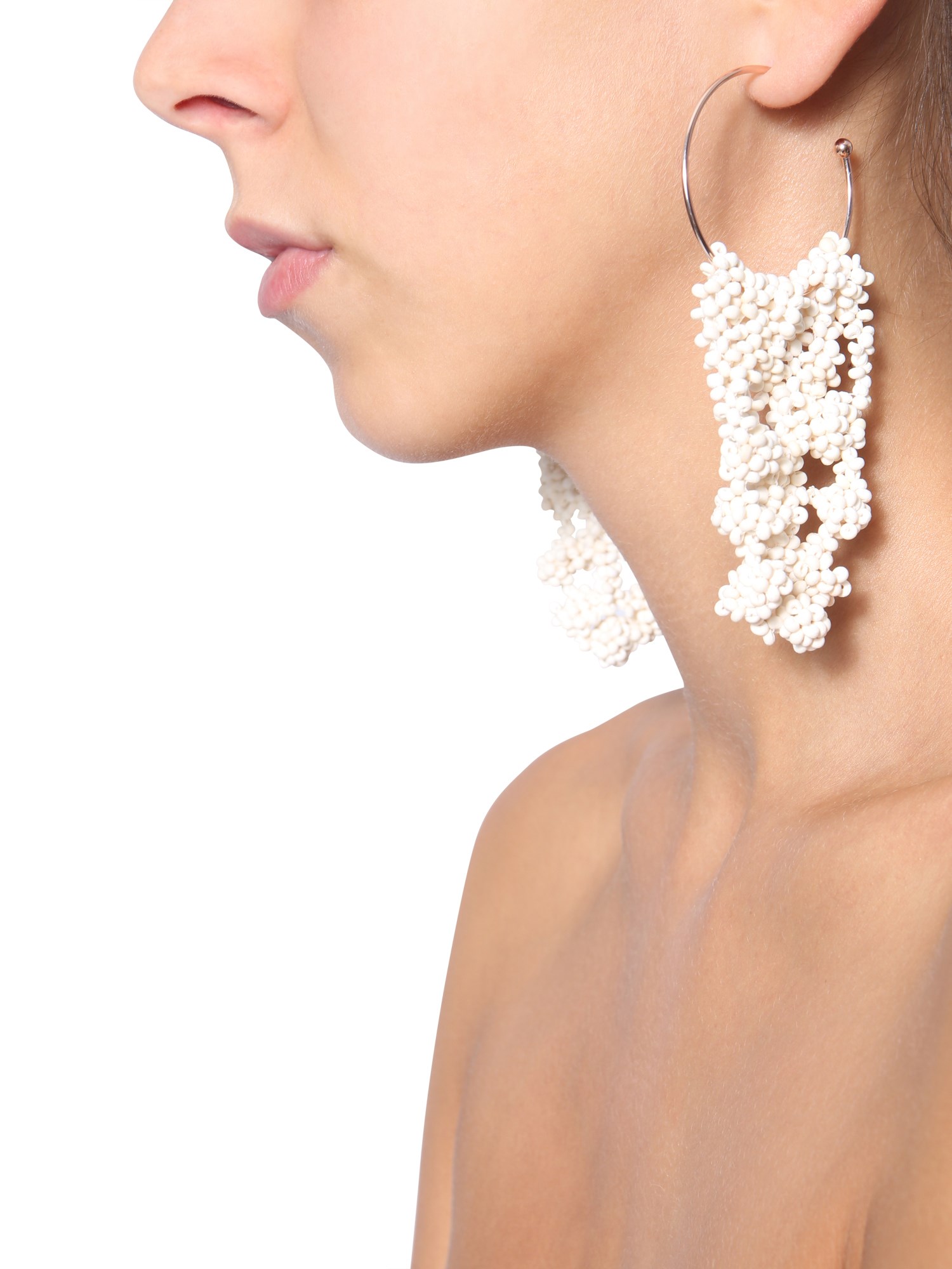 Pitch a unique look by wearing these Isabel Marant drop earrings with any of your favourite one piece dresses. They have a traditional look with J-hoops and beaded adornment hanging. The hoops are secured with pushback butterfly clasps for easy and comfortable wear. The appeal of these earrings also makes them ideal for gifting purposes.