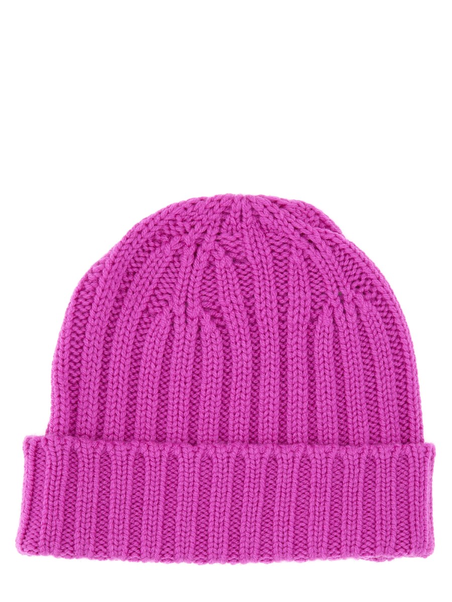 A beanie hat from Aspesi that is made from virgin wool and has a soft, ribbed knit that is a fucsia colour. This knitting beanie hat is made of pure virgin wool. It's ribbed for extra warmth and is the perfect hat to wear with a jacket or coat during cold weather. This cosy beanie is a must-have for anyone's winter wardrobe.