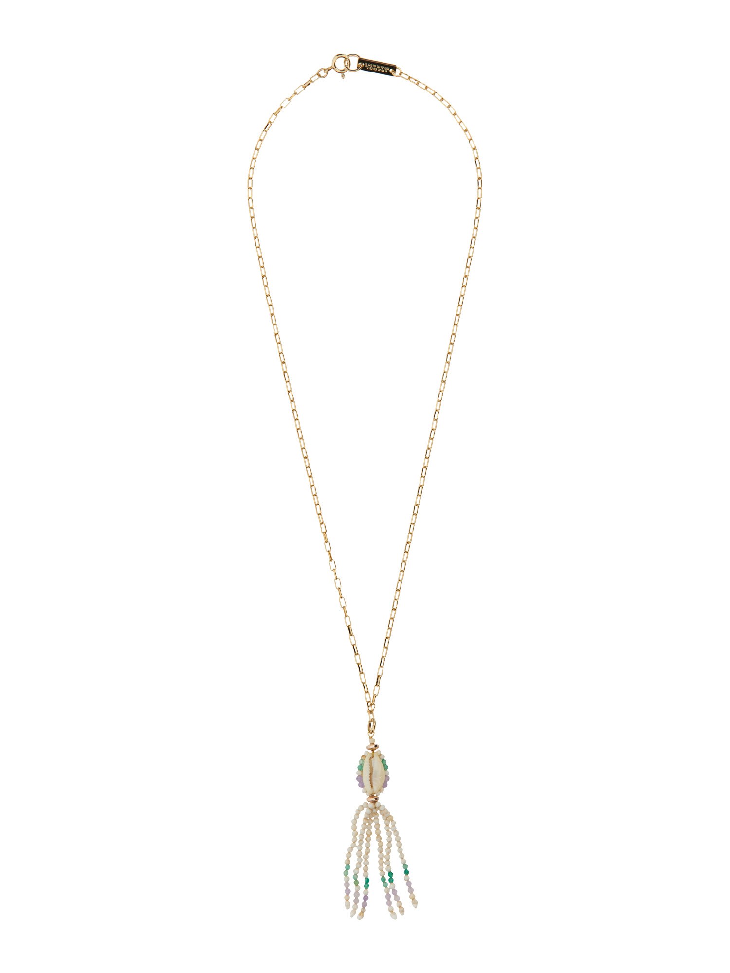 This beautiful, unique necklace from Isabel Marant will make any outfit pop! The lobster clasp and shell charm are the perfect addition to any style! It is a beautiful addition to any jewellery collection. This sterling silver necklace has a lobster clasp closure and is embellished with hand-polished shell charms.