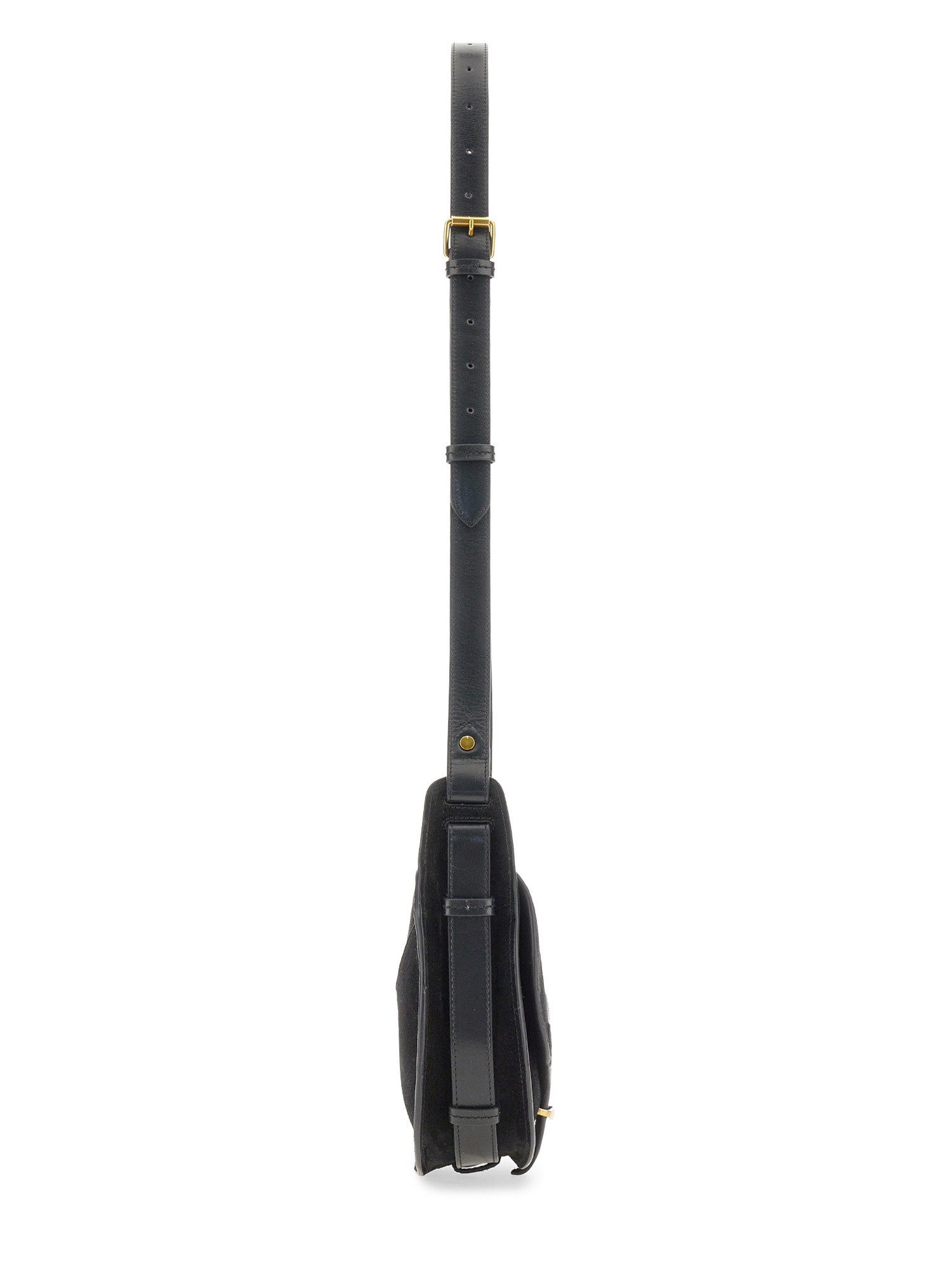 - ADJUSTABLE SHOULDER STRAP- FLAP WITH MAGNETIC CLOSURE- GOLD-FINISH METAL BUCKLE- DIMENSIONS: H 19 CM X W 22 CM X D 7 CM- 100% CALFSKIN LEATHER
