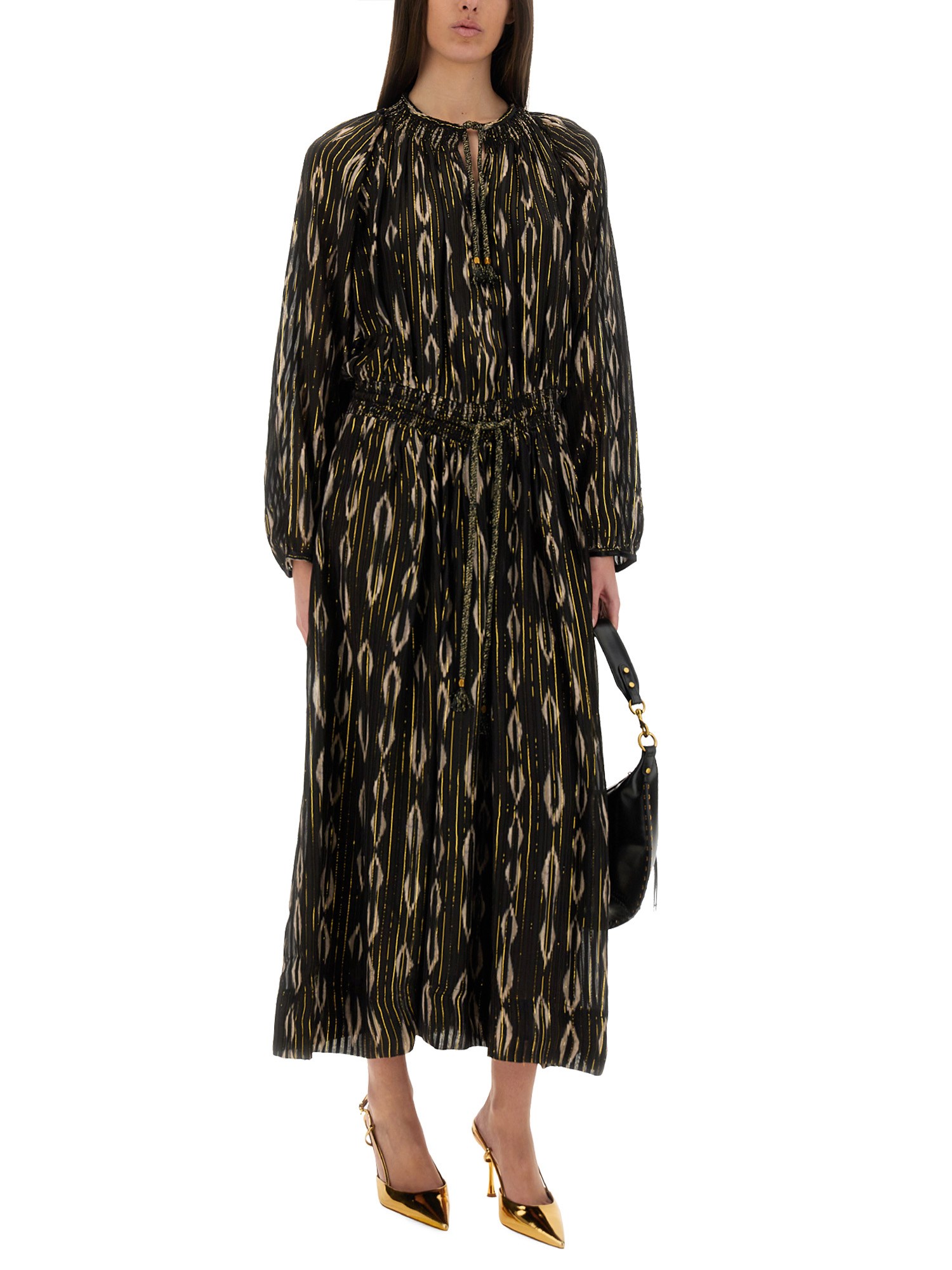 Elevate your wardrobe with the "SANA" Long Dress from Isabel Marant, a stunning piece that effortlessly combines elegance and contemporary style. Crafted from high-quality materials, this dress features a flattering silhouette that drapes beautifully, making it perfect for both casual outings and special occasions. The intricate detailing and unique design elements reflect Isabel Marant's signature aesthetic, ensuring you stand out in any setting. Pair it with your favourite accessories for a chic, sophisticated look that exudes confidence and grace.