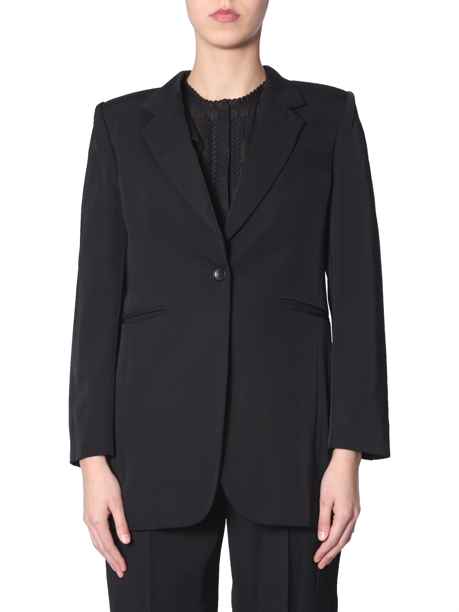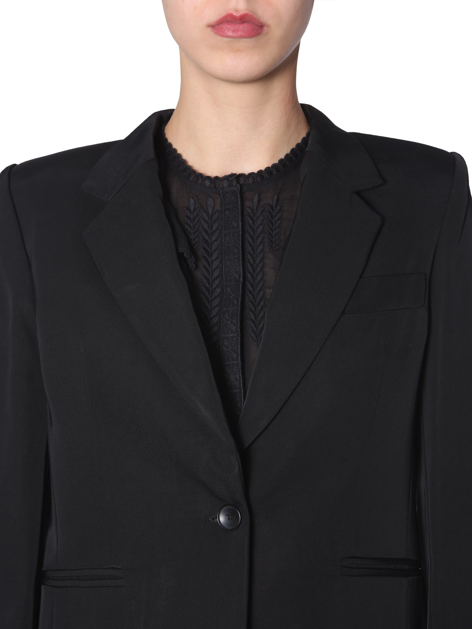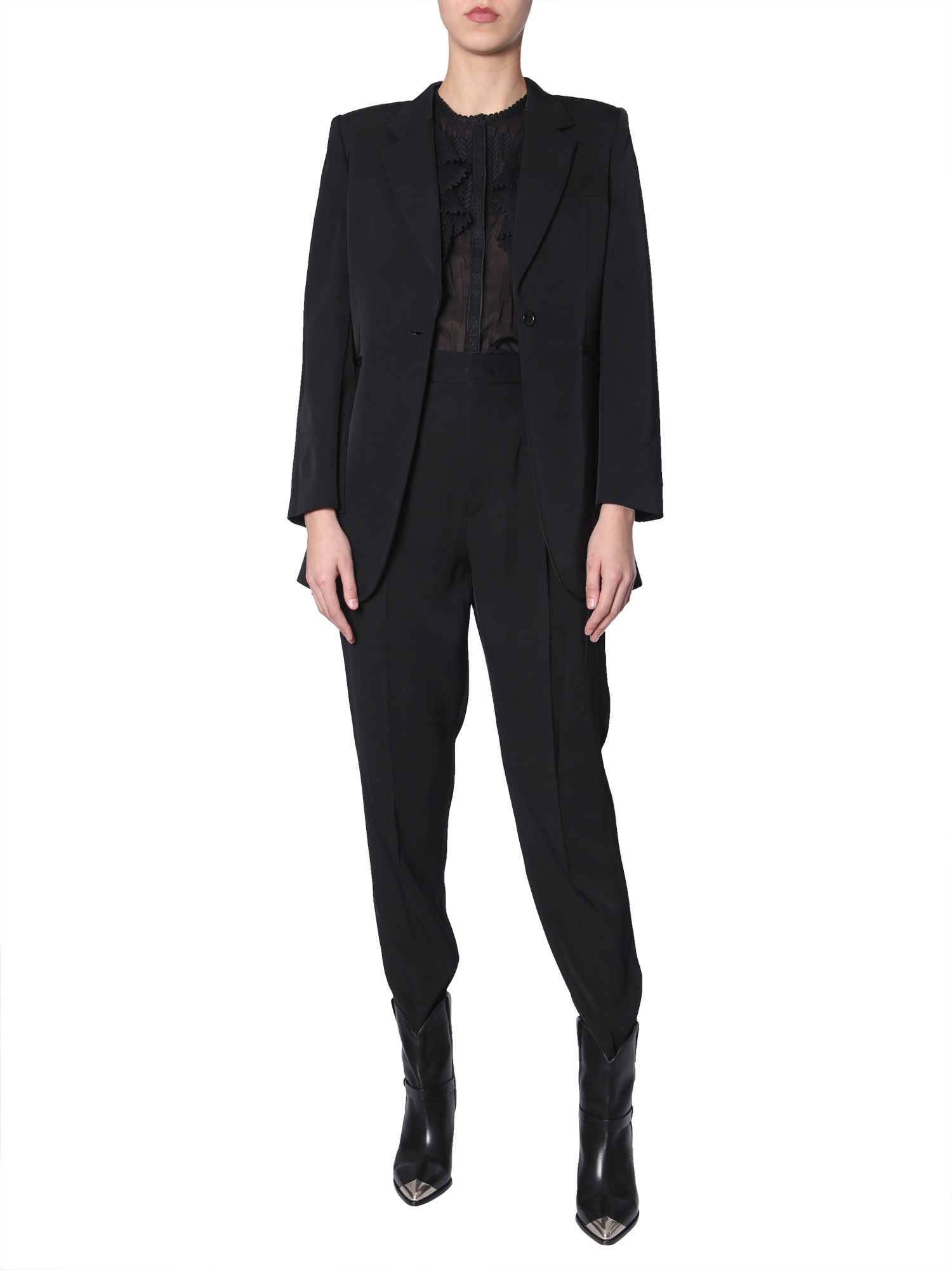 Exhibit a confident look with this Purdie jacket from Isabel Marant. The slim lapels and single button on the front give it a stylish look. The pure viscose fabric feels and looks great when worn. There is a single slit in the back which gives this jacket a supreme look. Pair it with matching pants and look stunning.