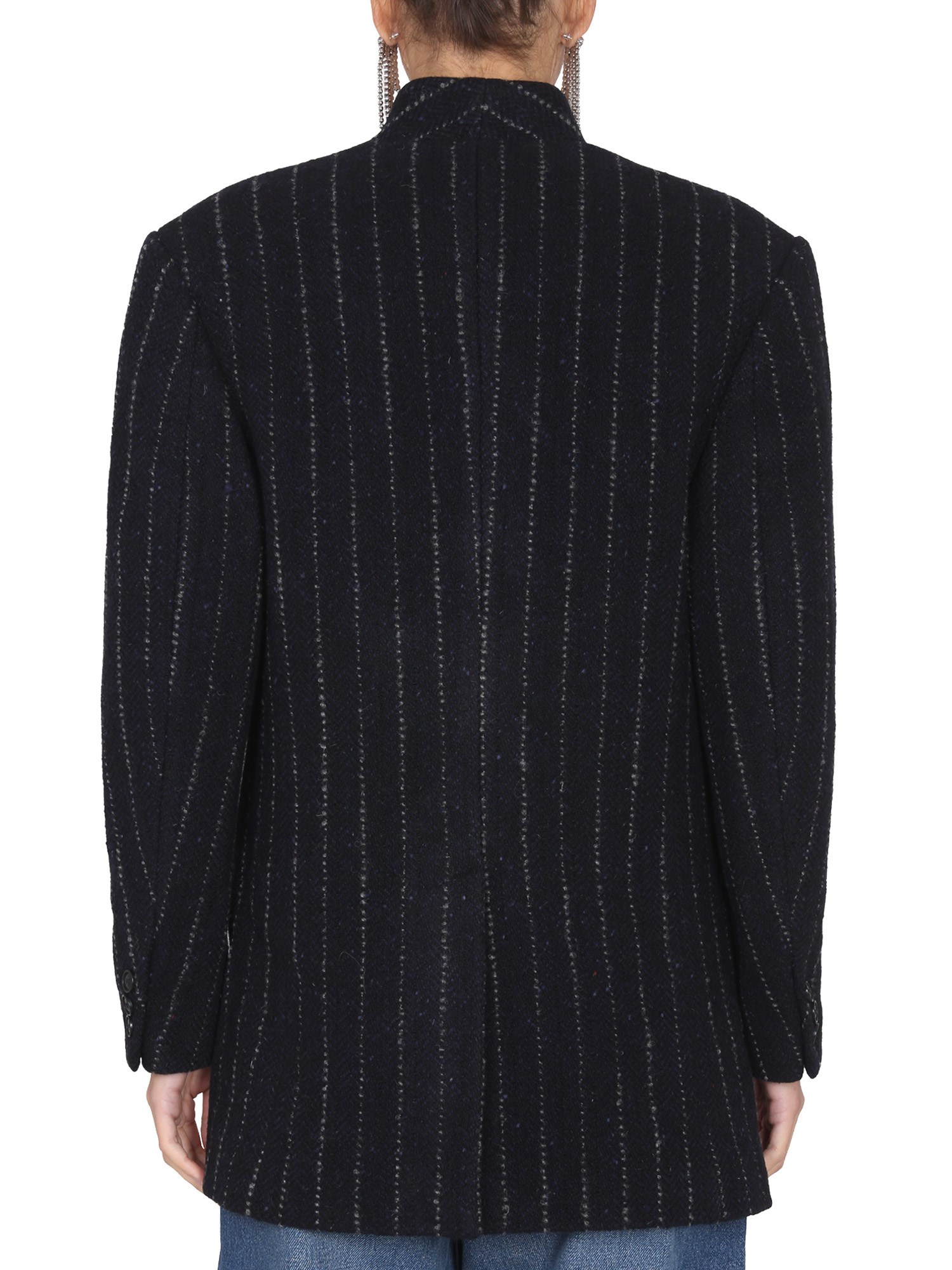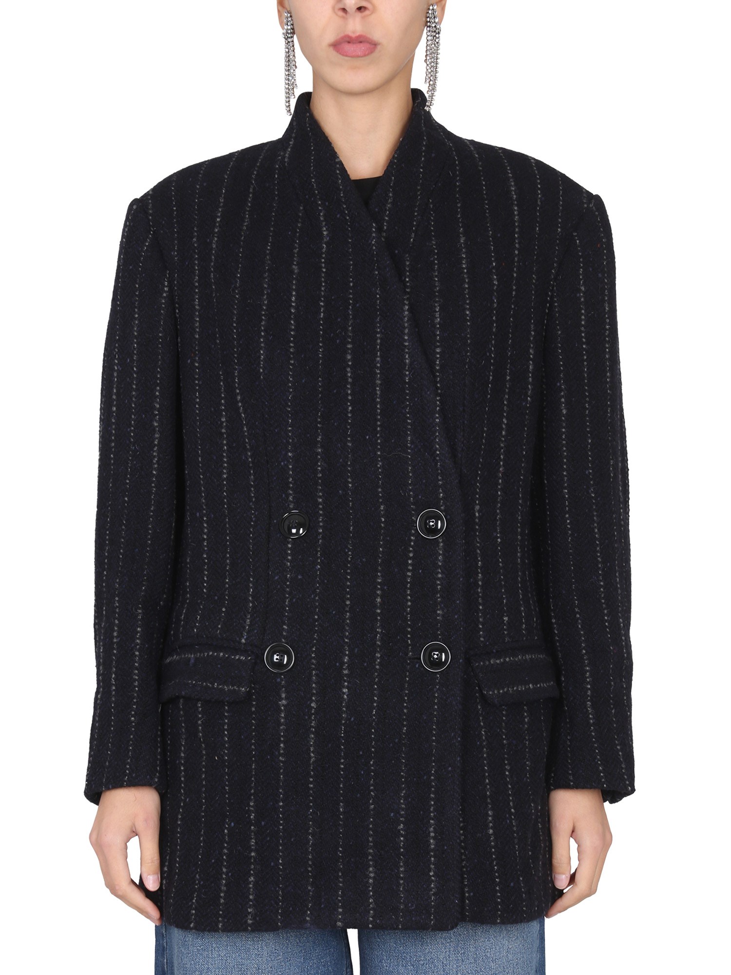 The “Lila” double-breasted wool coat from the house of Isabel Marant is a long-time favourite for chilly nights. The coat features a collar neckline, long sleeves with buttoned cuffs, and front button closure. The regular fit coat has two welt pockets with side flaps to keep your essentials.