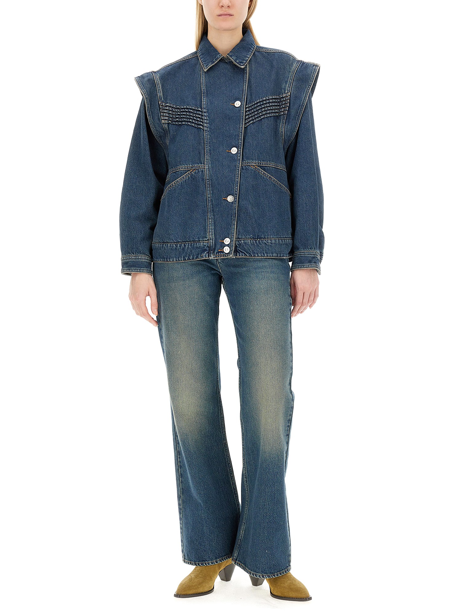 The "HARMON" jacket from Isabel Marant exemplifies contemporary elegance with its tailored silhouette and premium fabric. Designed for versatility, this jacket features a chic, structured fit that flatters various body types, making it an essential addition to any wardrobe. Its sophisticated detailing and refined colour palette ensure it can be effortlessly styled for both casual and formal occasions, embodying the essence of modern French fashion.