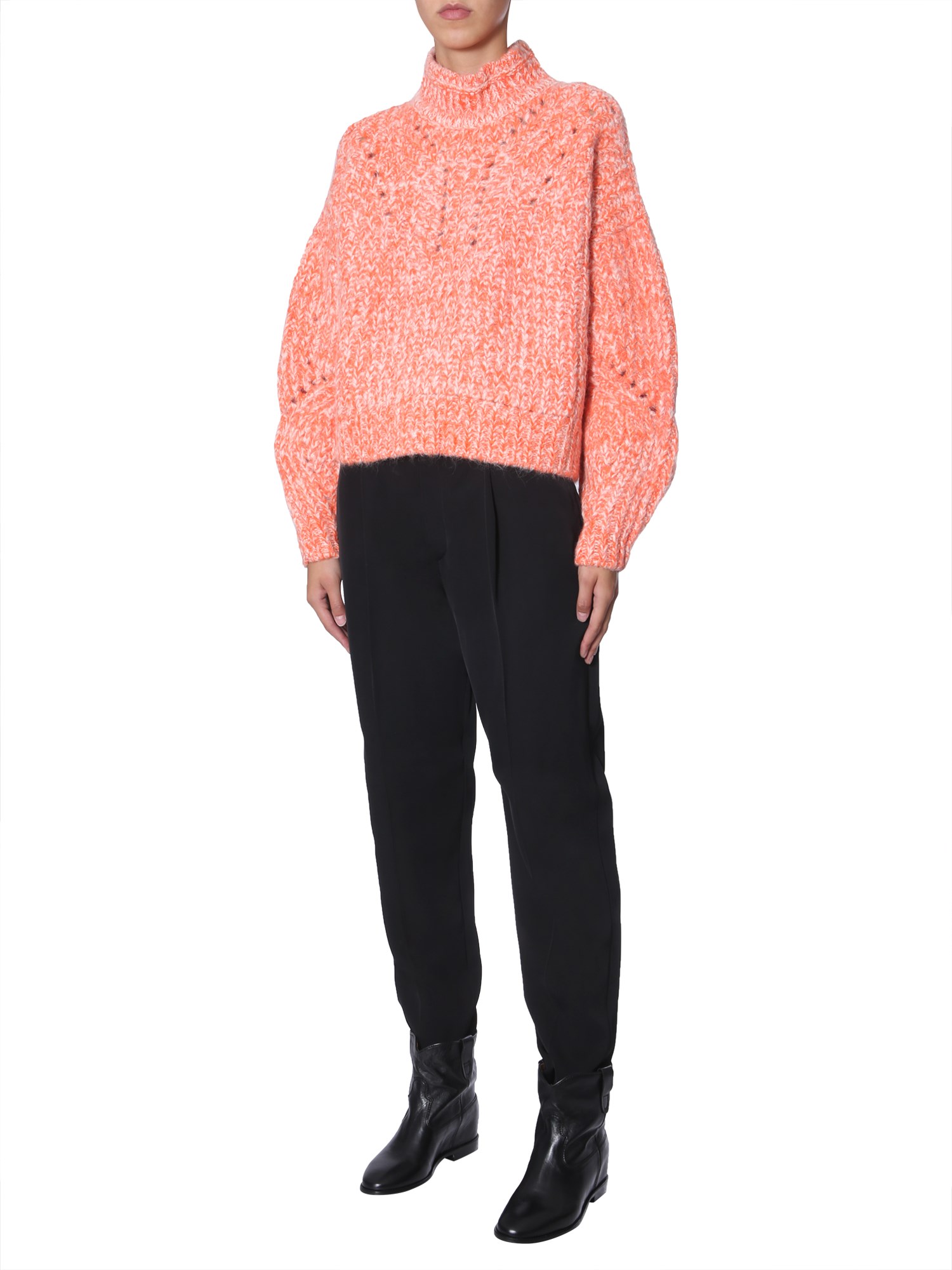 Upgrade your winter wardrobe with this jarren sweater from Isabel Marant. Knitted from a mix of 62% baby alpaca, 16% acrylic, 12% polyamide and 10% wool, the sweater is extremely soft and plush. The dual-tone exterior and polo neck looks stylish and fashionable. Style it with black jeans and leather boots for a complete casual look.