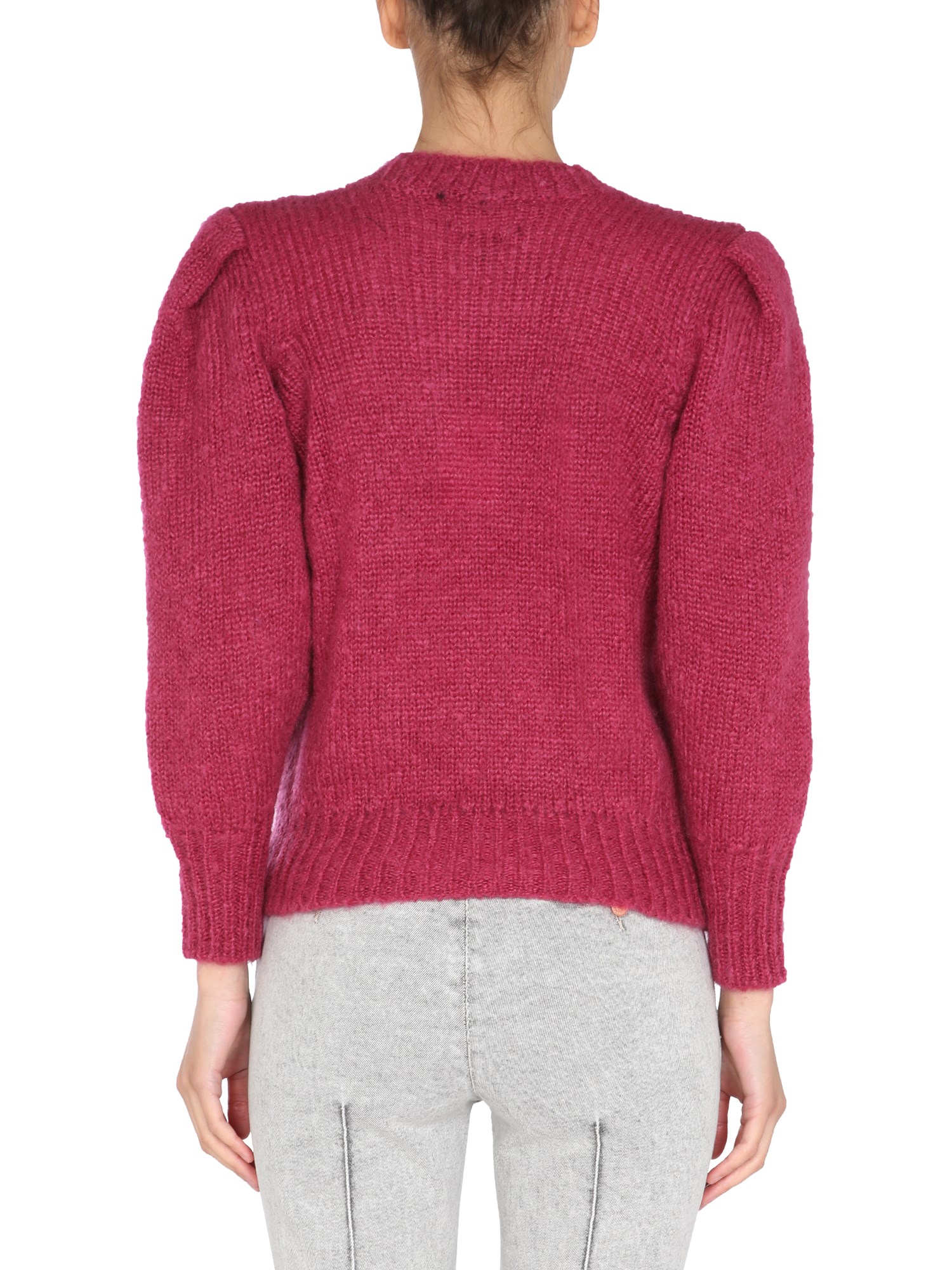 - CREW NECK- PUFF SLEEVES- RIBBED NECK, CUFFS AND BOTTOM- 81% MOHAIR, 11% POLYAMIDE, 8% MERINO WOOL- MADE IN ITALY- MODEL IS 180 CM TALL AND WEARS SIZE 36 FR