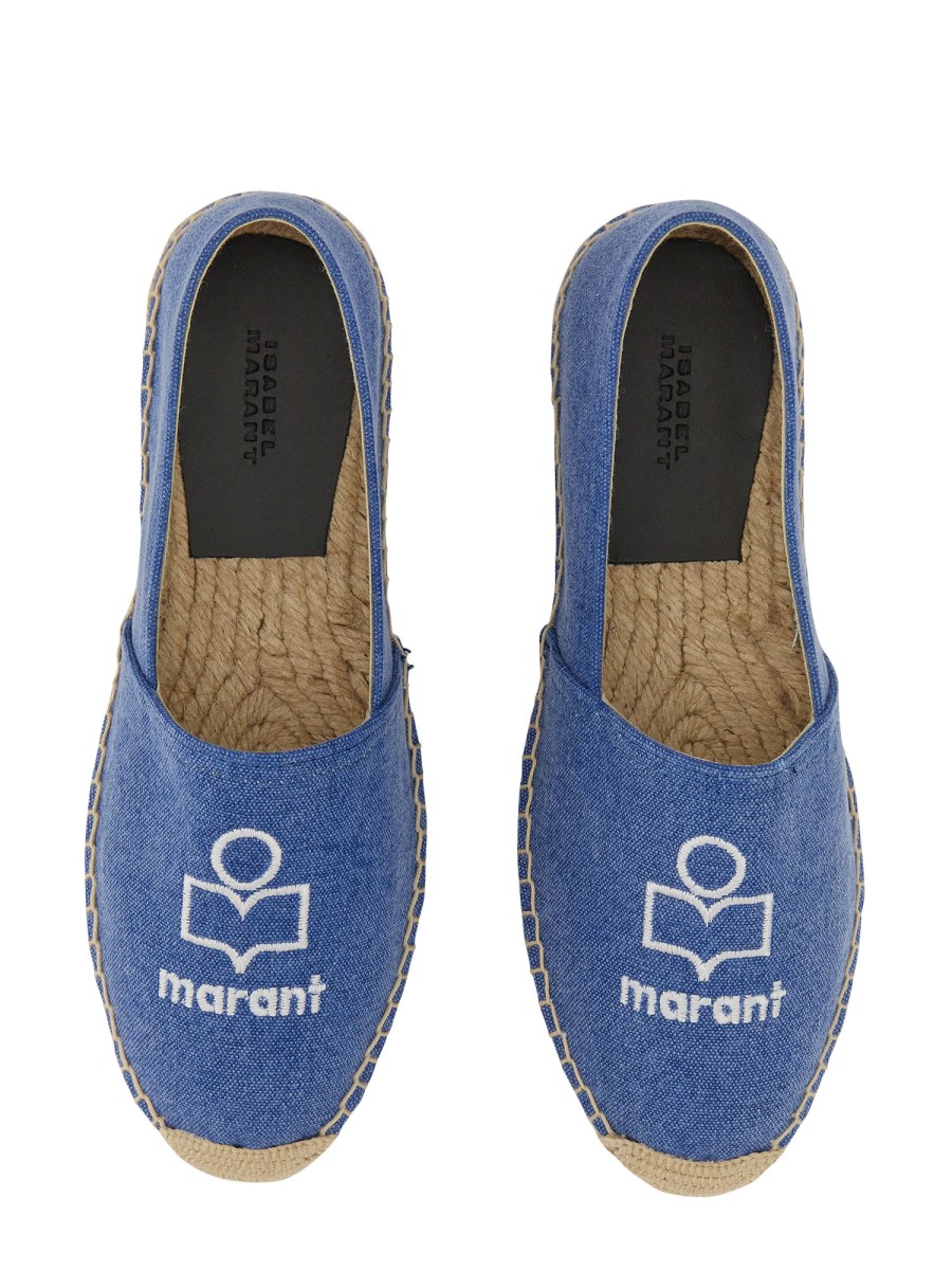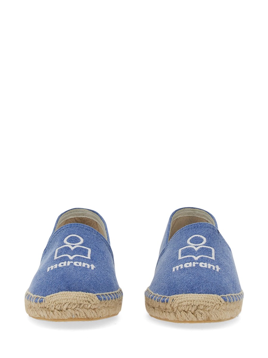 A great pair of shoes from Isabel Marant for those who love to be on the go. These espadrilles are made of cotton canvas and have a blue and white logo. Cotton canvas espadrilles with logo is a durable and comfortable shoe. It is perfect for summertime, with a low heel and a closed toe. The design of these espadrilles are light and comfortable.