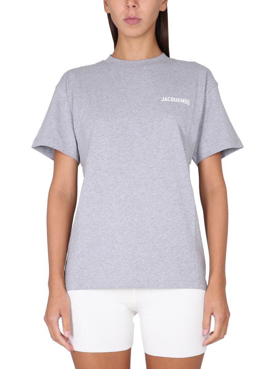 The Jacquemus logo tee is a simple, lightweight, and breathable T-shirt that has a crew neck and half sleeve. Made from 100% cotton, it is perfect for any occasion. This shirt is a must-have for the season. It's made from cotton and has a half-sleeved design that is ideal for the summer.