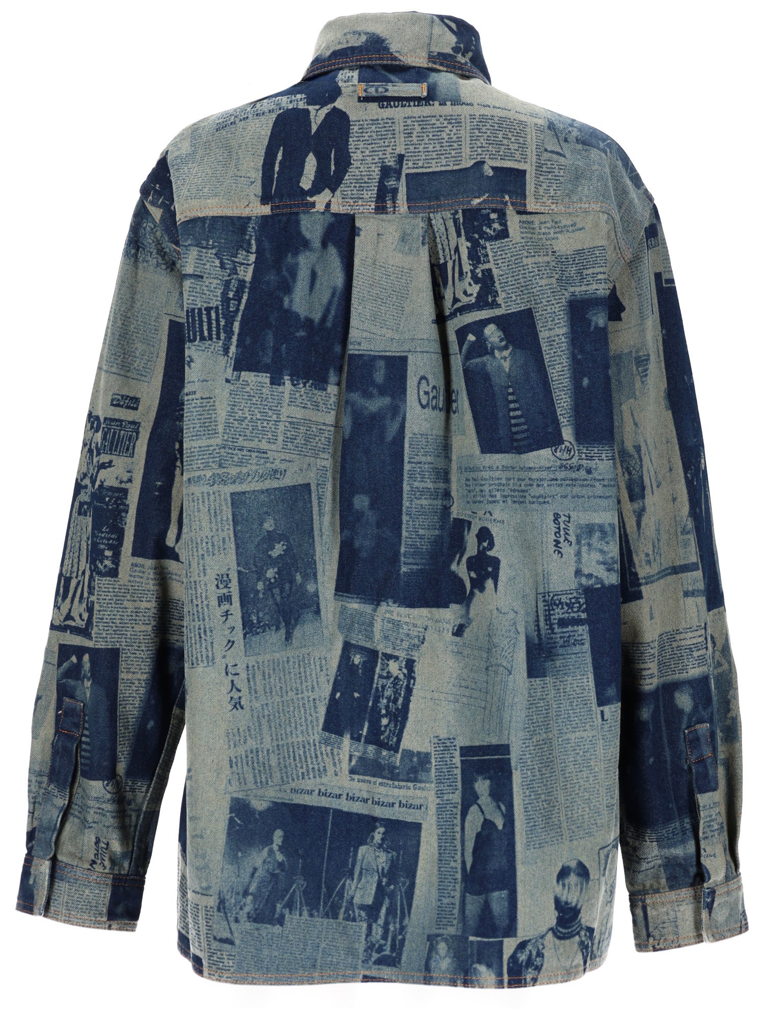 COTTON DENIM SHIRT WITH NEWSPAPER PRINT