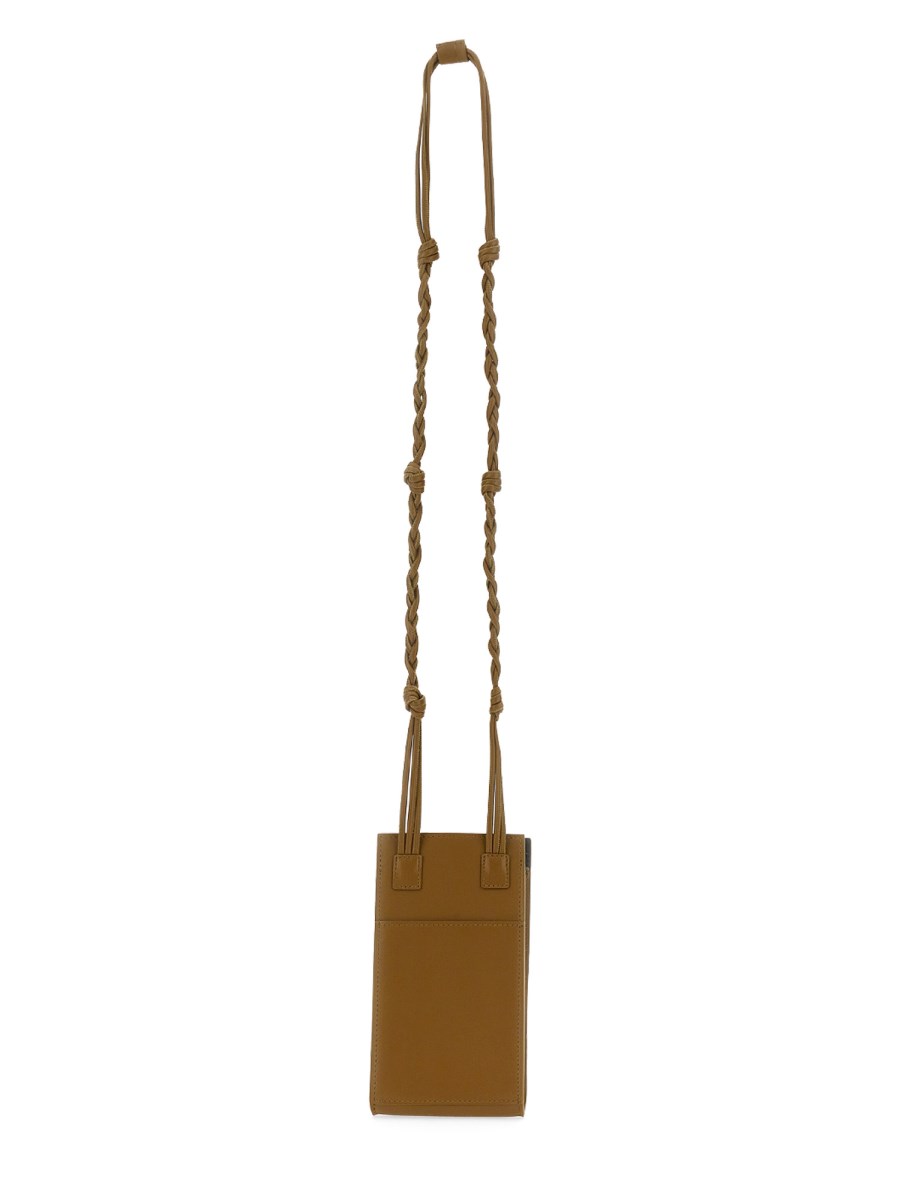 The Tangle Leather bag for smartphone from Jil Sander is a sleek and chic way to carry your device. This shoulder strap will keep your smartphone secure while you're on the go. It has a magnetic closure that keeps it in place and braided detail leather that will match your style.