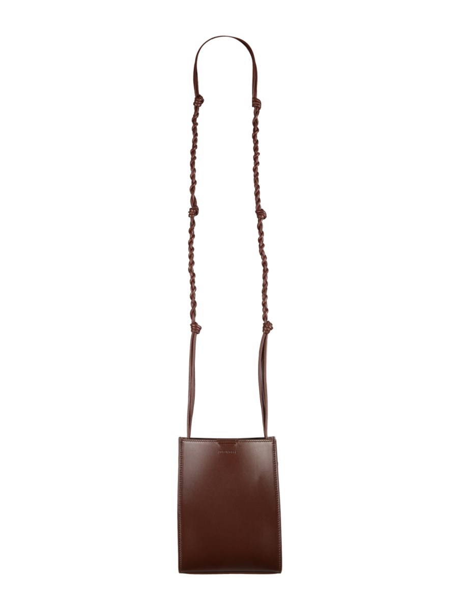 The Tangle small leather shoulder bag from the house of Jil Sander should be able to hold your things in place. It is made from high-quality and durable leather material and is easy to use. It features a knotted shoulder strap, a snap button closure, Nappa leather lining, and an embossed logo.