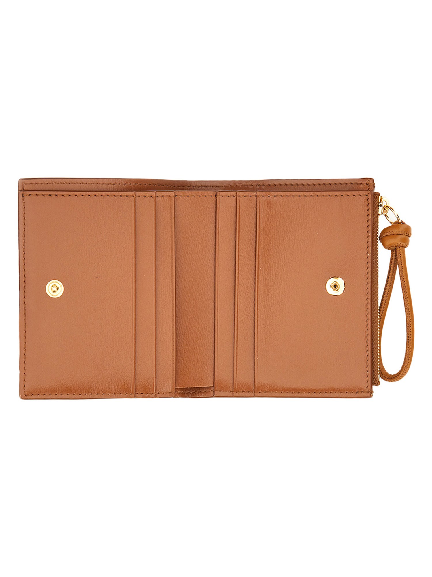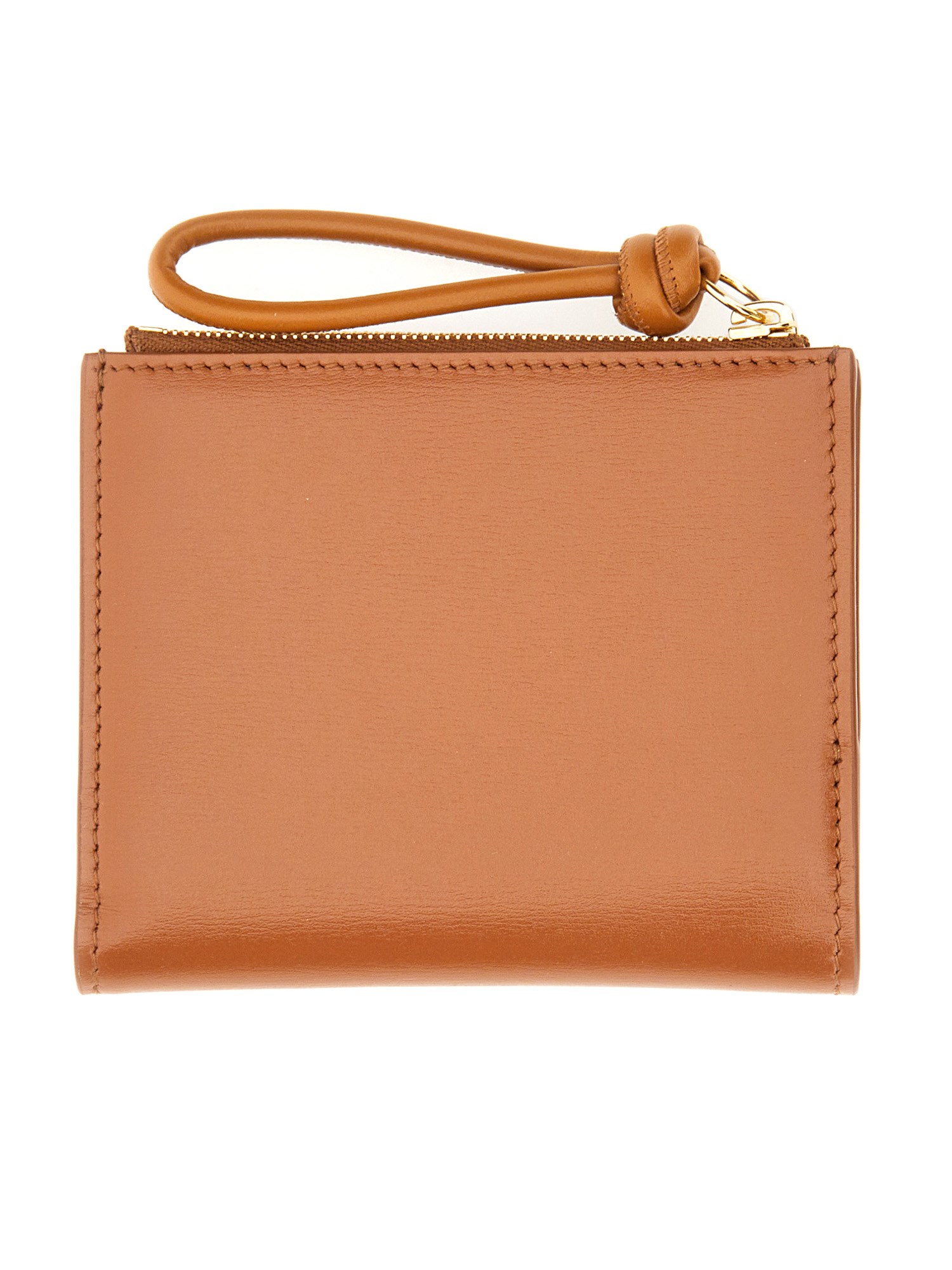 The mini leather wallet from Jil Sander is the perfect companion for all your outings. It is made of soft leather and is the perfect size to carry around all your cards and cash. The wallet has a wrist strap and a snap button closure. It features an exterior coin pocket with a button flap, bill compartments, and a Nappa leather lining.