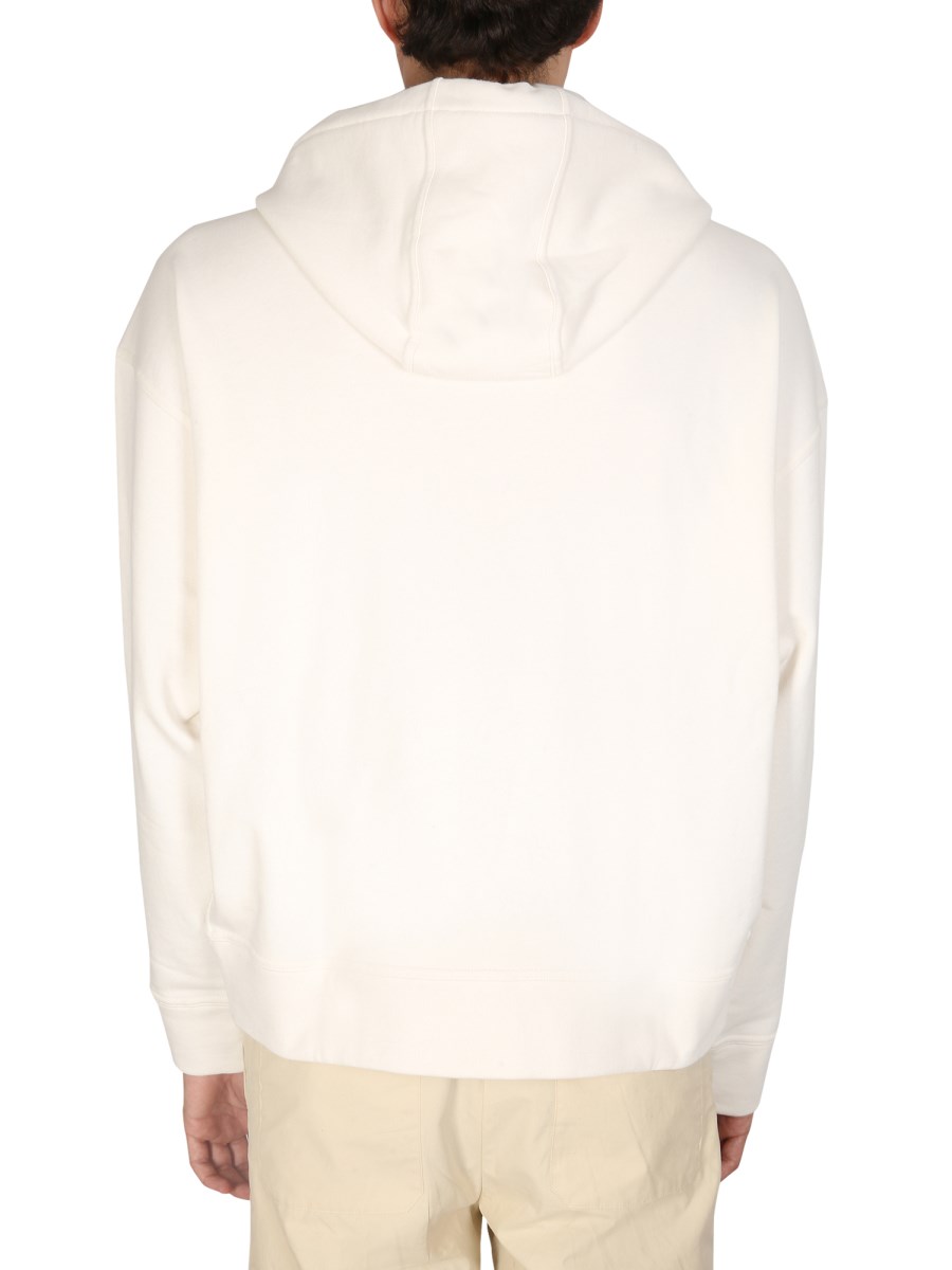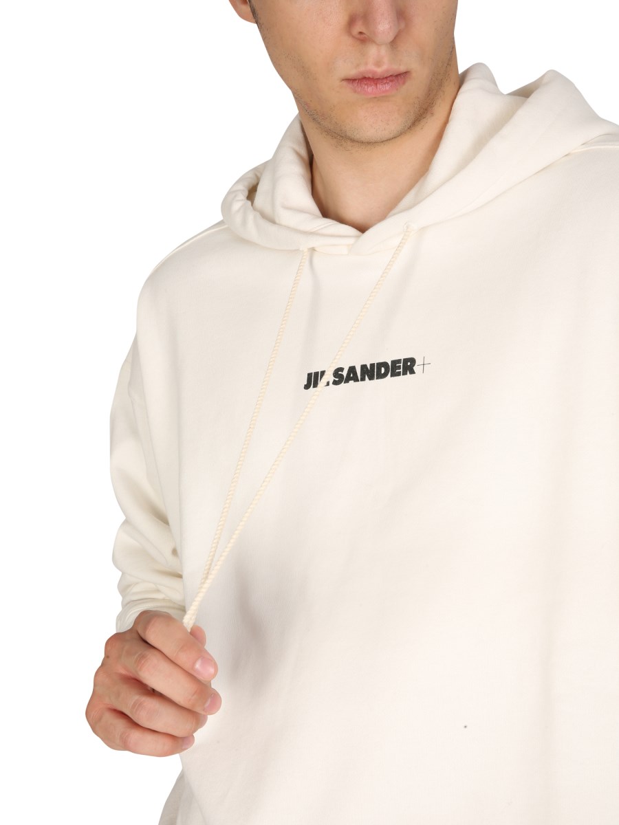 The cotton hoodie from the house of Jil Sander is comfortable, stylish, and versatile. It has a drawstring hood, long sleeves with ribbed cuffs, and a straight hem. It has an oversize fit and boxy cut, the pullover has a front logo. Crafted from durable cotton, the hoodie is perfect for layering.